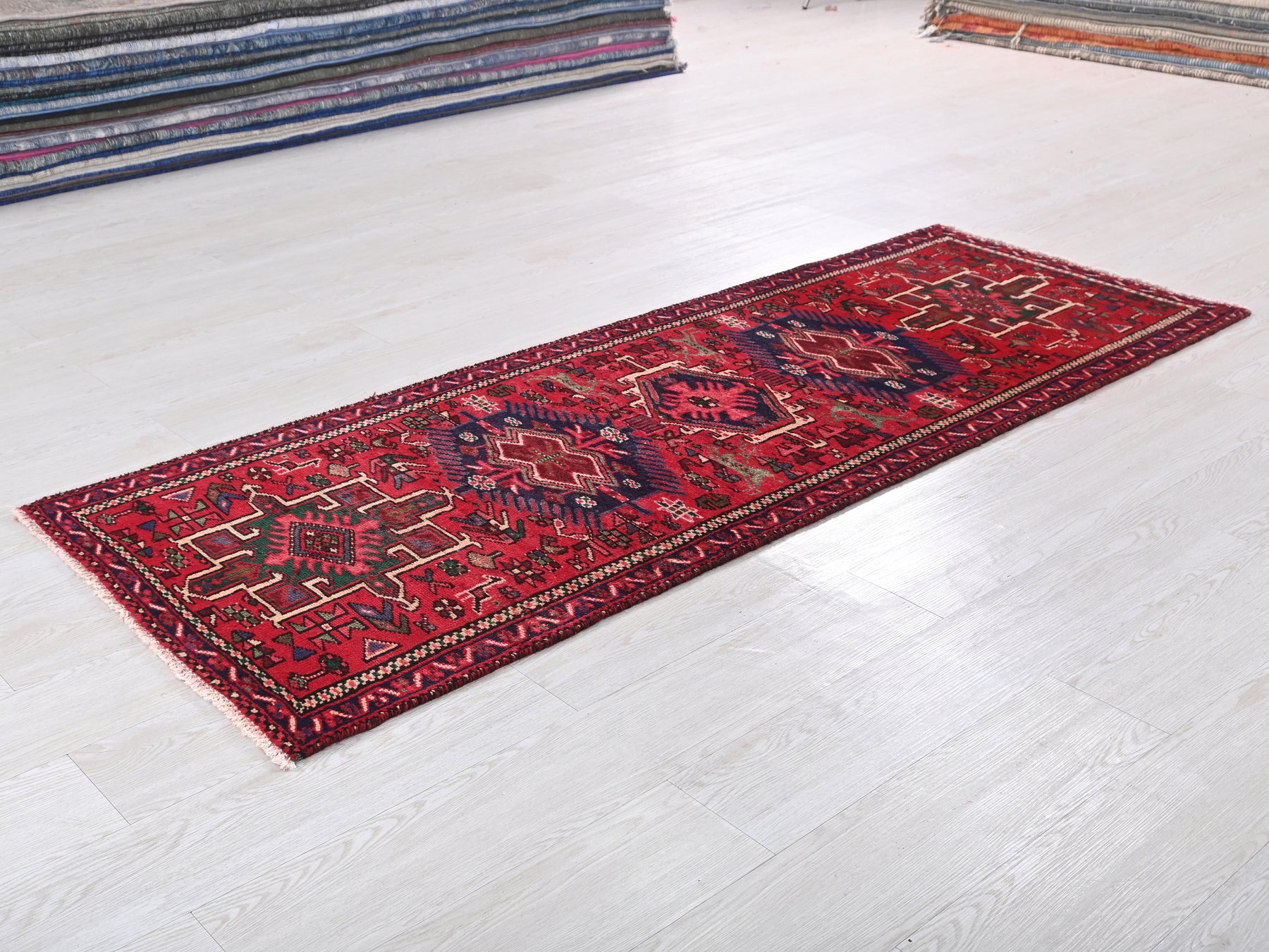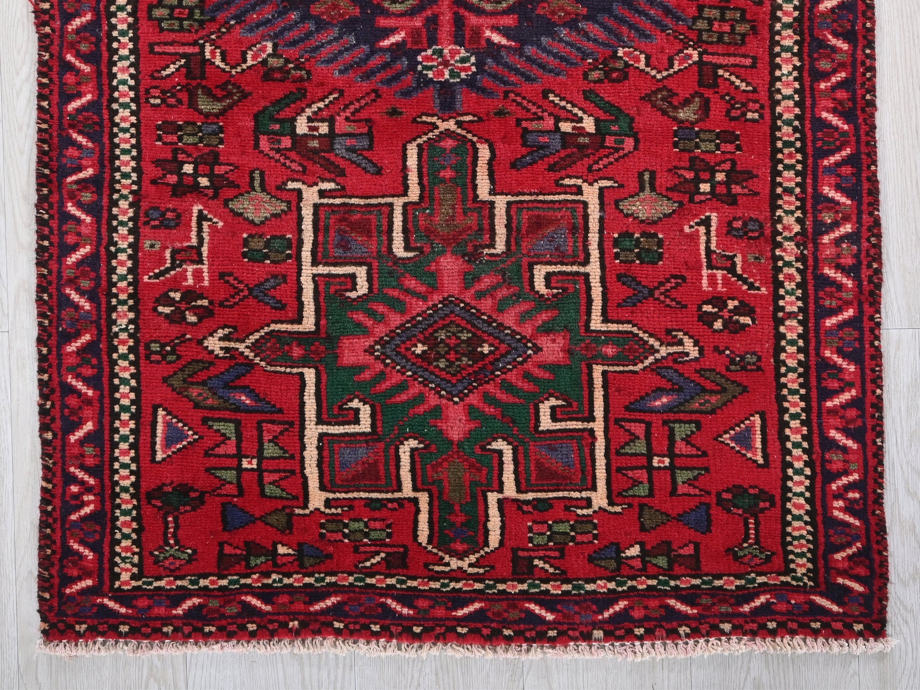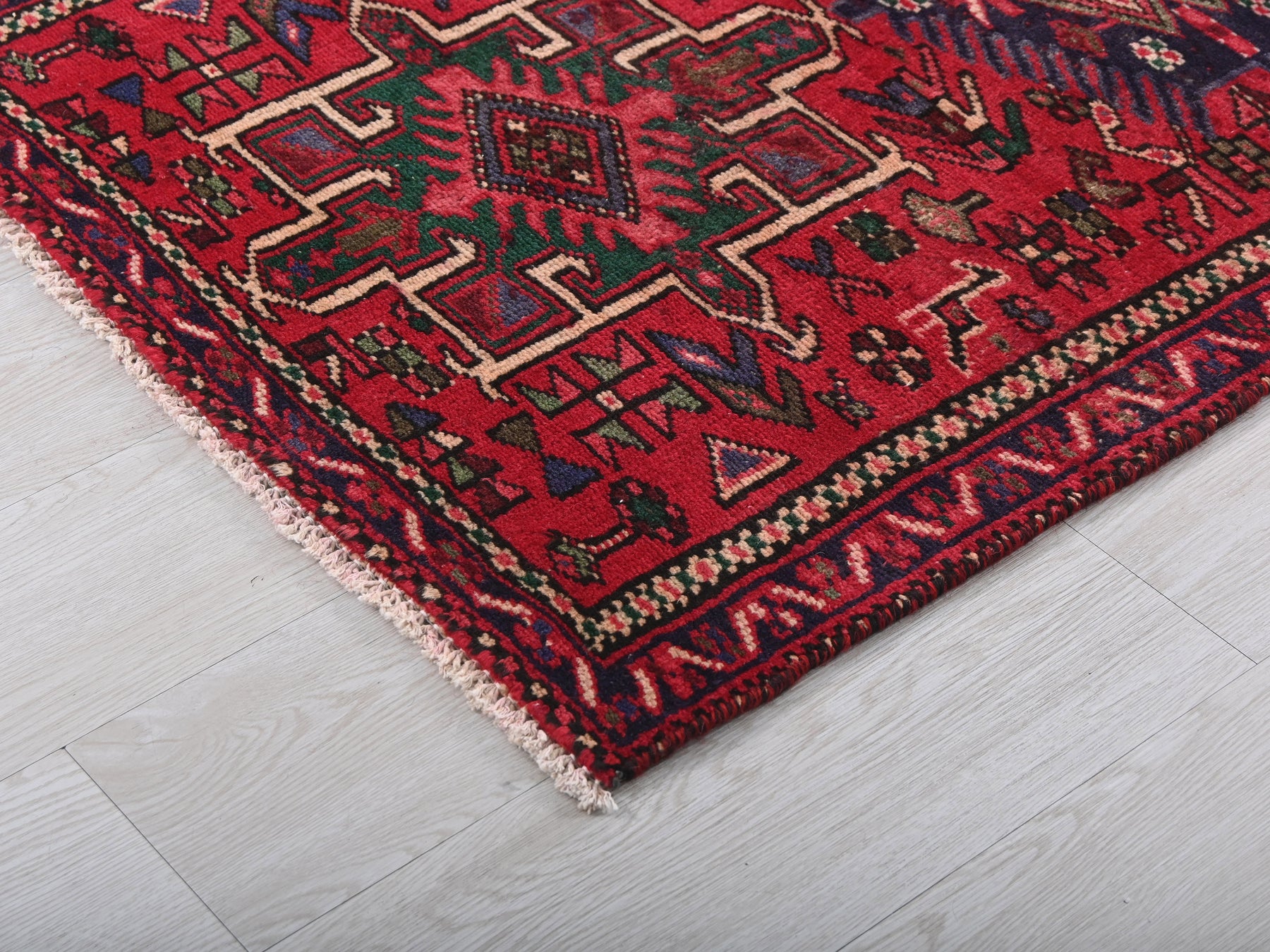 This is a hand-knotted, one-of-a-kind vintage rug. Due to the nature of this piece, there may be slight imperfections in its wear, shape, dimensions, and color. All of our rugs are professionally cleaned and repaired.