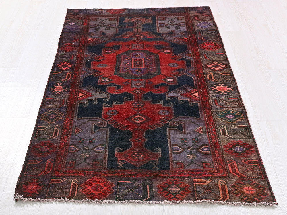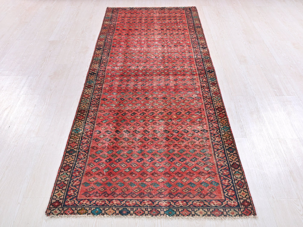 Vintage, hand‑knotted, repaired/restored wear