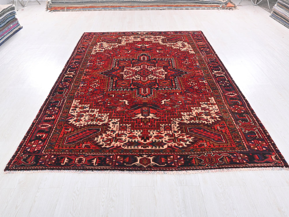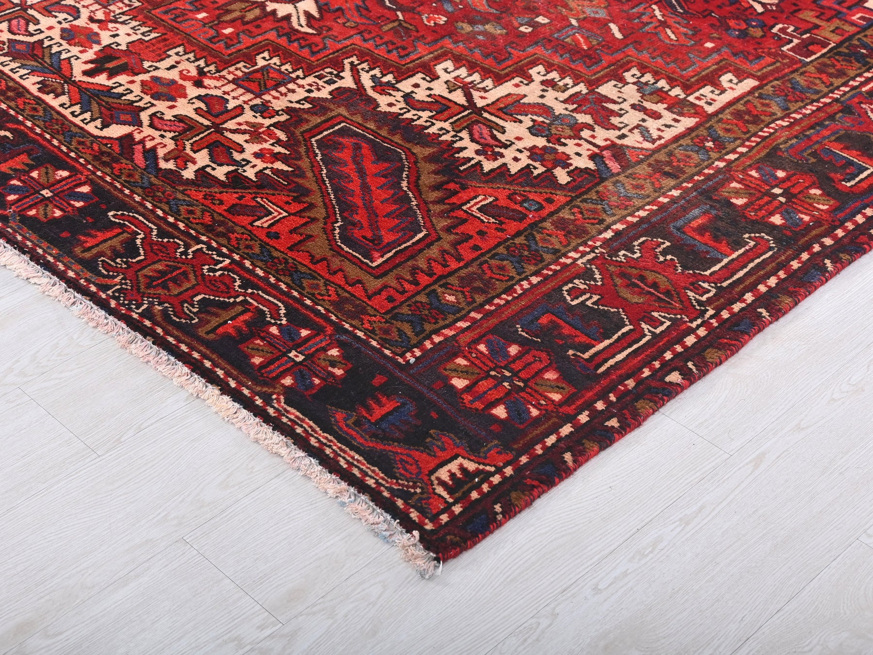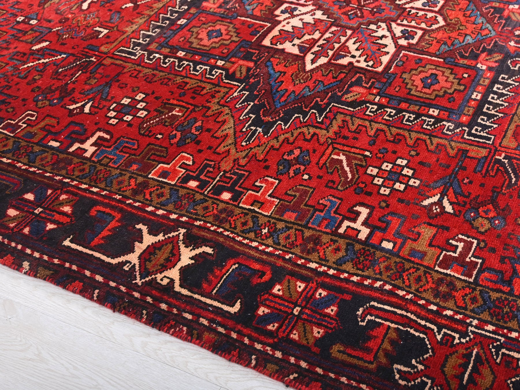 This is a hand-knotted, one-of-a-kind vintage rug. Due to the nature of this piece, there may be slight imperfections in its wear, shape, dimensions, and color. All of our rugs are professionally cleaned and repaired.