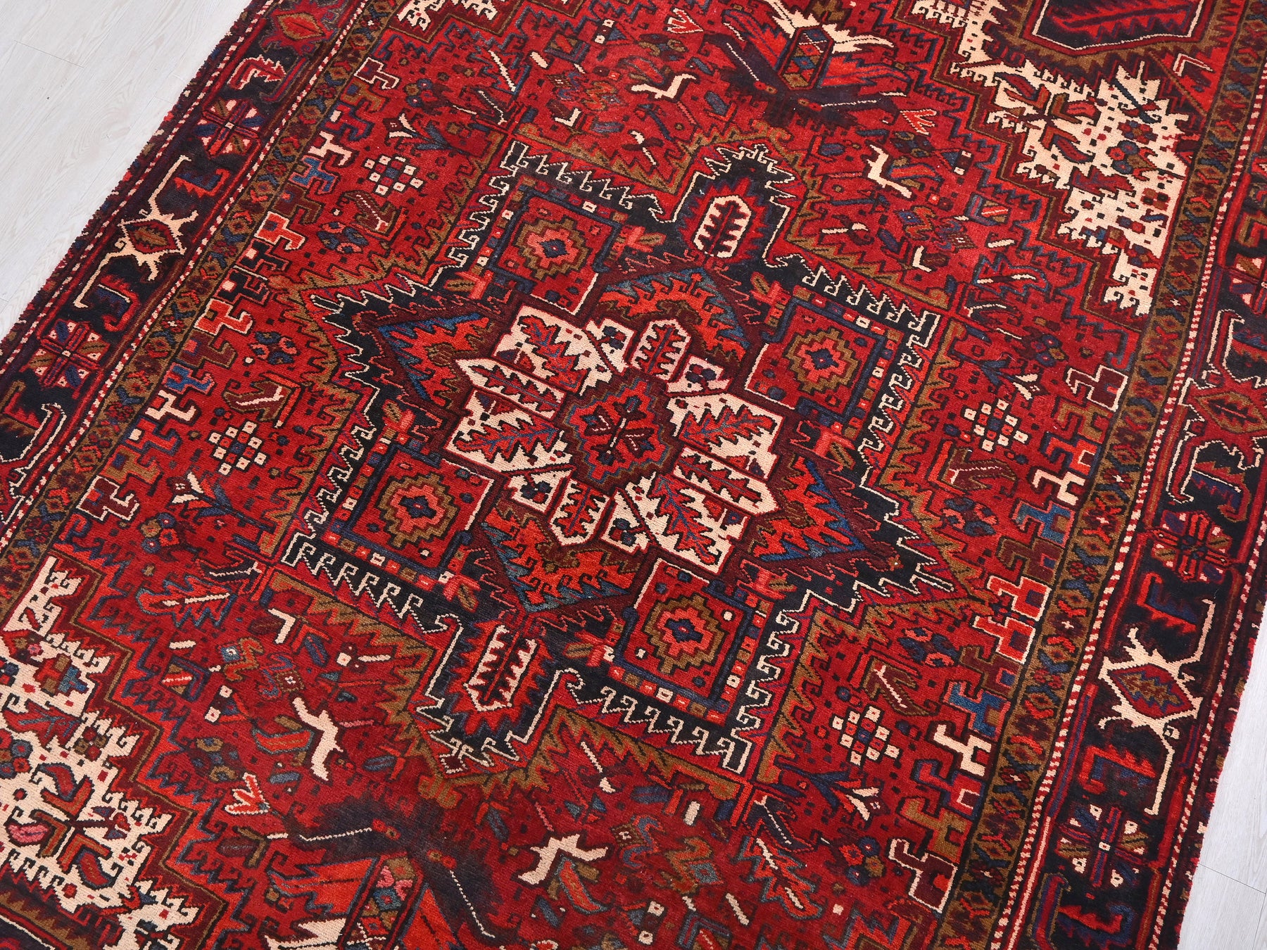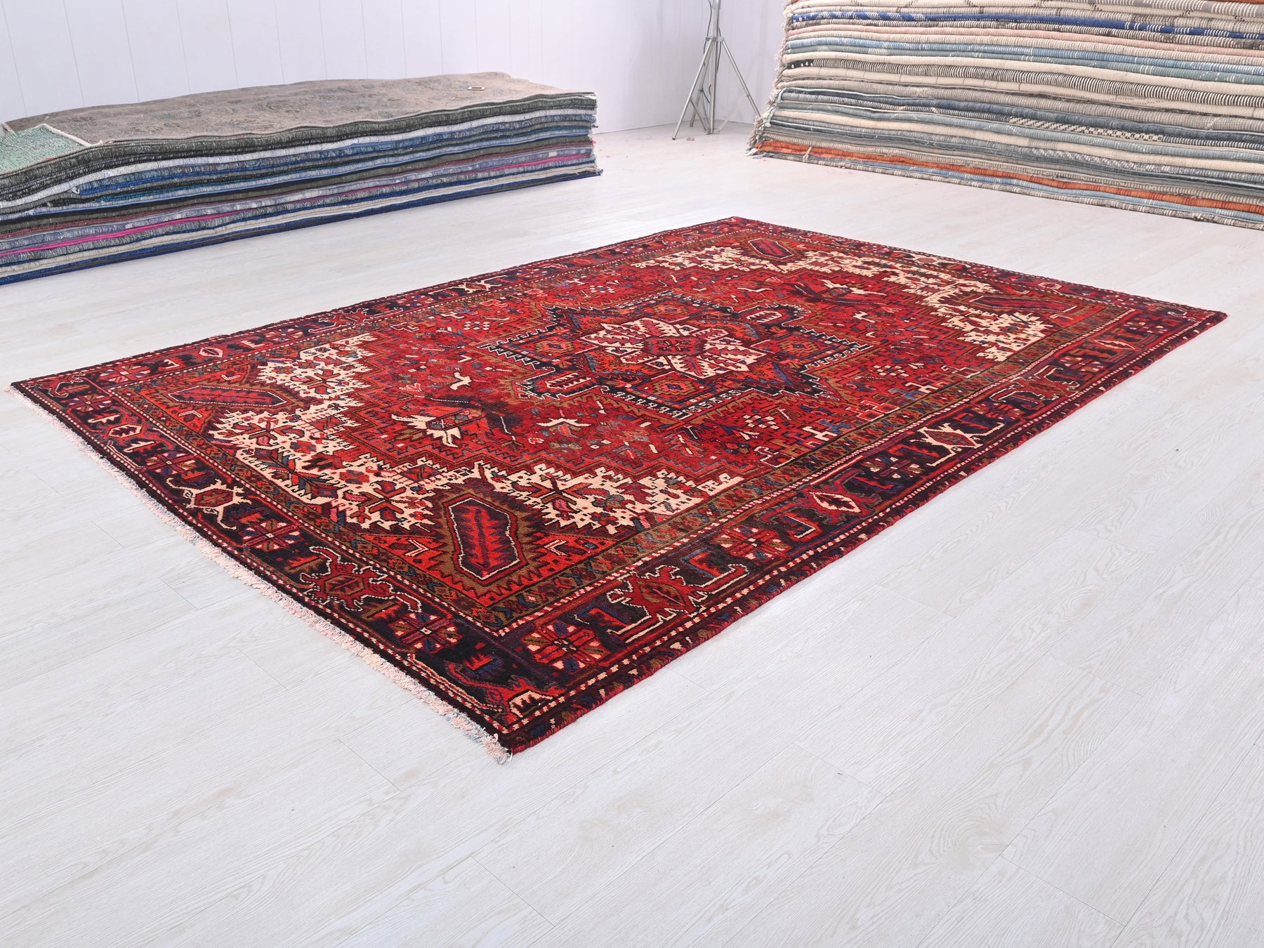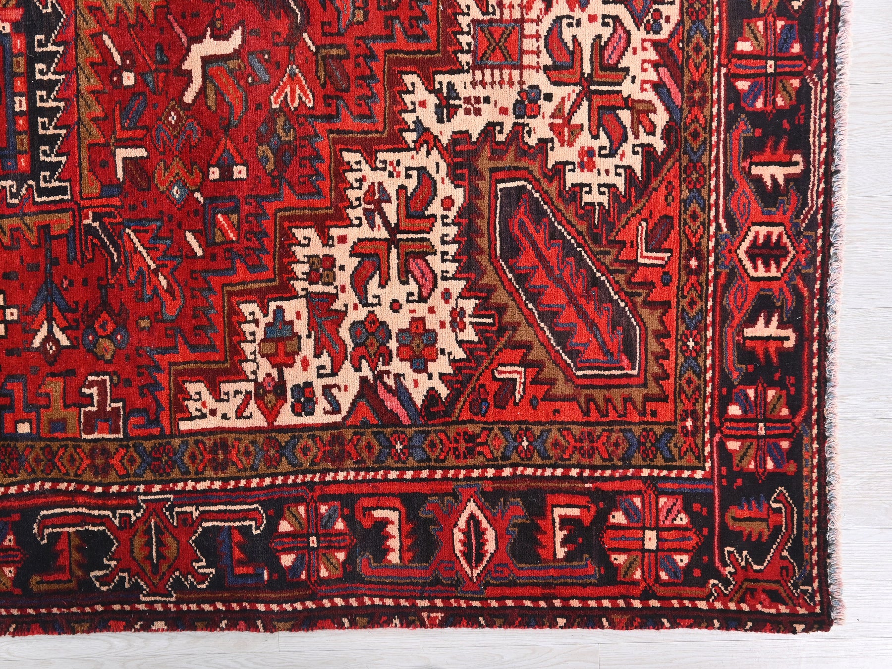 This is a hand-knotted, one-of-a-kind vintage rug. Due to the nature of this piece, there may be slight imperfections in its wear, shape, dimensions, and color. All of our rugs are professionally cleaned and repaired.