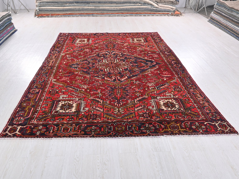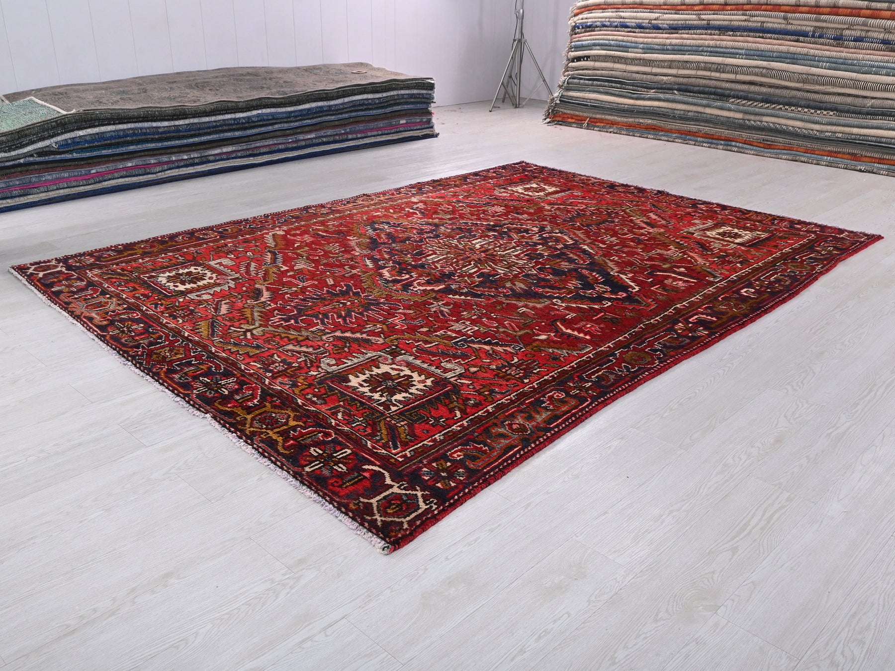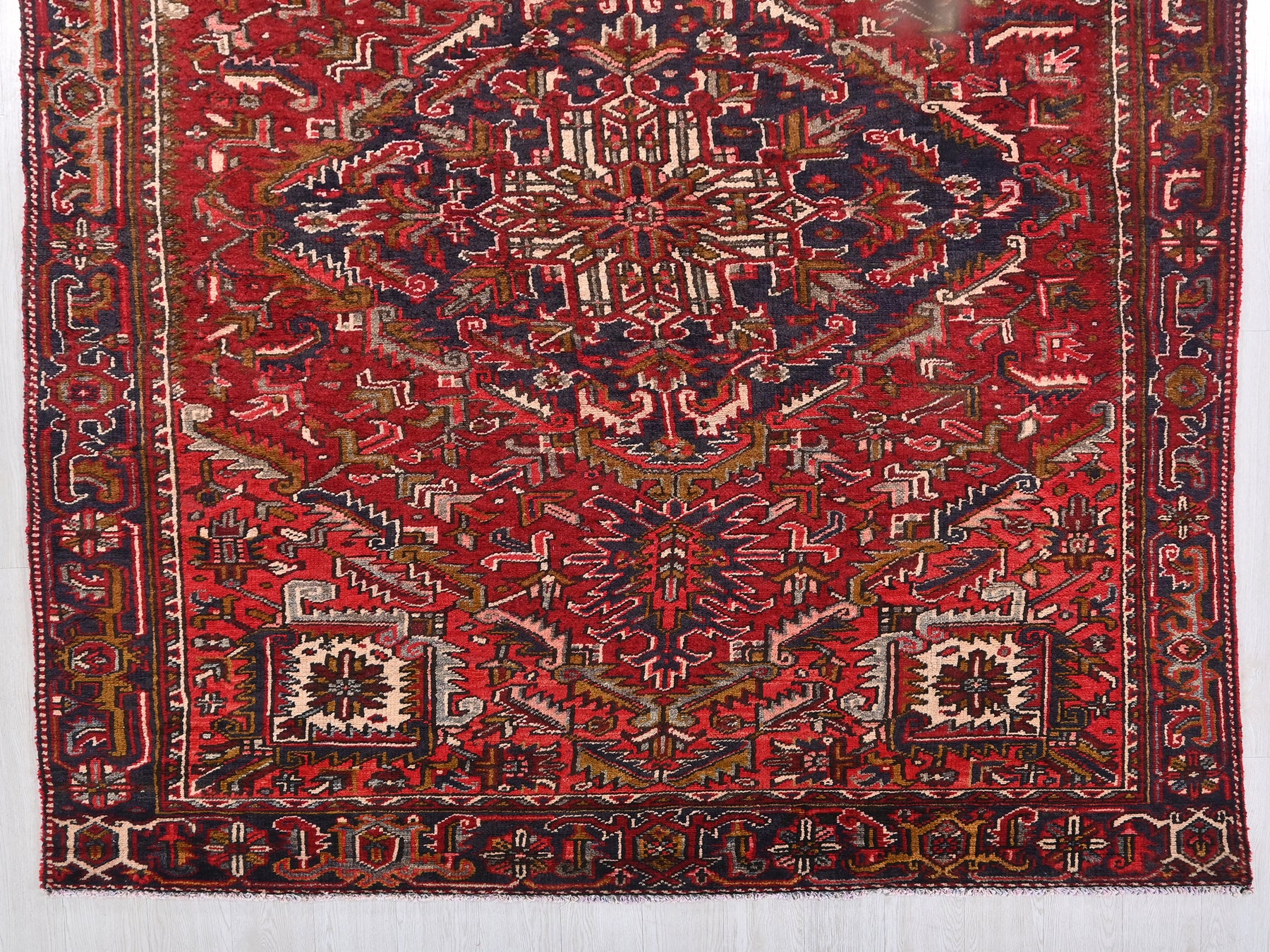 This is a hand-knotted, one-of-a-kind vintage rug. Due to the nature of this piece, there may be slight imperfections in its wear, shape, dimensions, and color. All of our rugs are professionally cleaned and repaired.