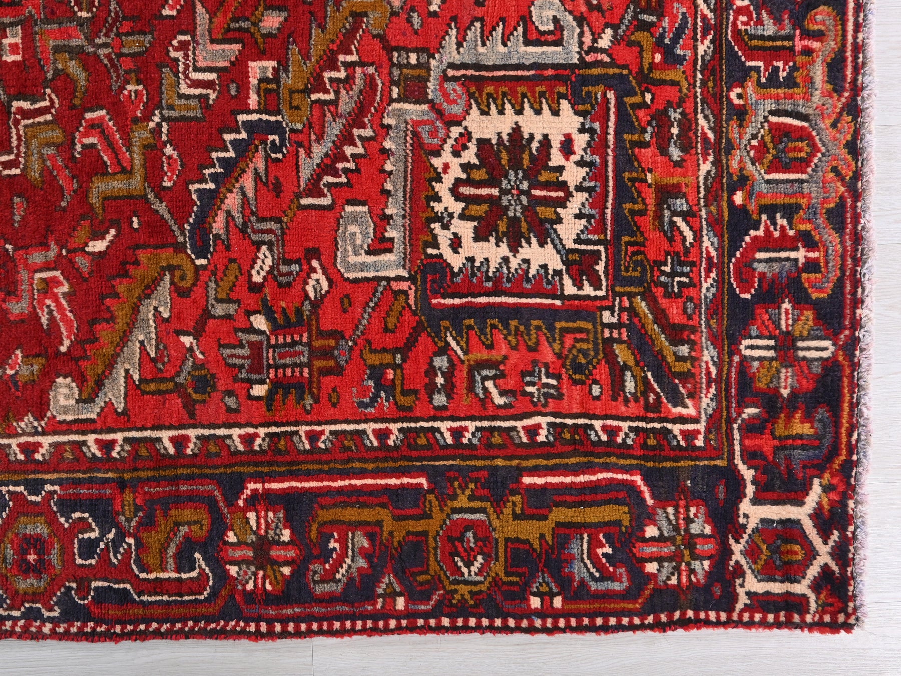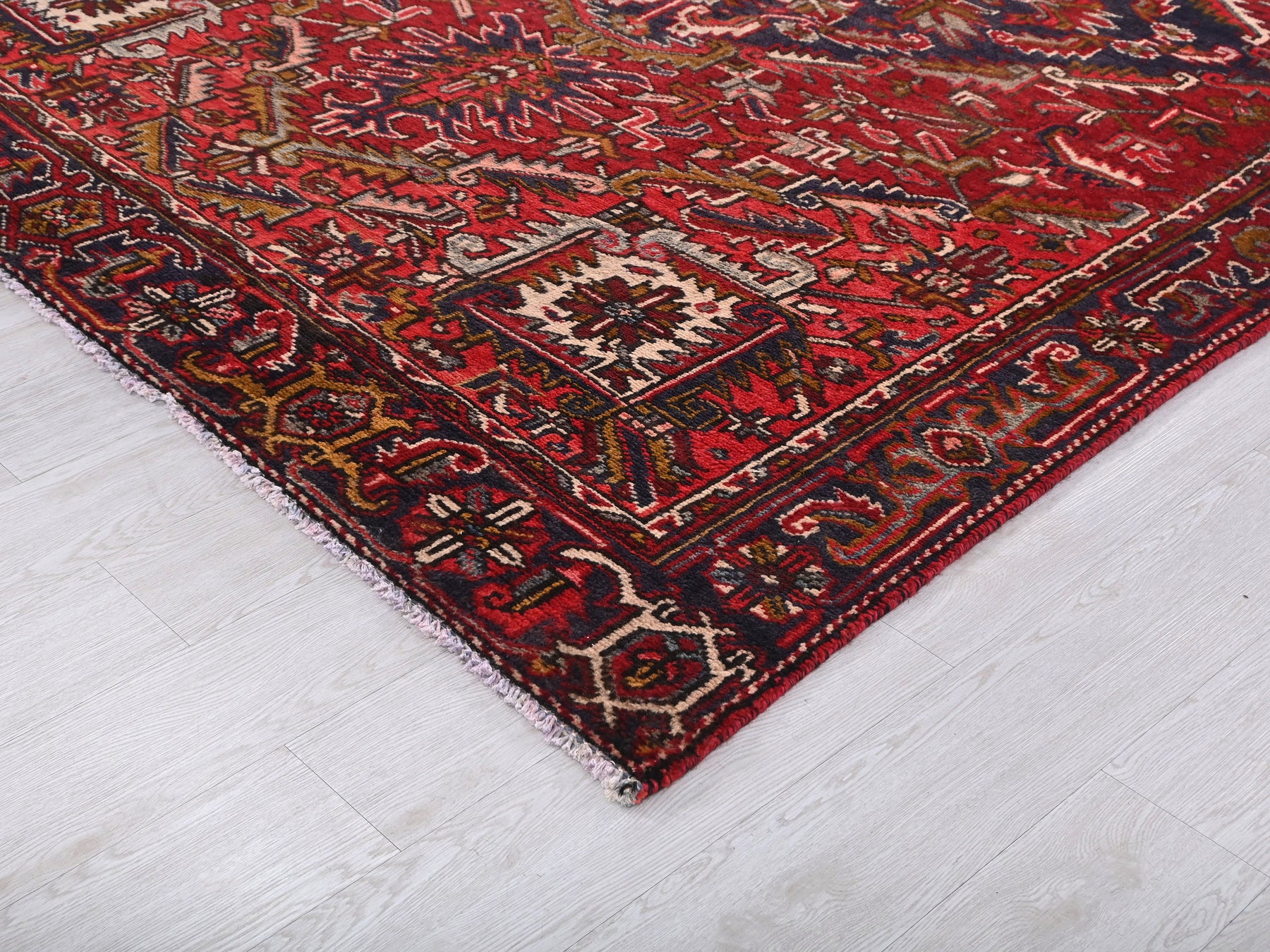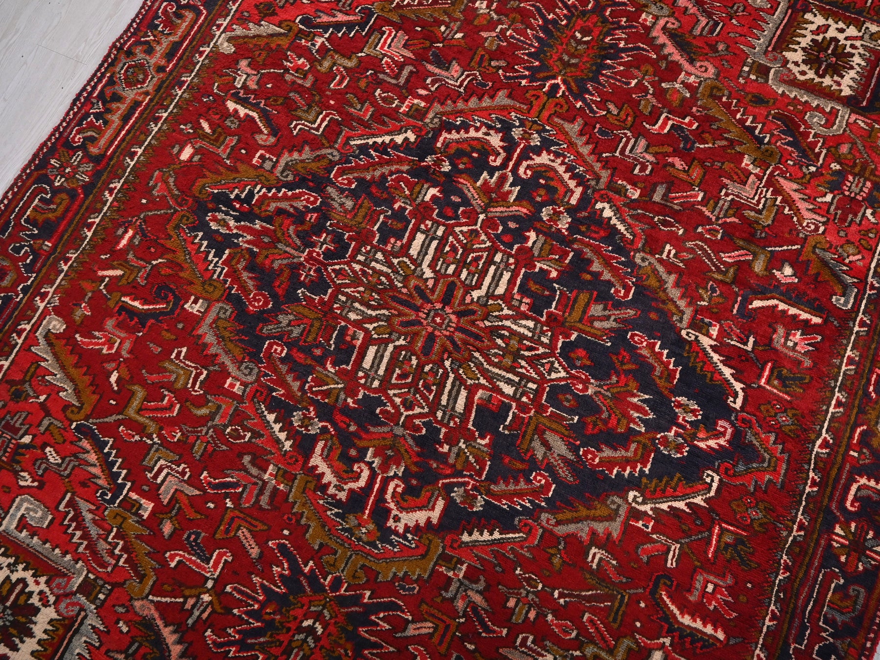 This is a hand-knotted, one-of-a-kind vintage rug. Due to the nature of this piece, there may be slight imperfections in its wear, shape, dimensions, and color. All of our rugs are professionally cleaned and repaired.