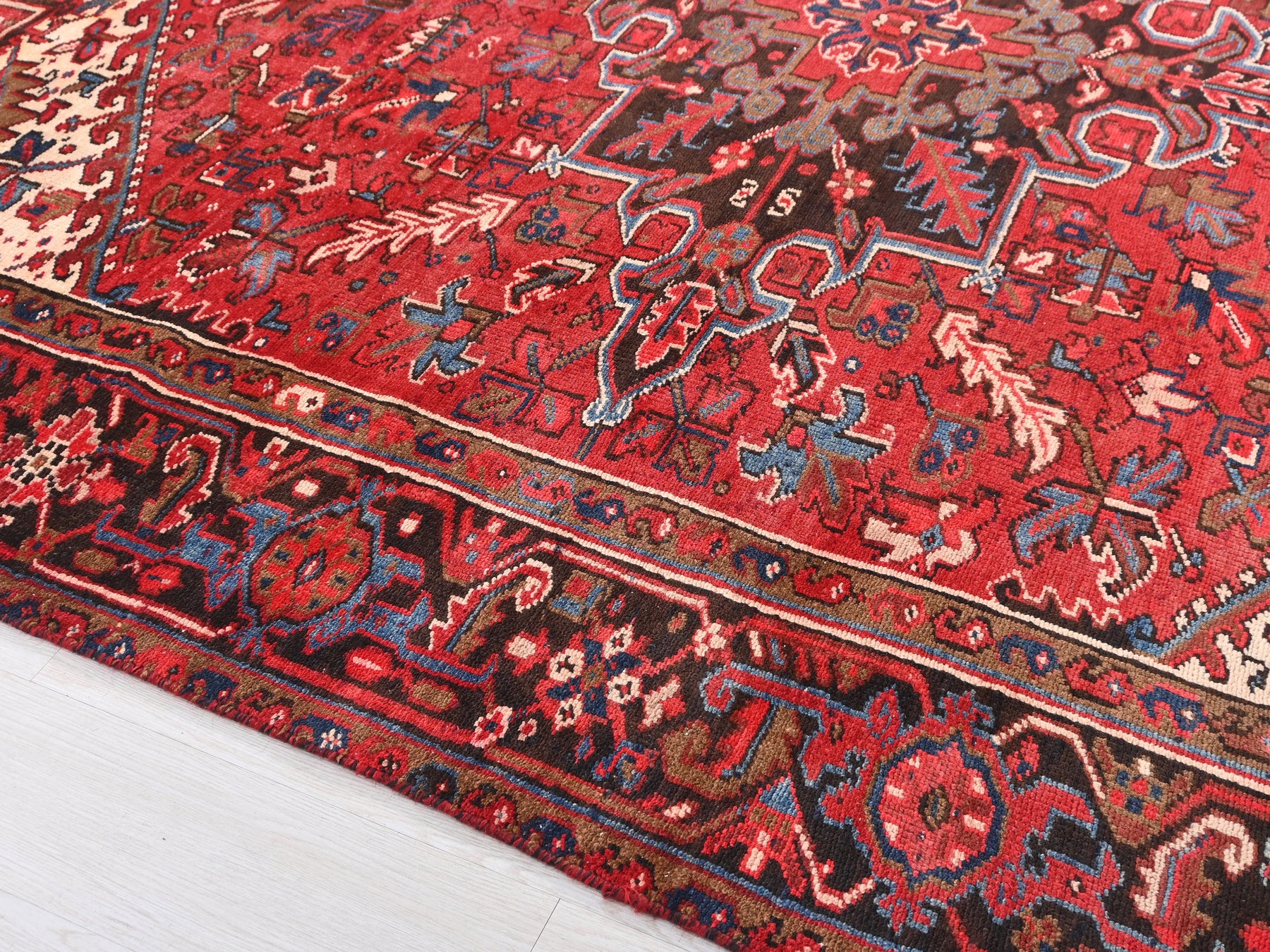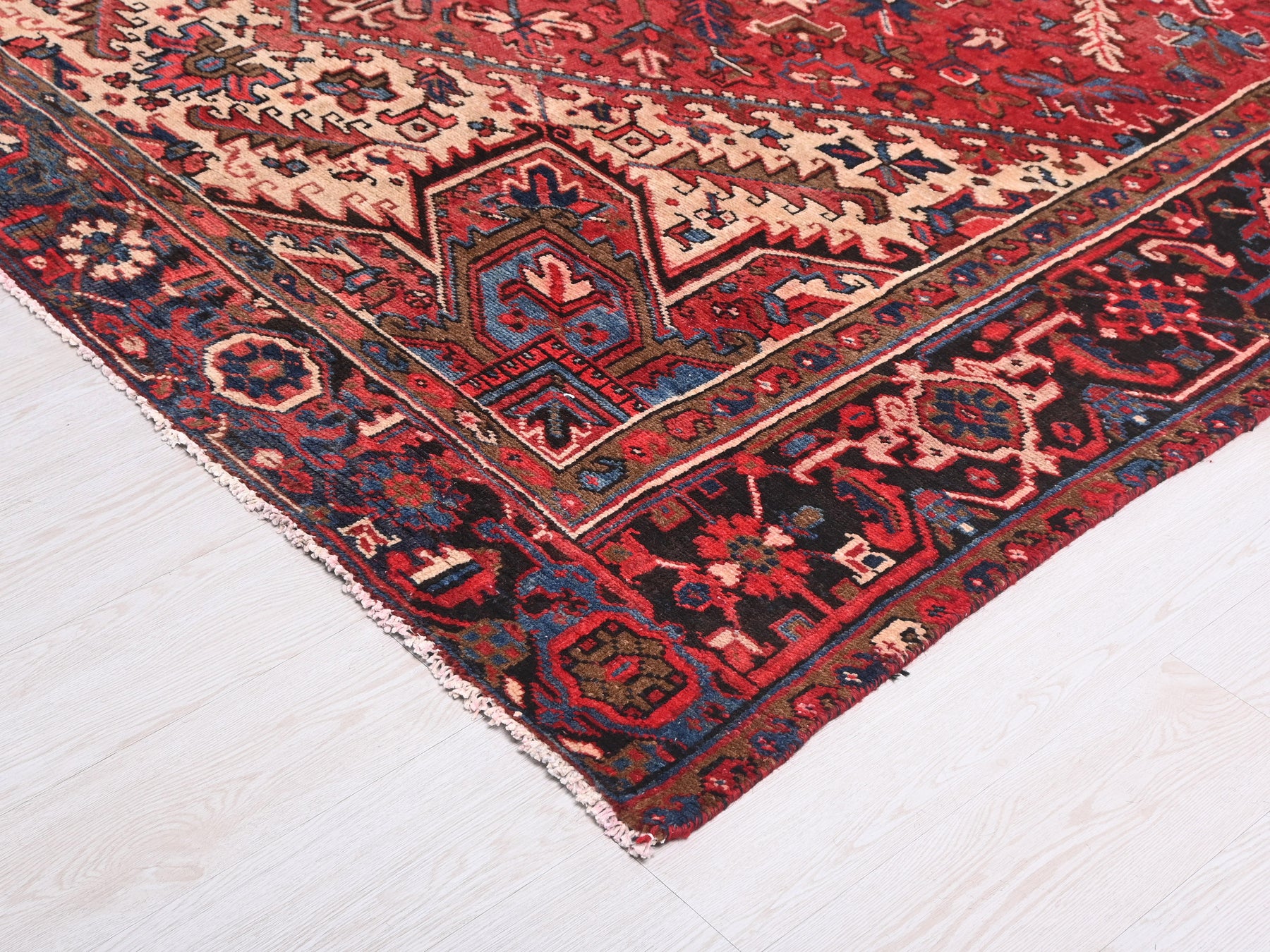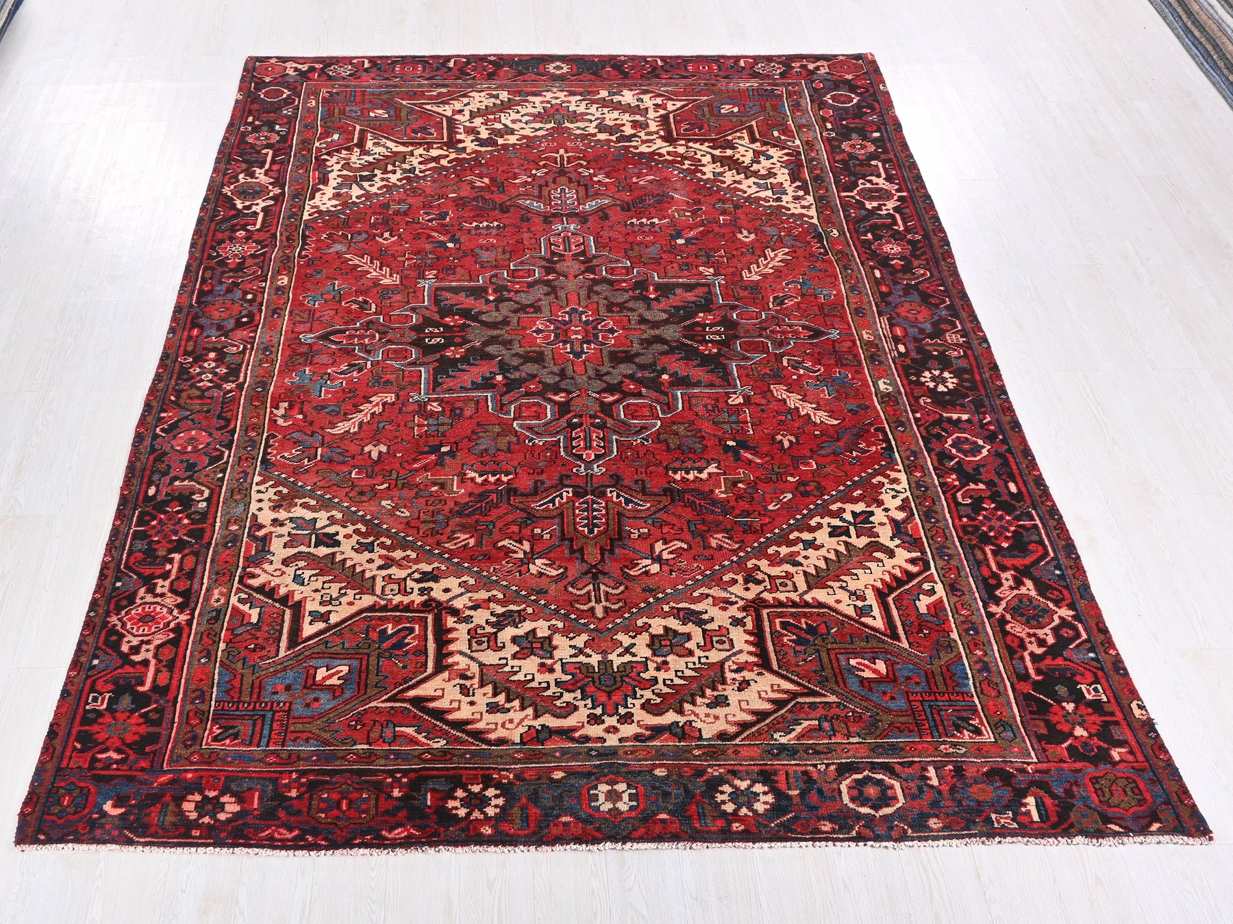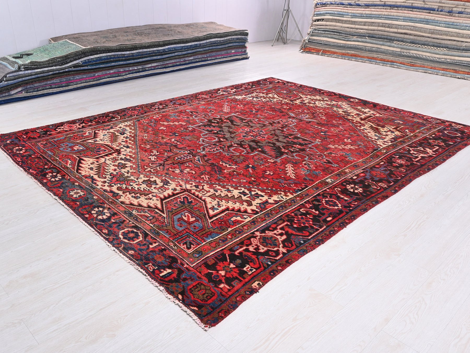 This is a hand-knotted, one-of-a-kind vintage rug. Due to the nature of this piece, there may be slight imperfections in its wear, shape, dimensions, and color. All of our rugs are professionally cleaned and repaired.