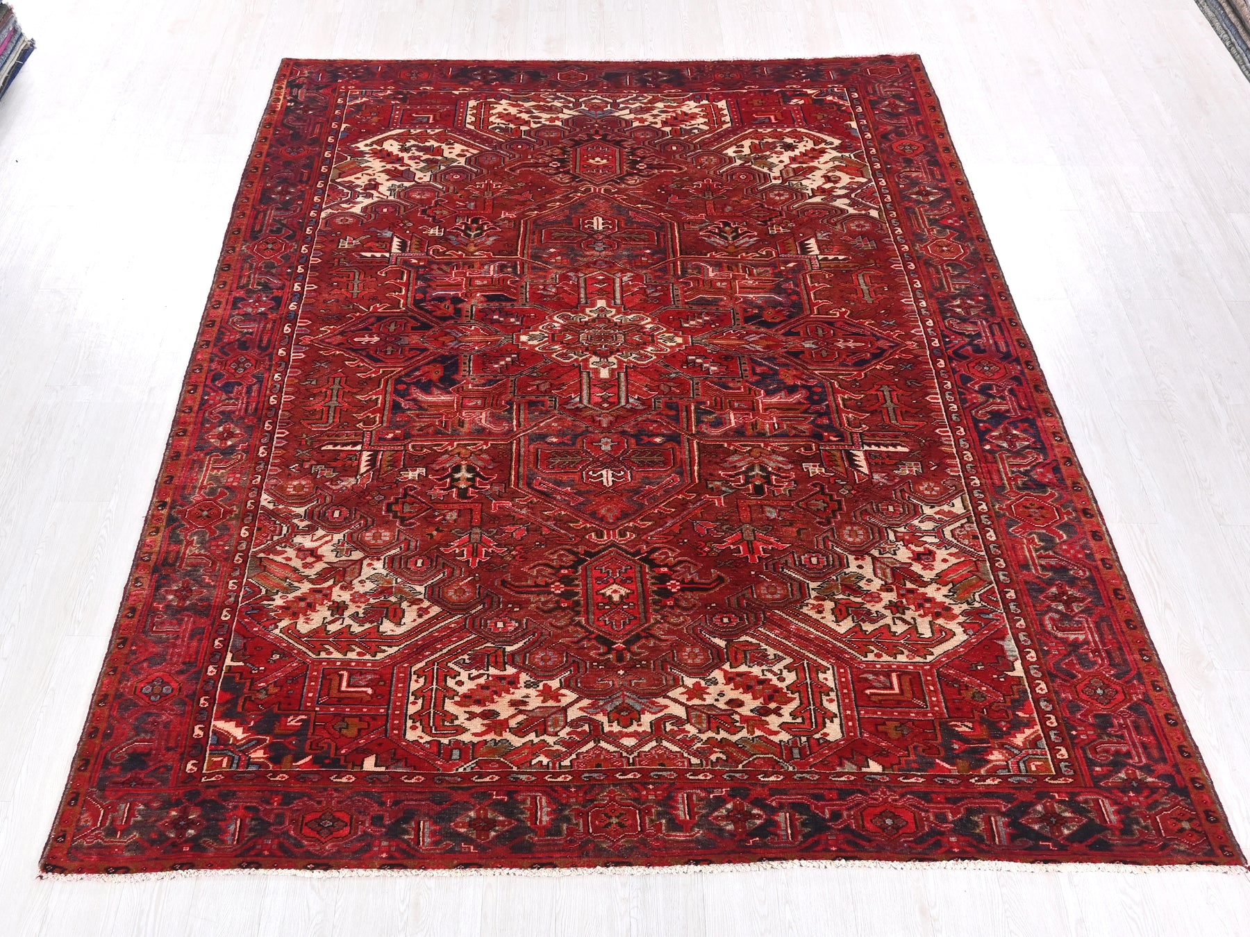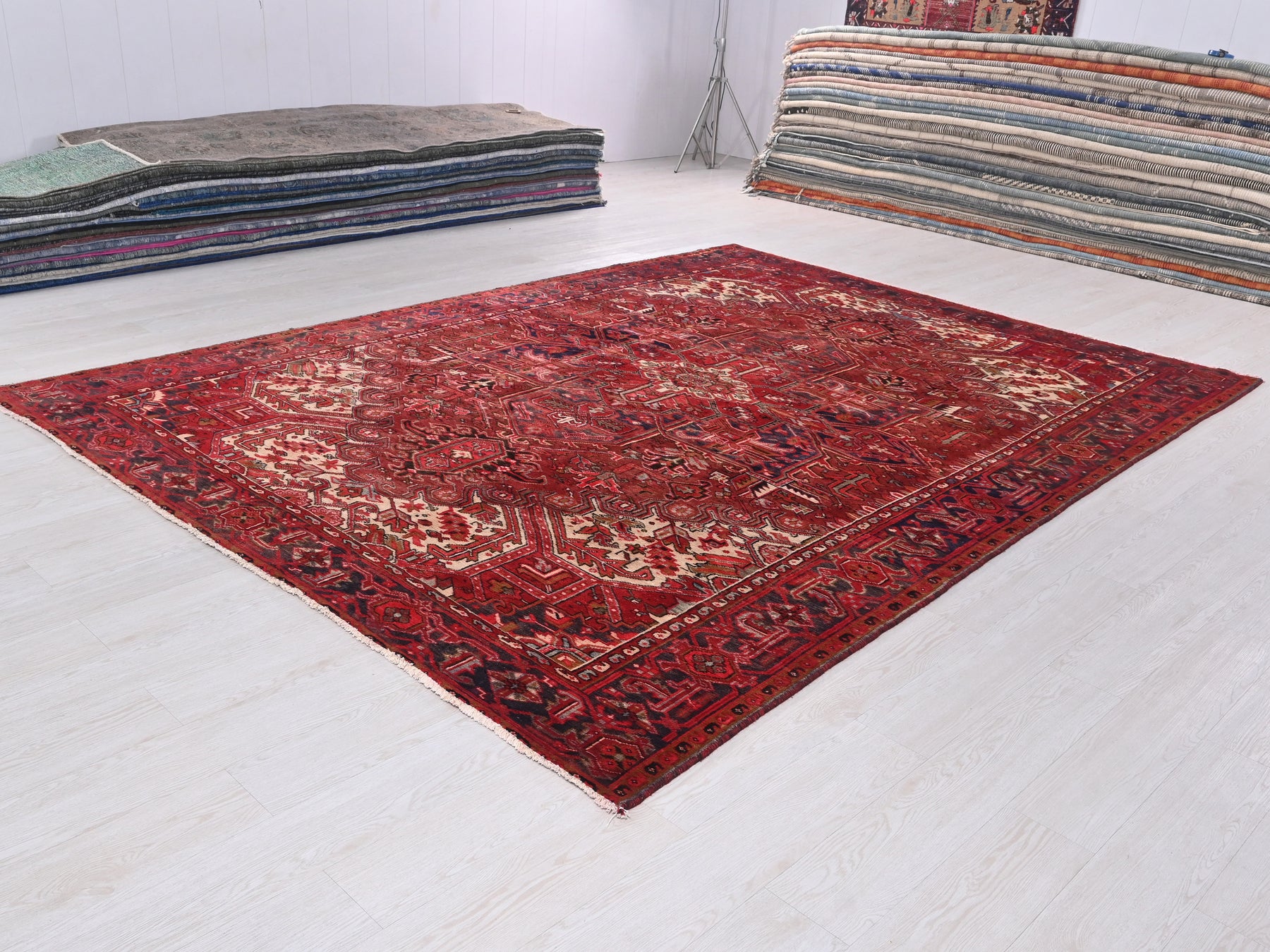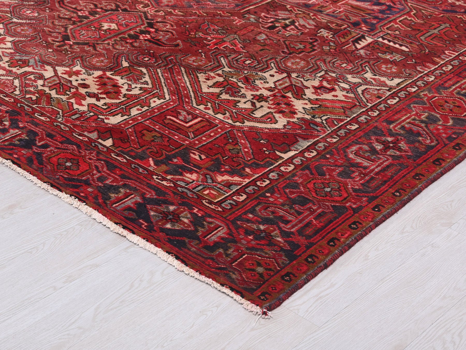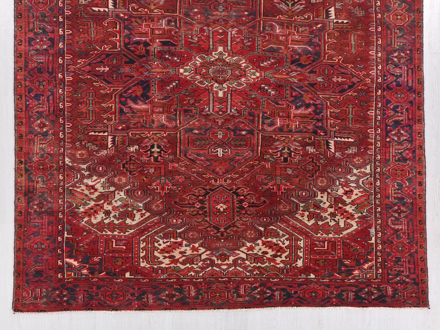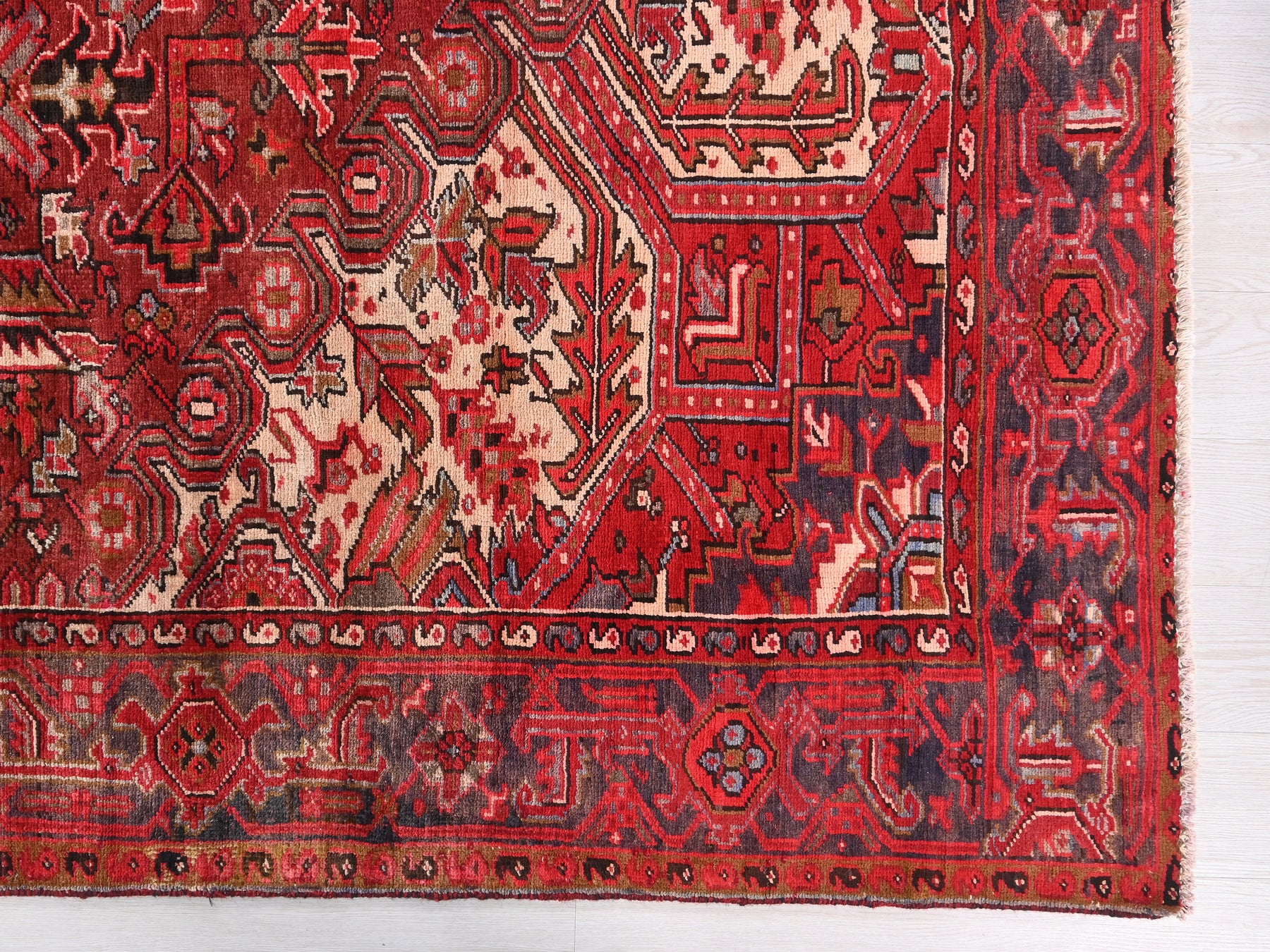 This is a hand-knotted, one-of-a-kind vintage rug. Due to the nature of this piece, there may be slight imperfections in its wear, shape, dimensions, and color. All of our rugs are professionally cleaned and repaired.