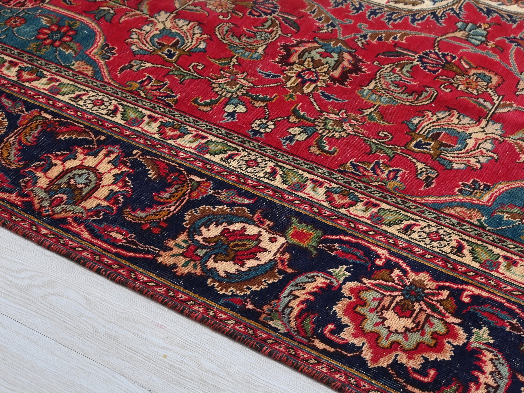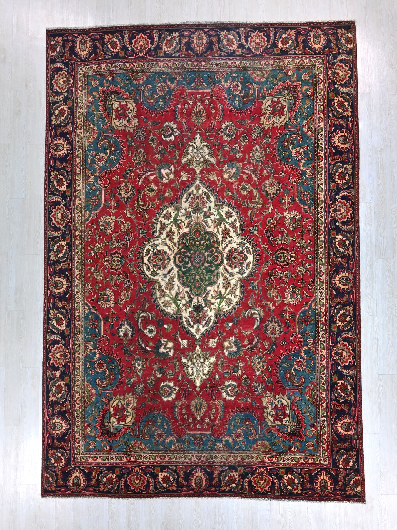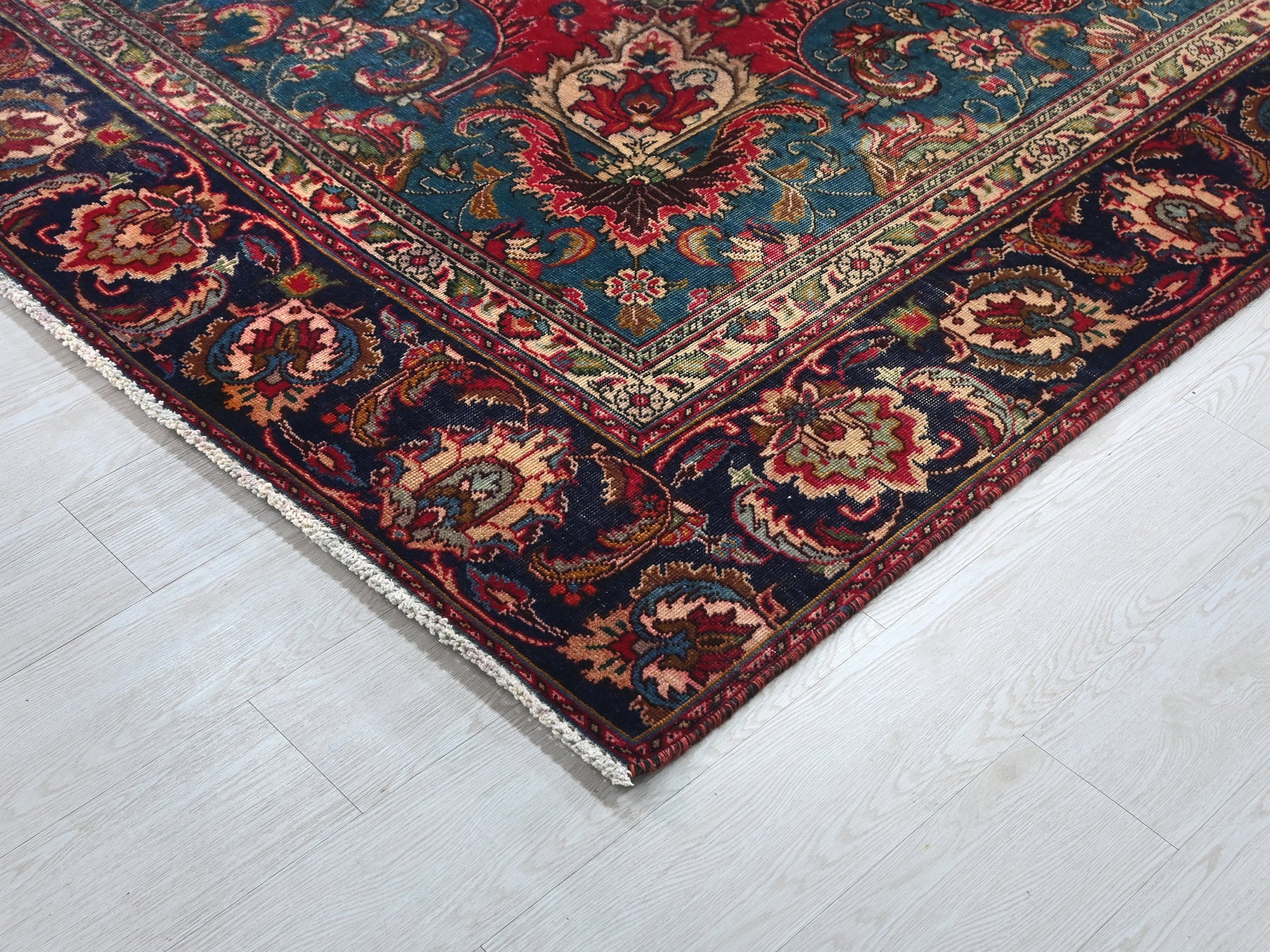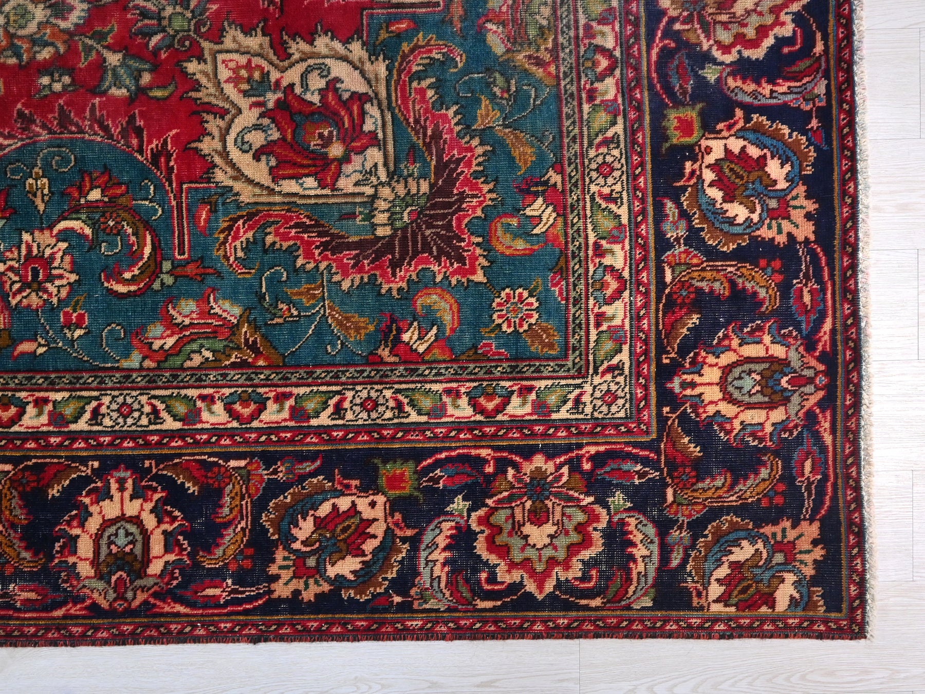 This is a hand-knotted, one-of-a-kind vintage rug. Due to the nature of this piece, there may be slight imperfections in its wear, shape, dimensions, and color. All of our rugs are professionally cleaned and repaired.