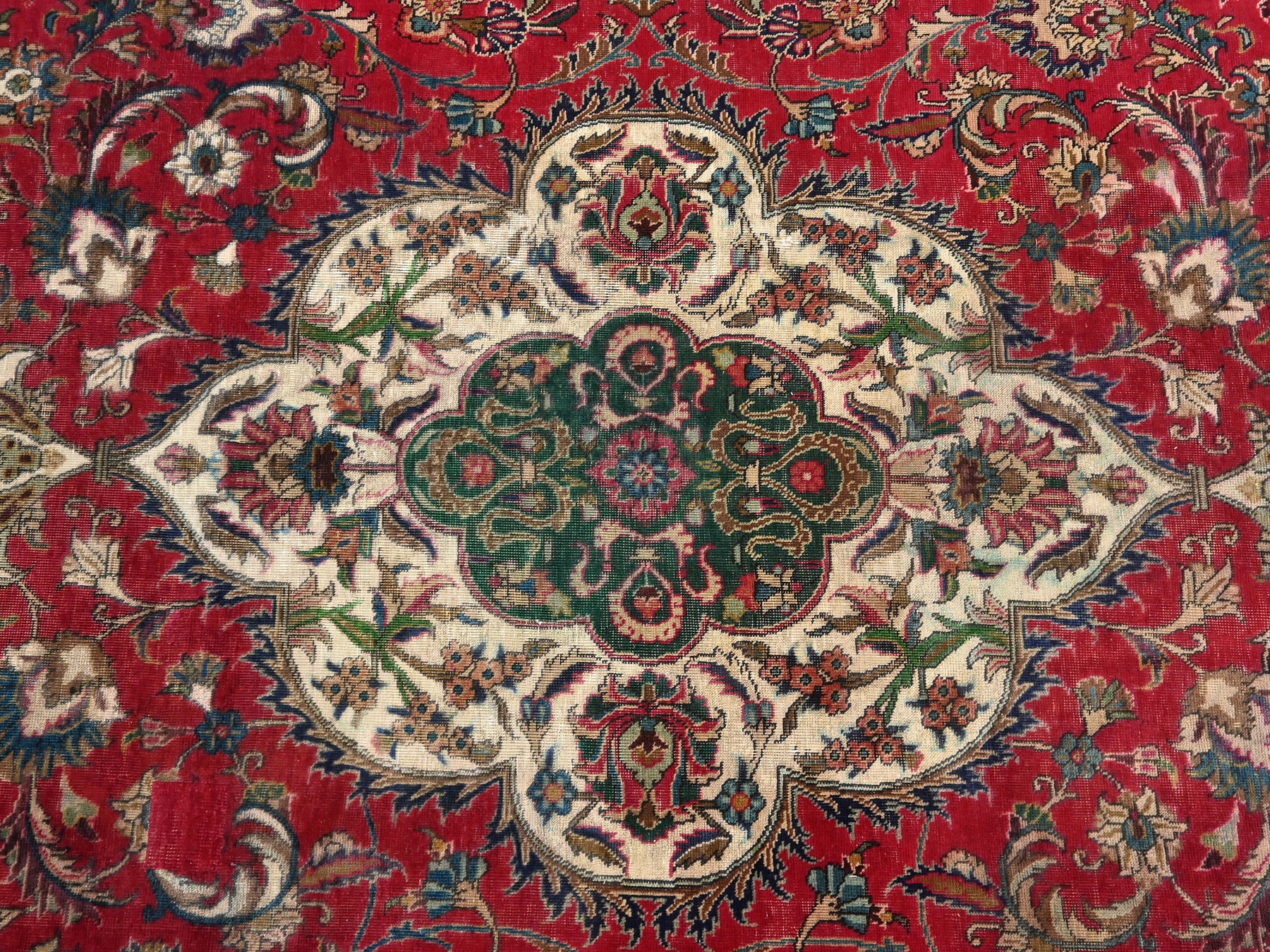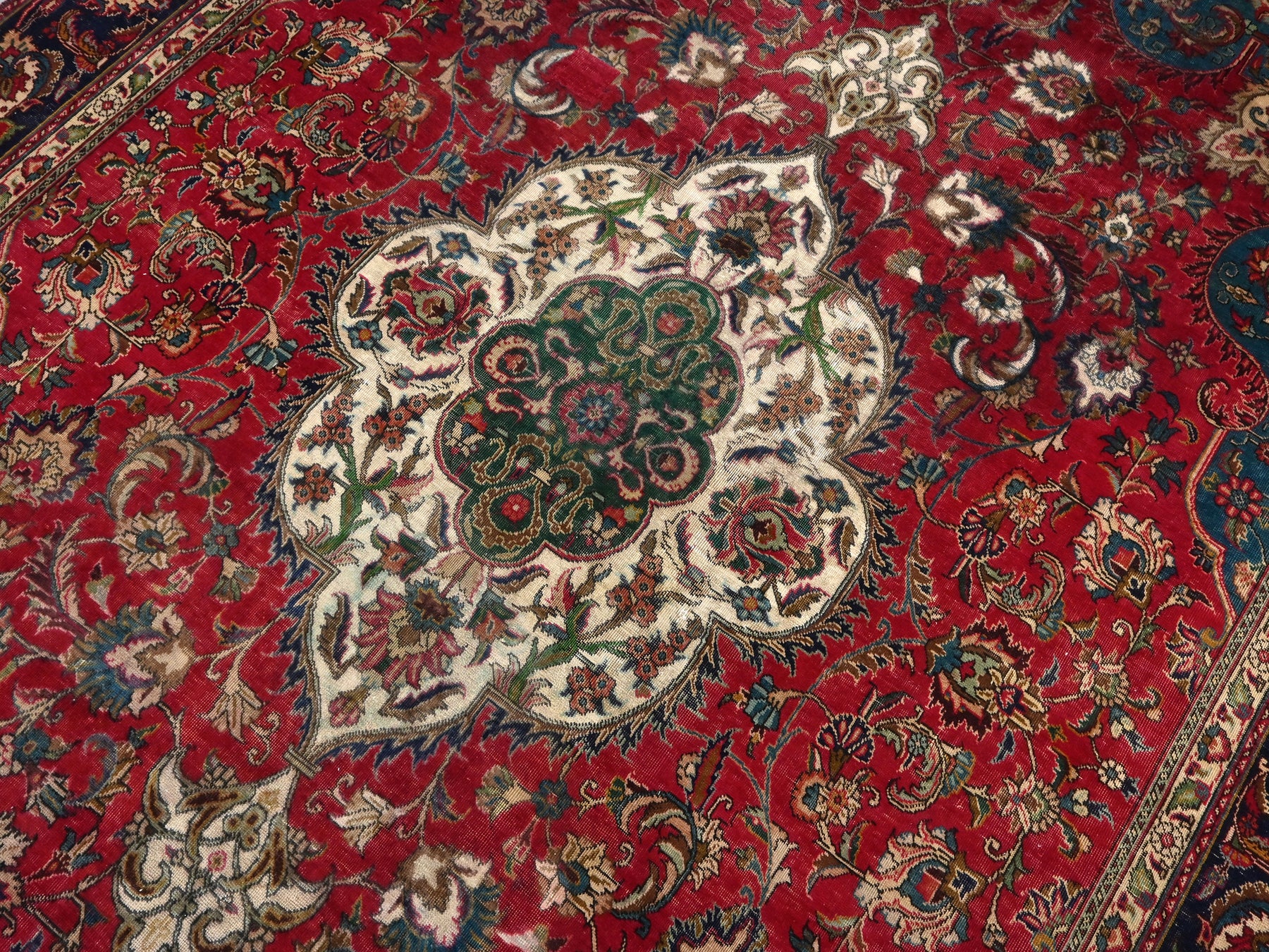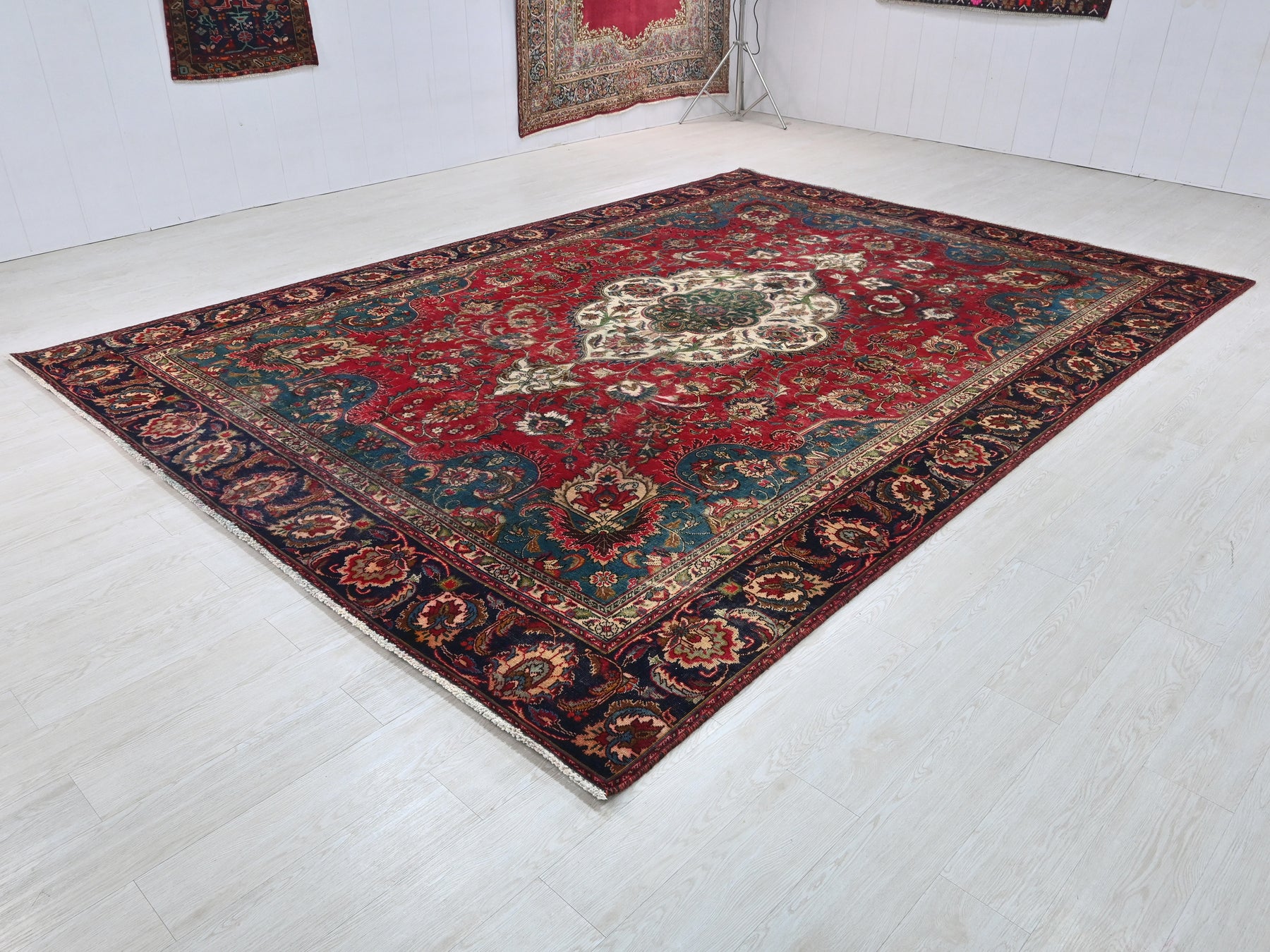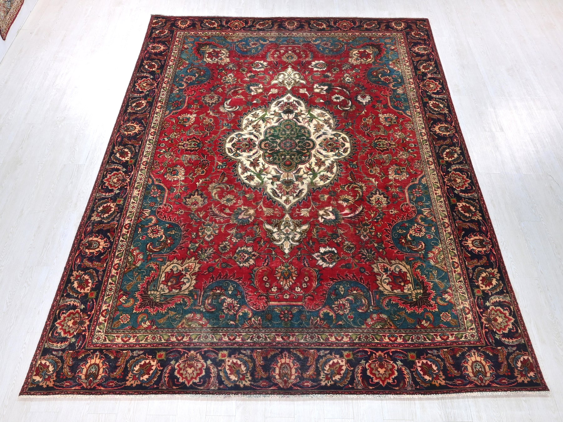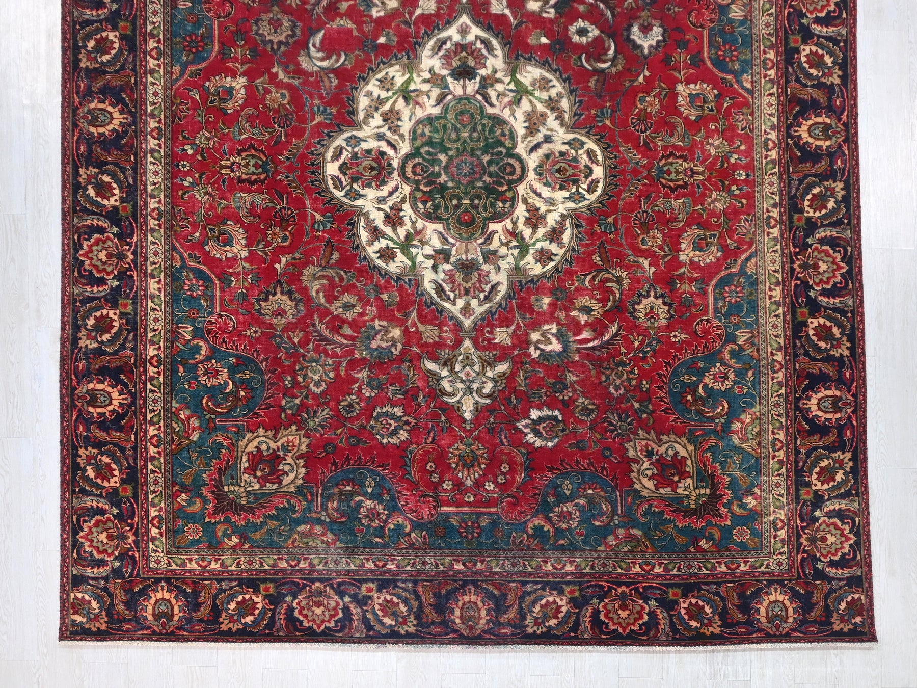 This is a hand-knotted, one-of-a-kind vintage rug. Due to the nature of this piece, there may be slight imperfections in its wear, shape, dimensions, and color. All of our rugs are professionally cleaned and repaired.