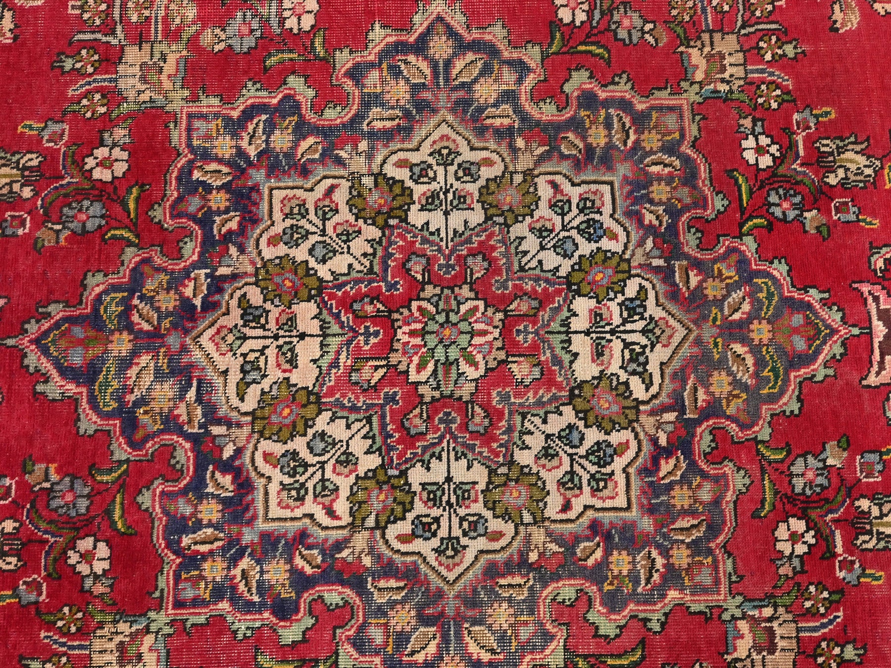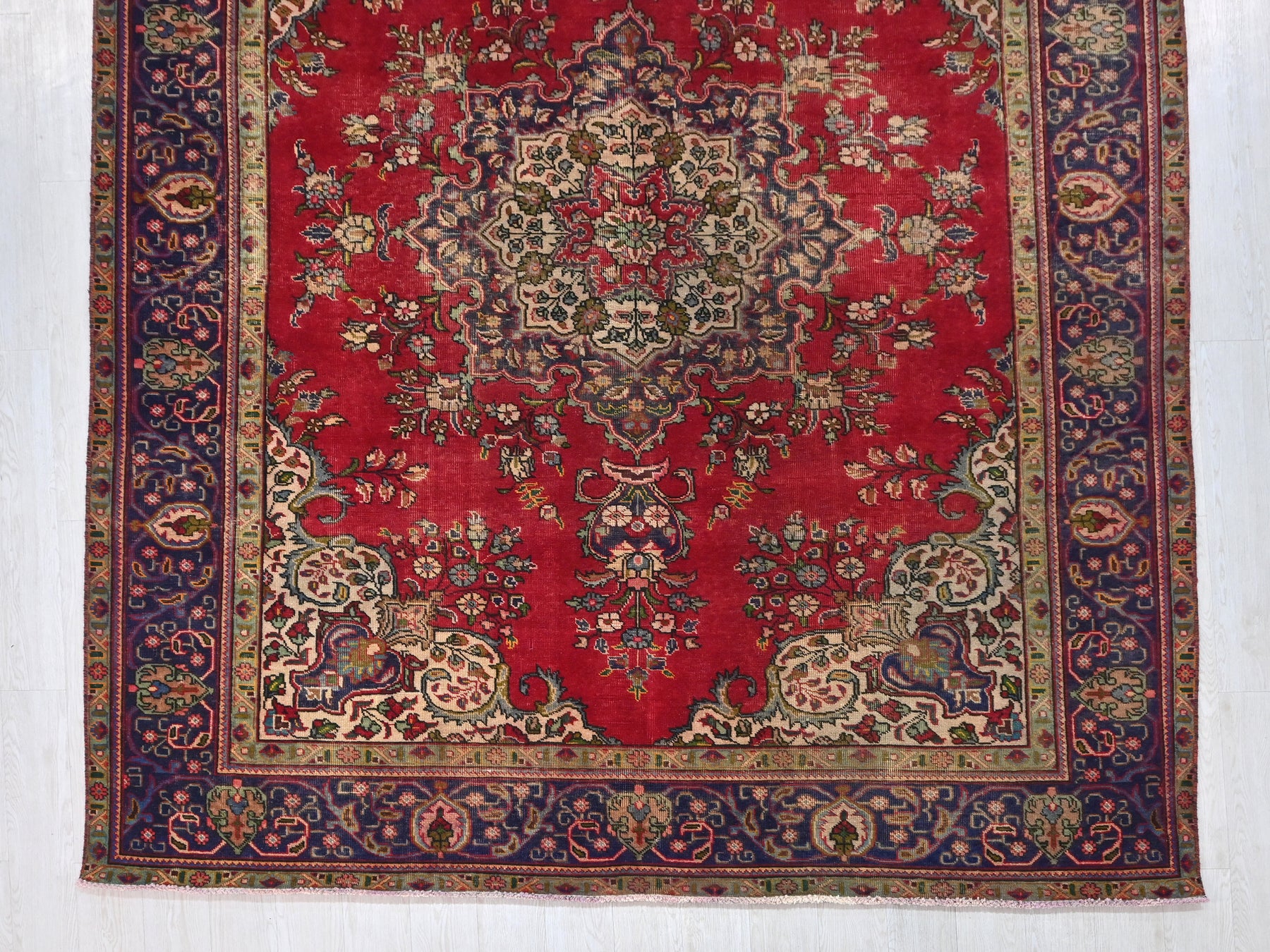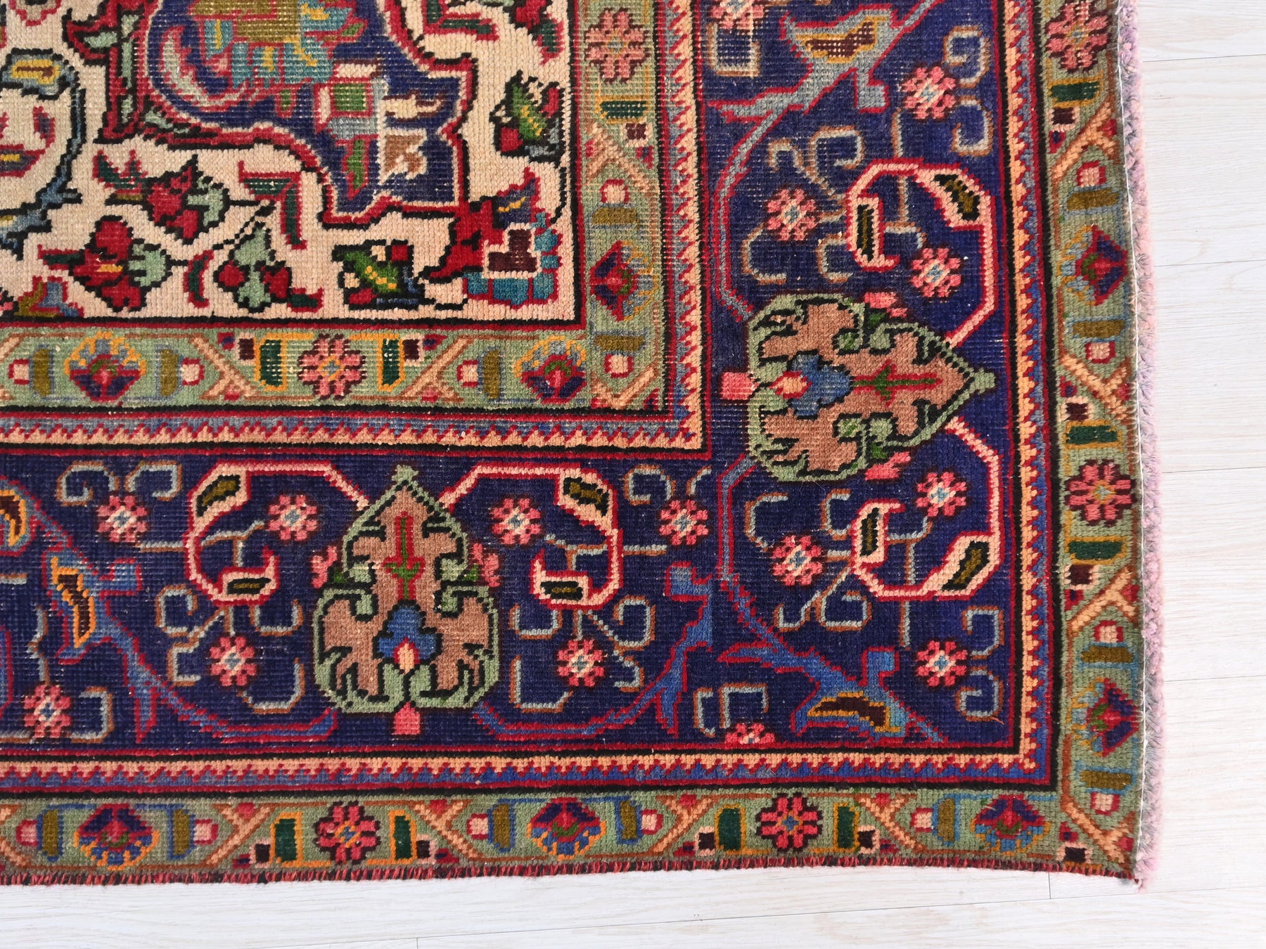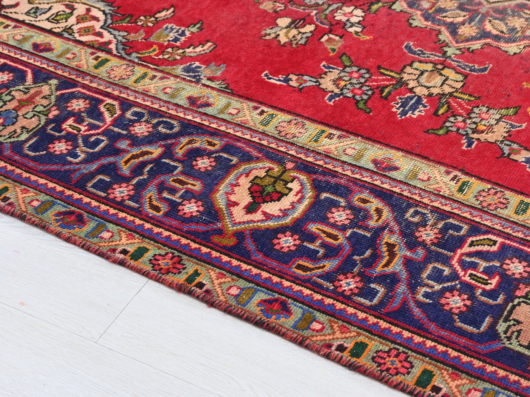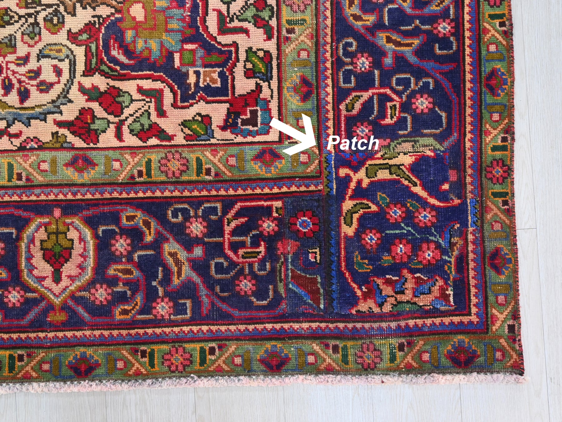 This is a hand-knotted, one-of-a-kind vintage rug. Due to the nature of this piece, there may be slight imperfections in its wear, shape, dimensions, and color. All of our rugs are professionally cleaned and repaired.