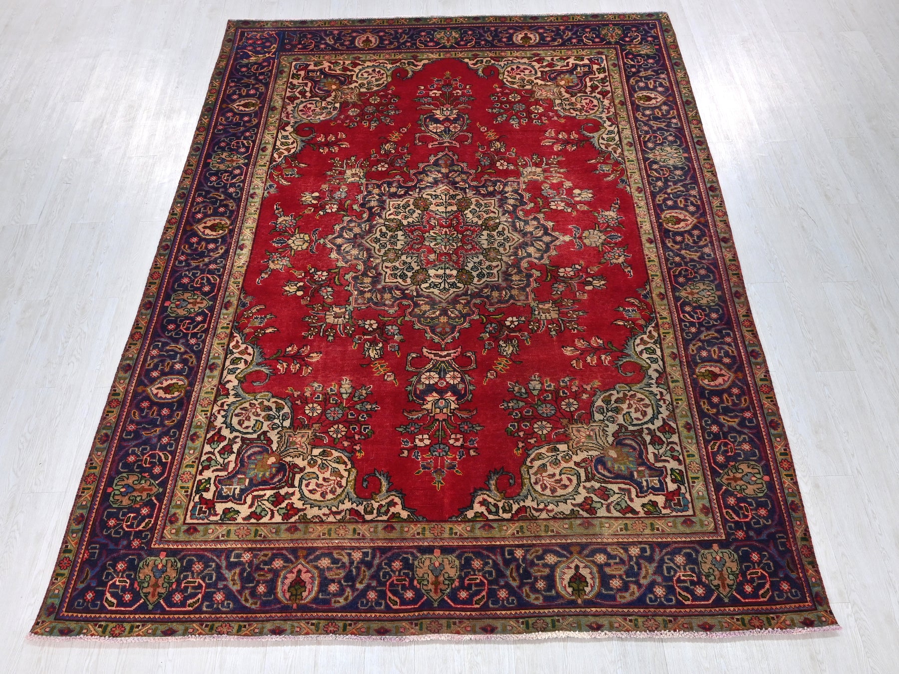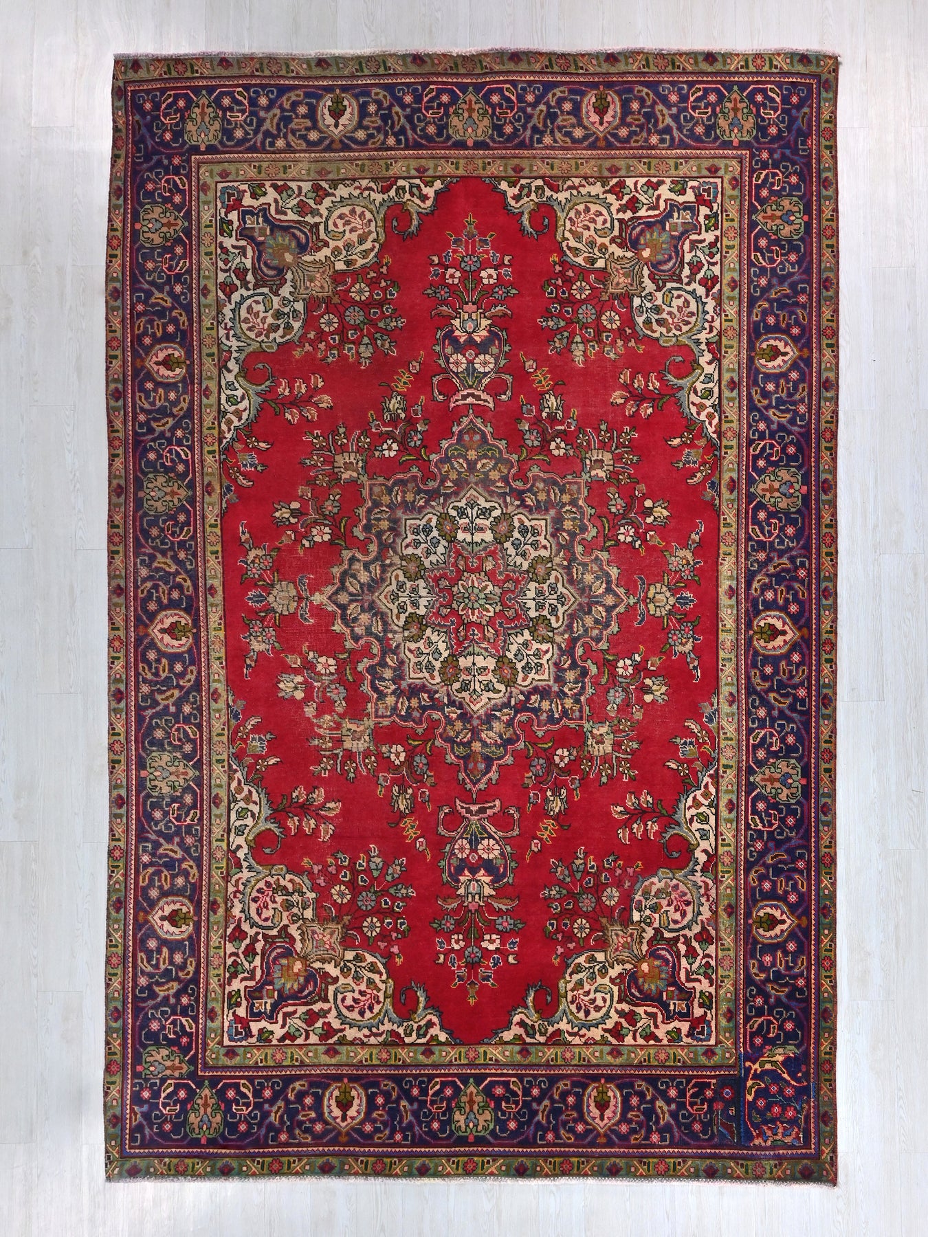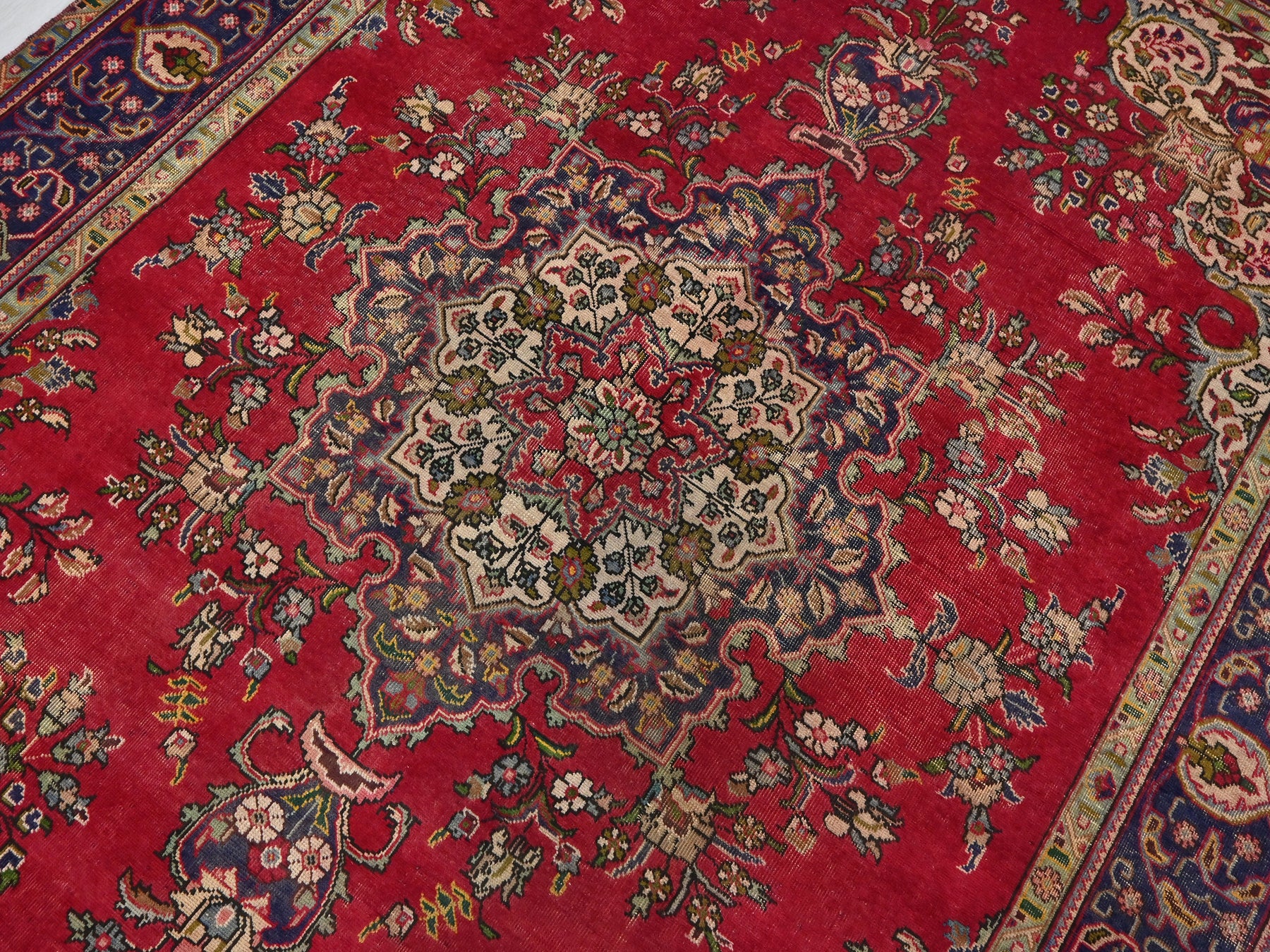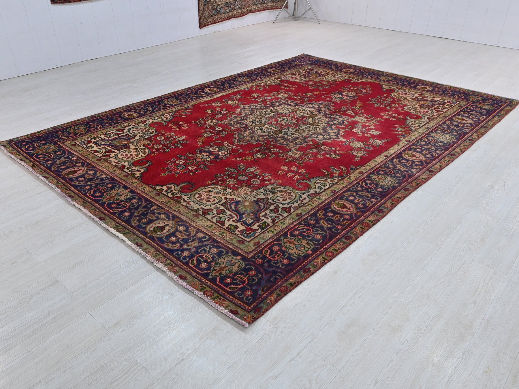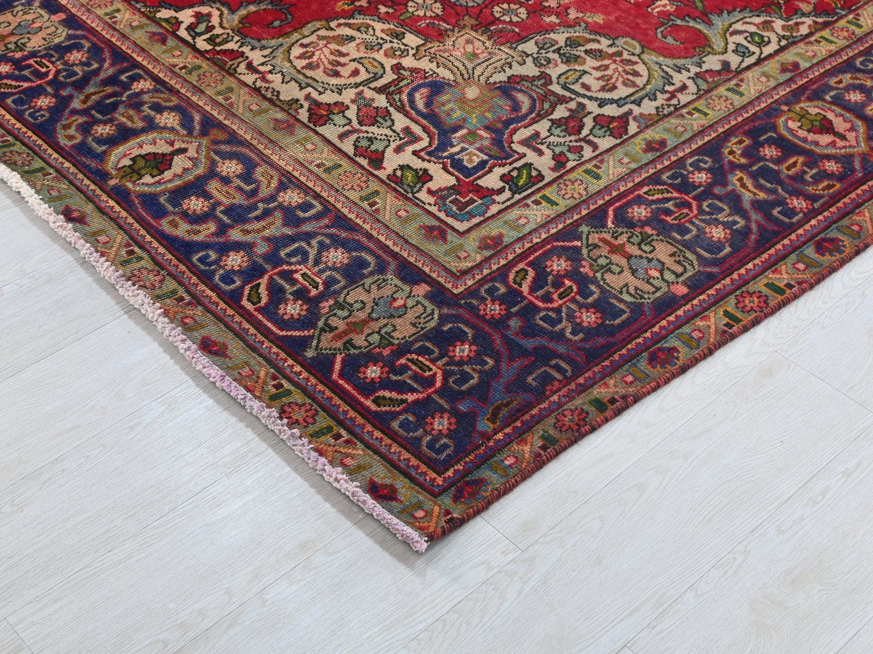 This is a hand-knotted, one-of-a-kind vintage rug. Due to the nature of this piece, there may be slight imperfections in its wear, shape, dimensions, and color. All of our rugs are professionally cleaned and repaired.