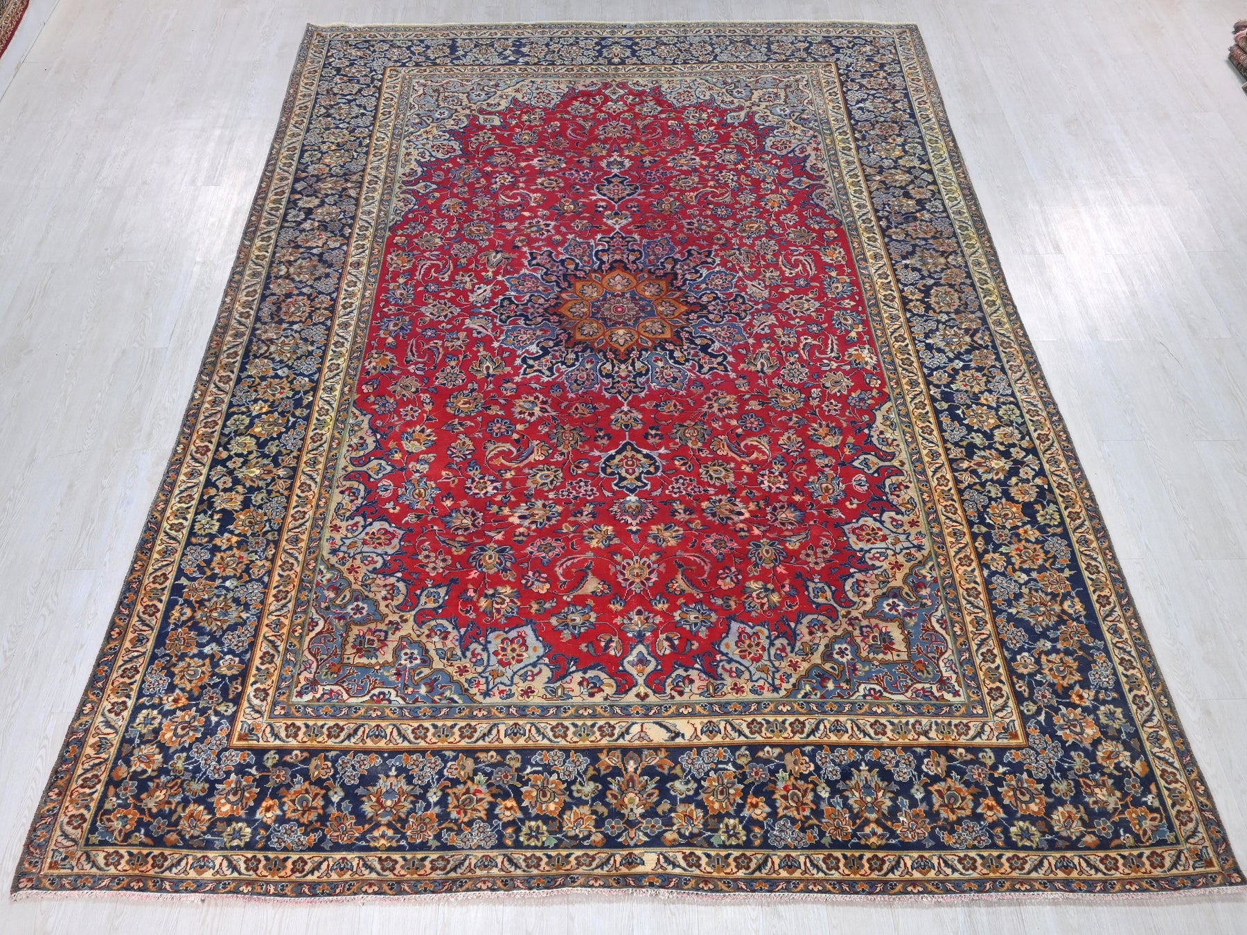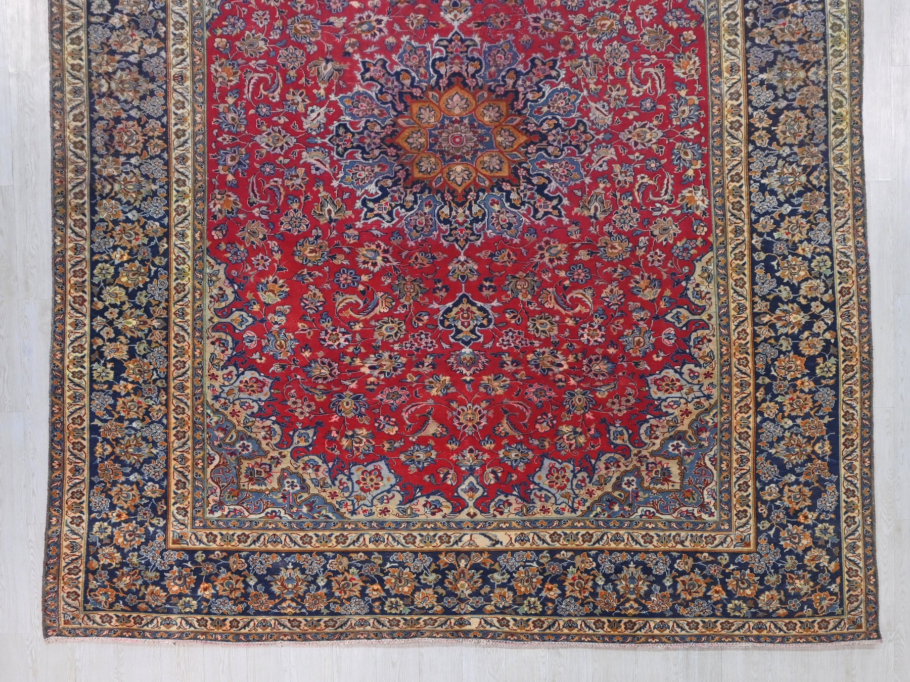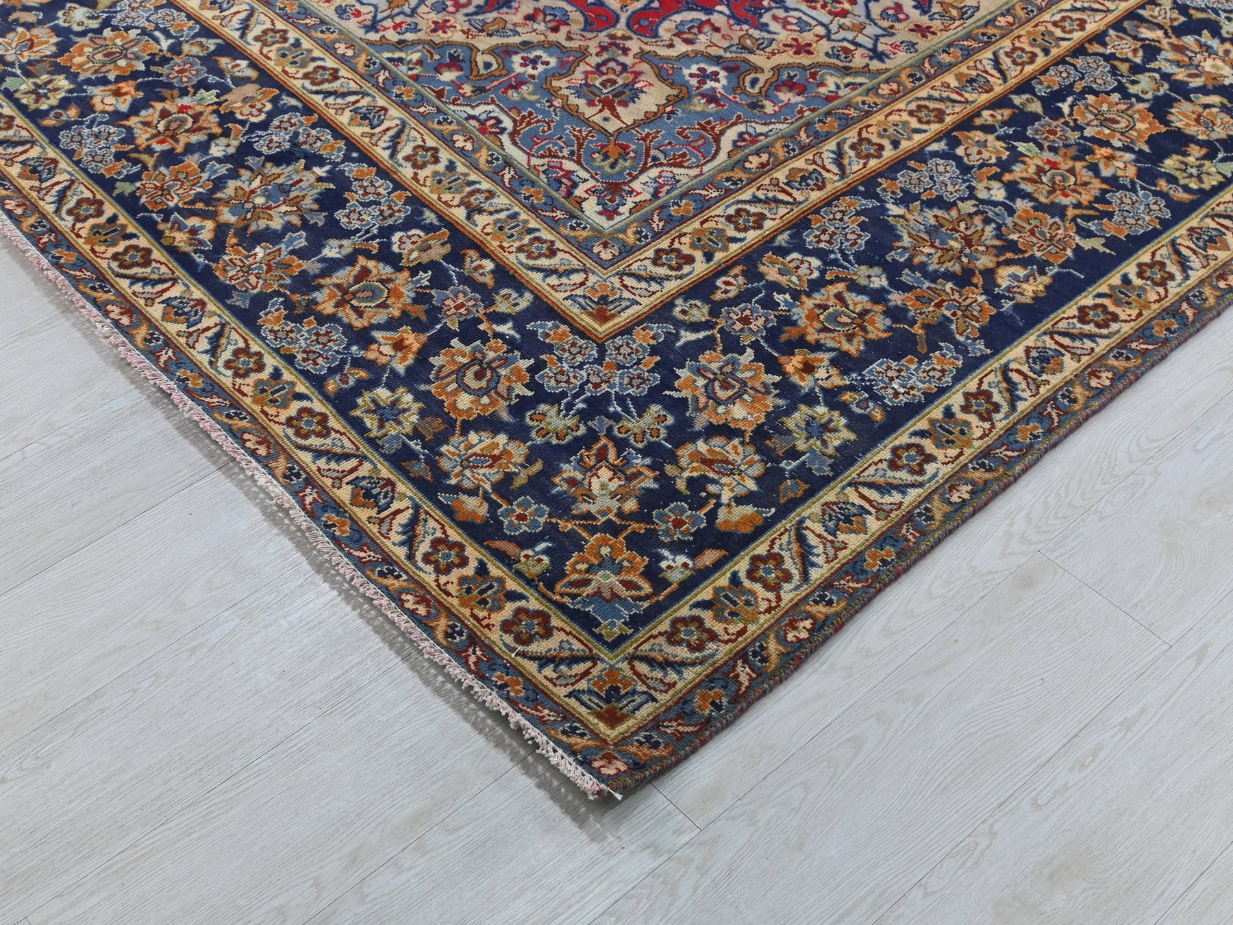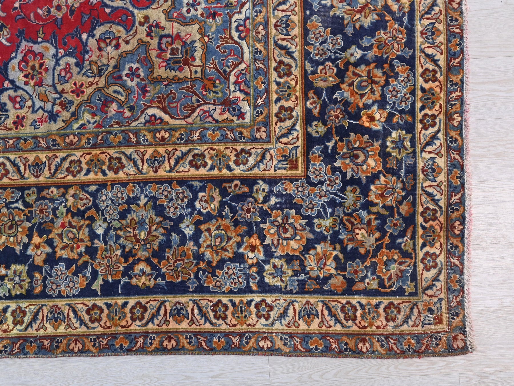 This is a hand-knotted, one-of-a-kind vintage rug. Due to the nature of this piece, there may be slight imperfections in its wear, shape, dimensions, and color. All of our rugs are professionally cleaned and repaired.