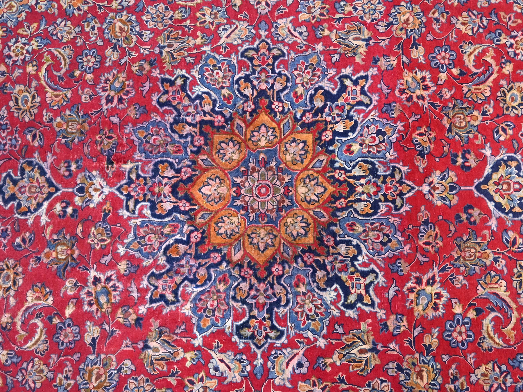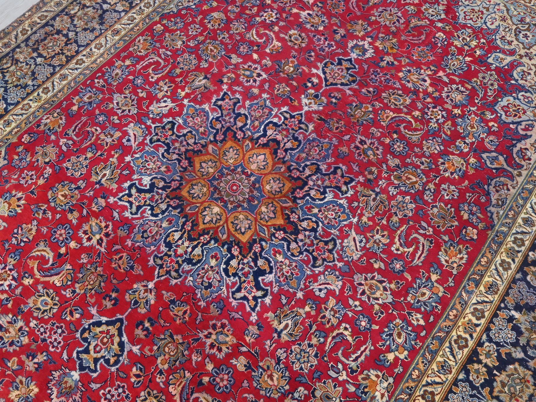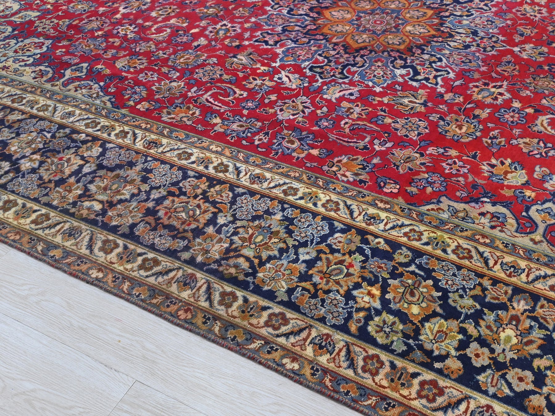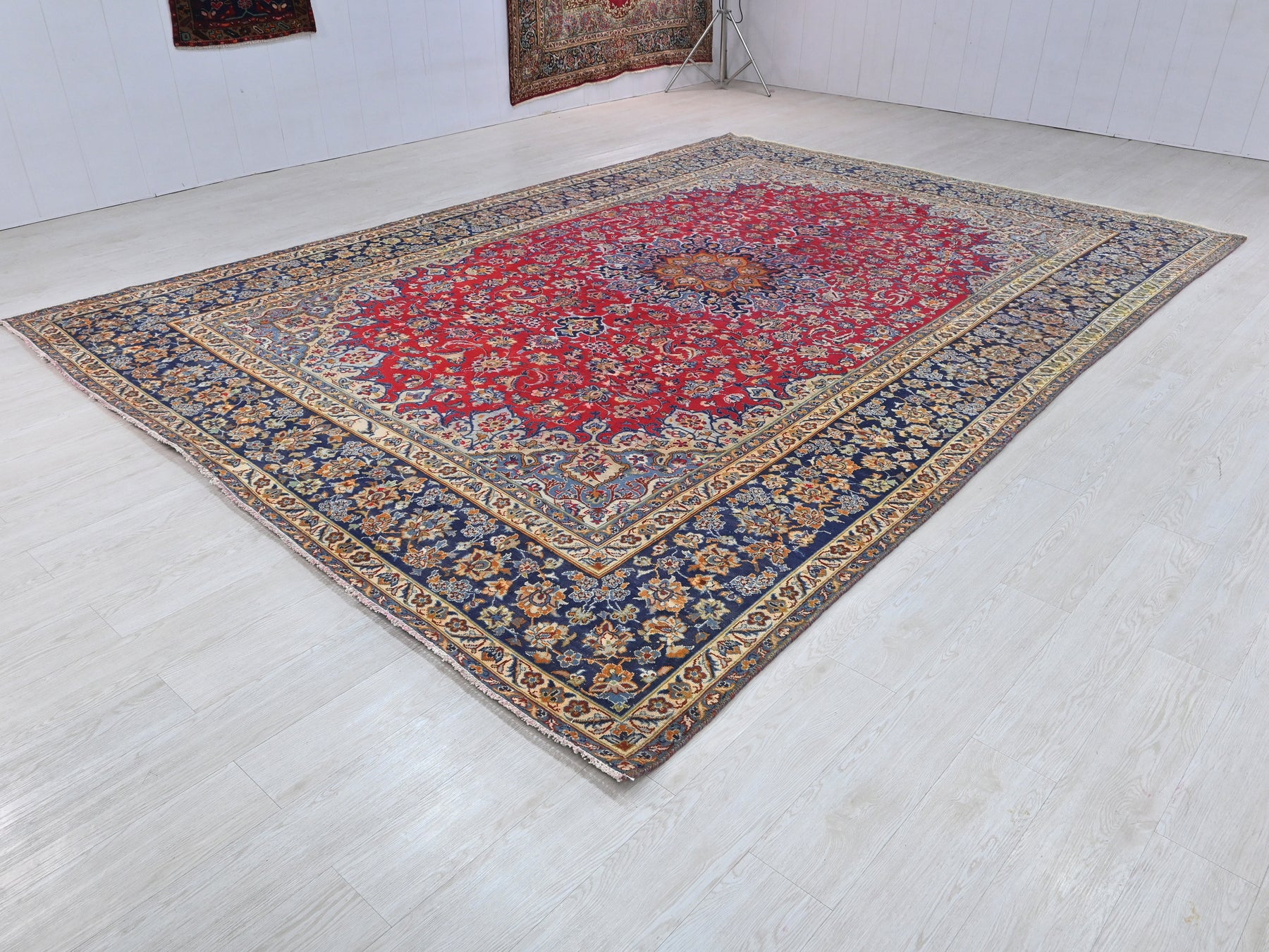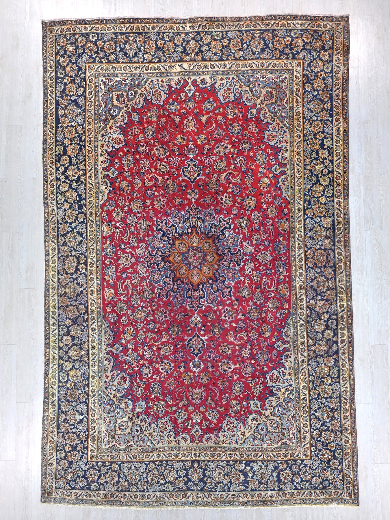 This is a hand-knotted, one-of-a-kind vintage rug. Due to the nature of this piece, there may be slight imperfections in its wear, shape, dimensions, and color. All of our rugs are professionally cleaned and repaired.
