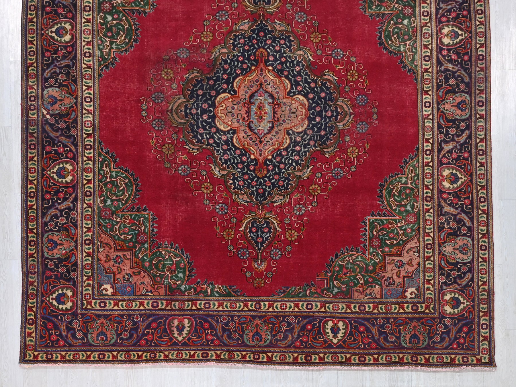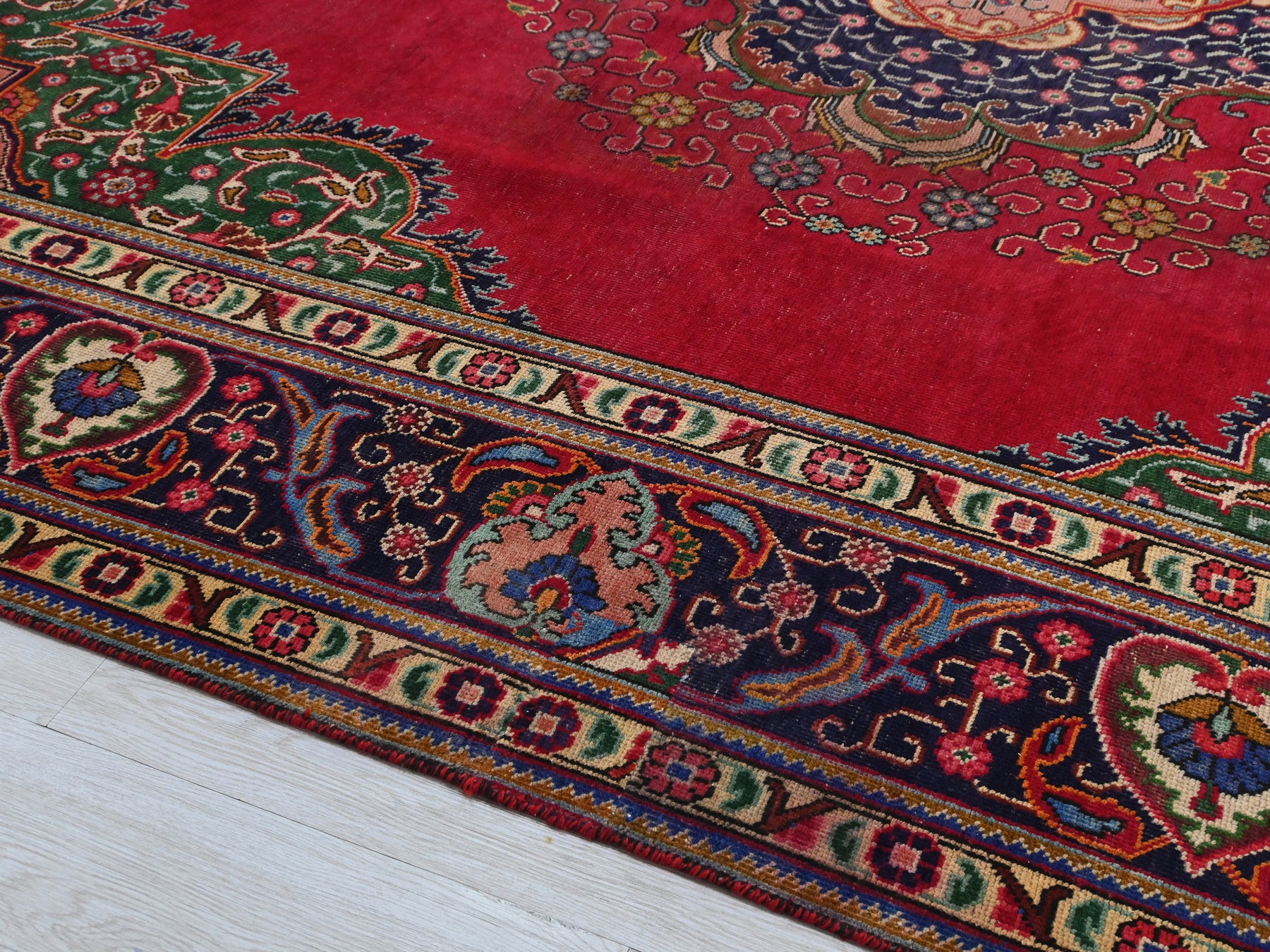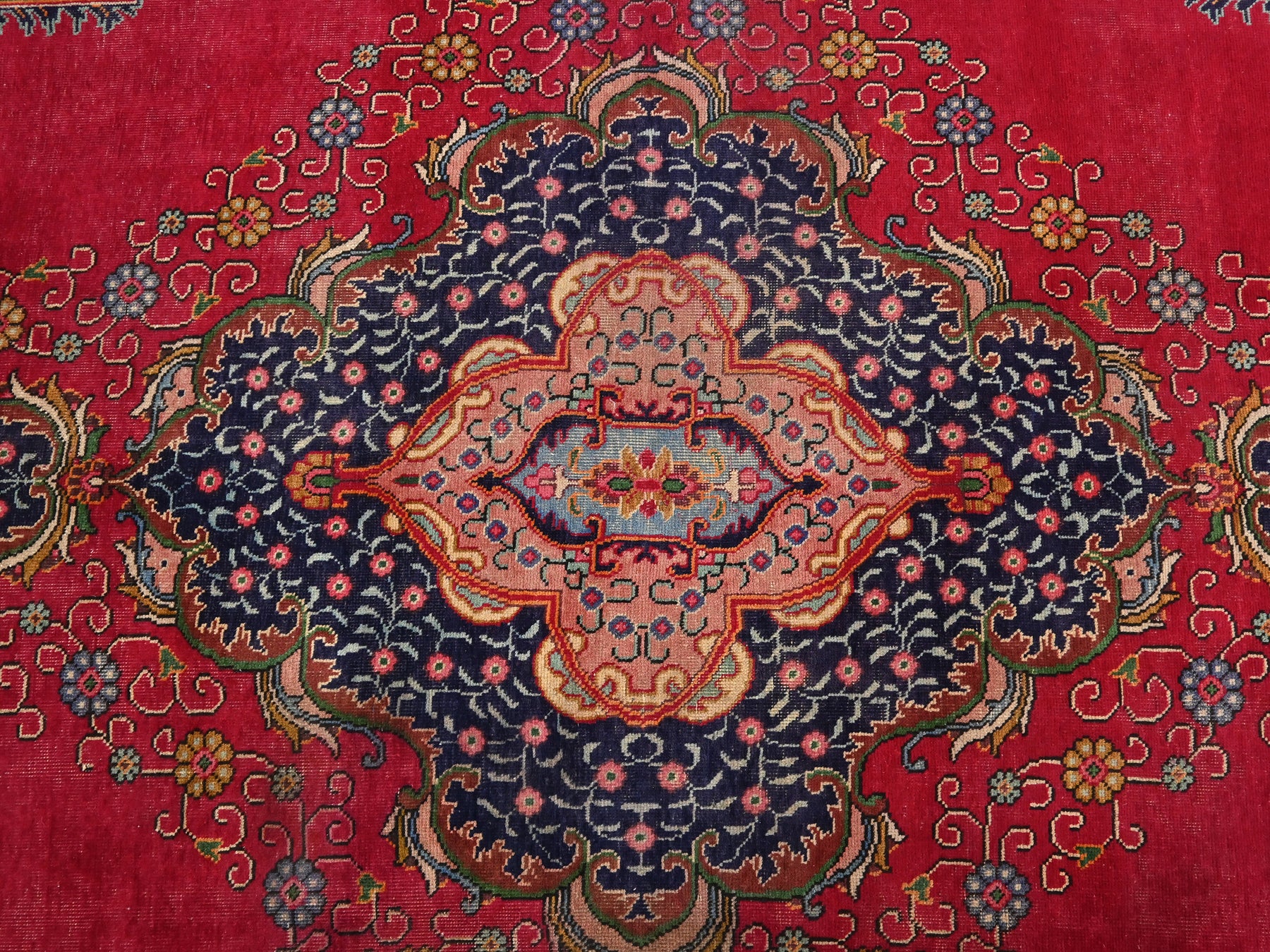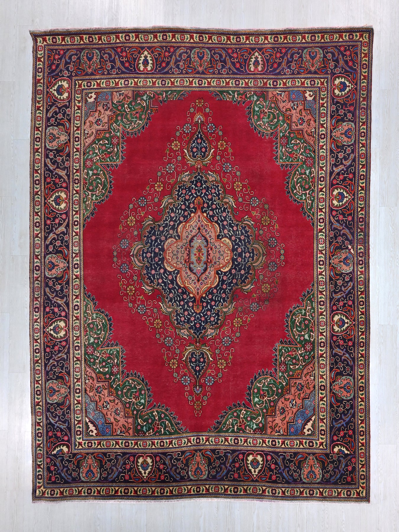 This is a hand-knotted, one-of-a-kind vintage rug. Due to the nature of this piece, there may be slight imperfections in its wear, shape, dimensions, and color. All of our rugs are professionally cleaned and repaired.