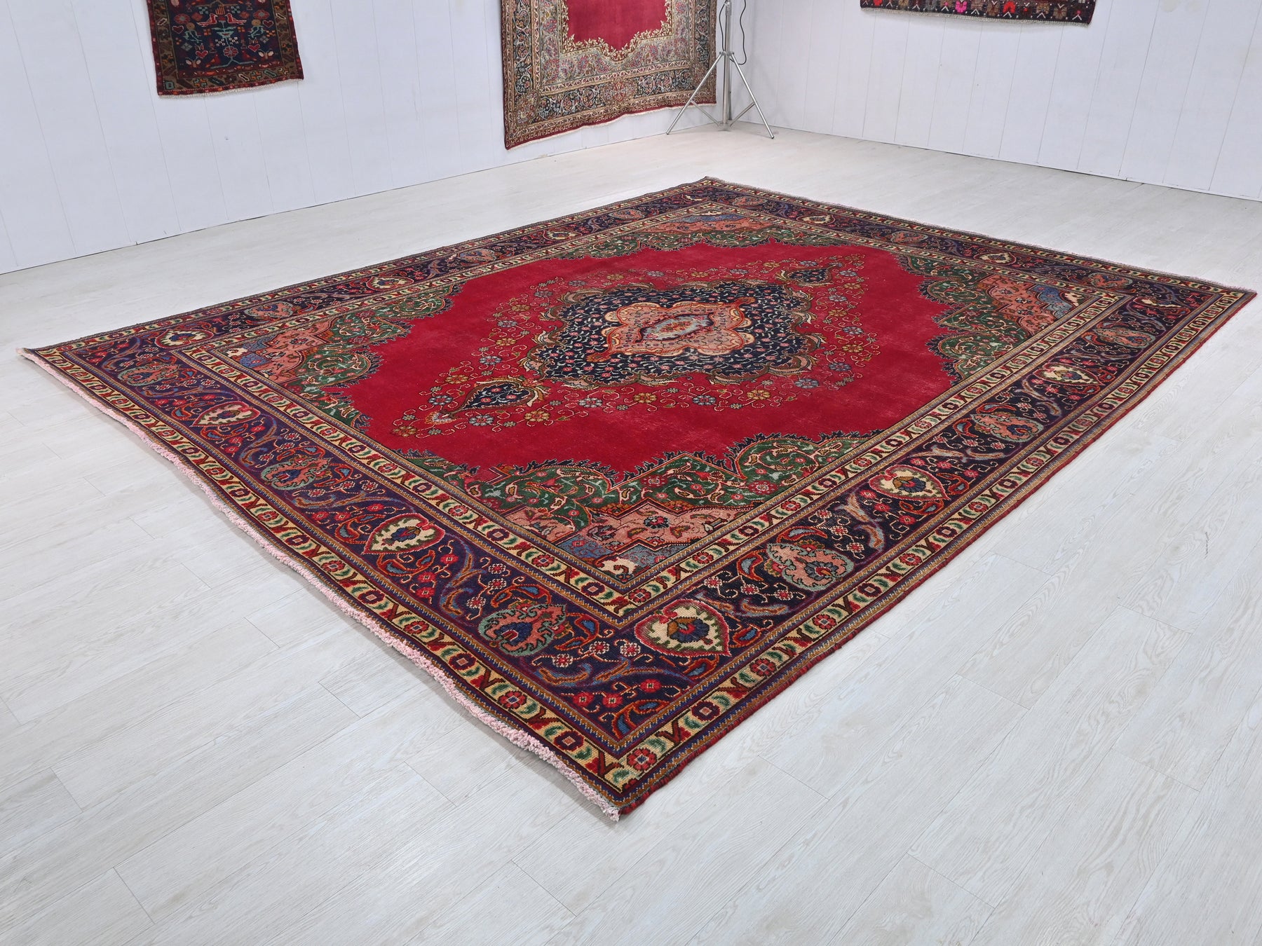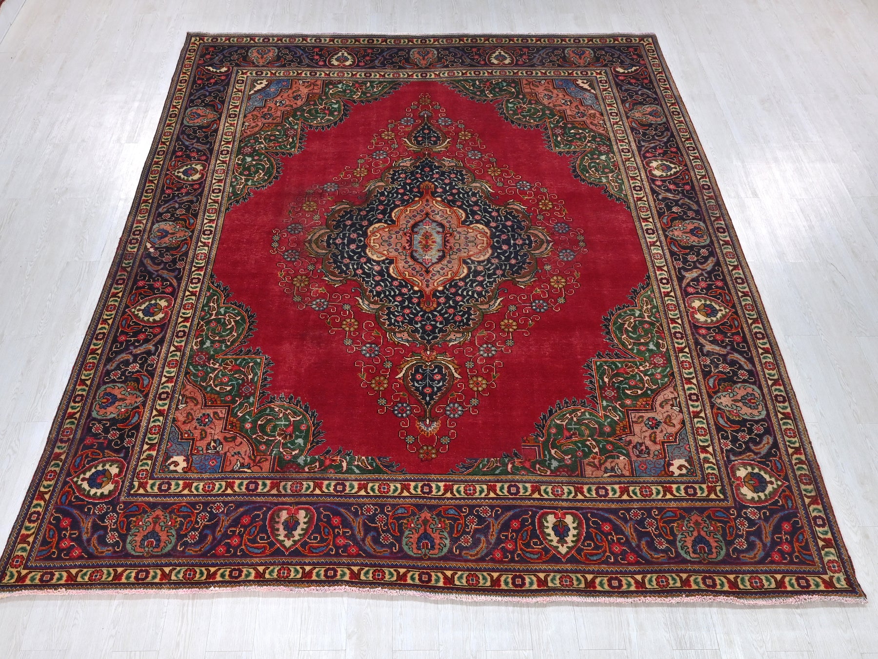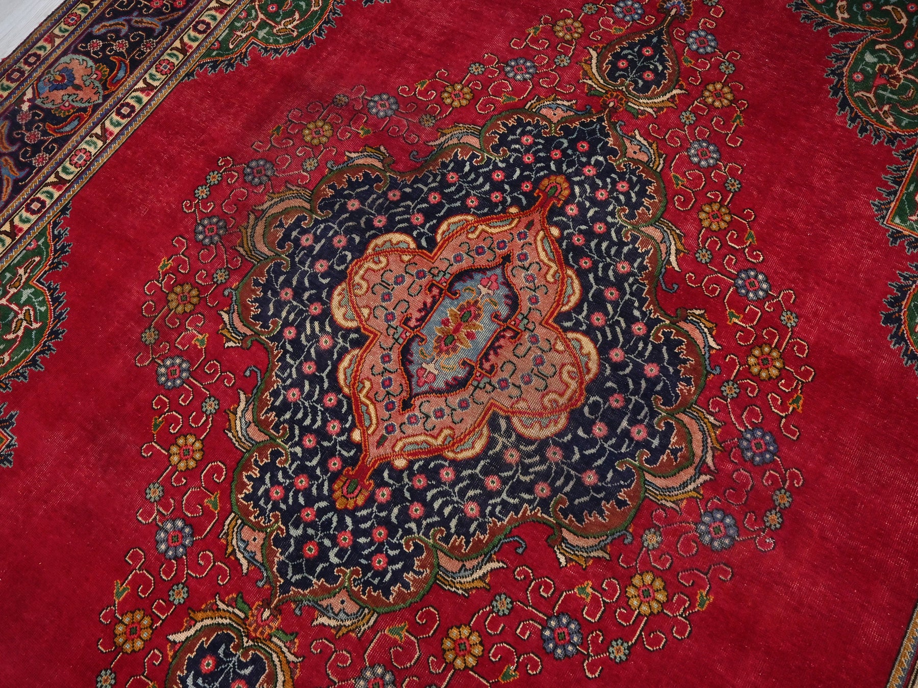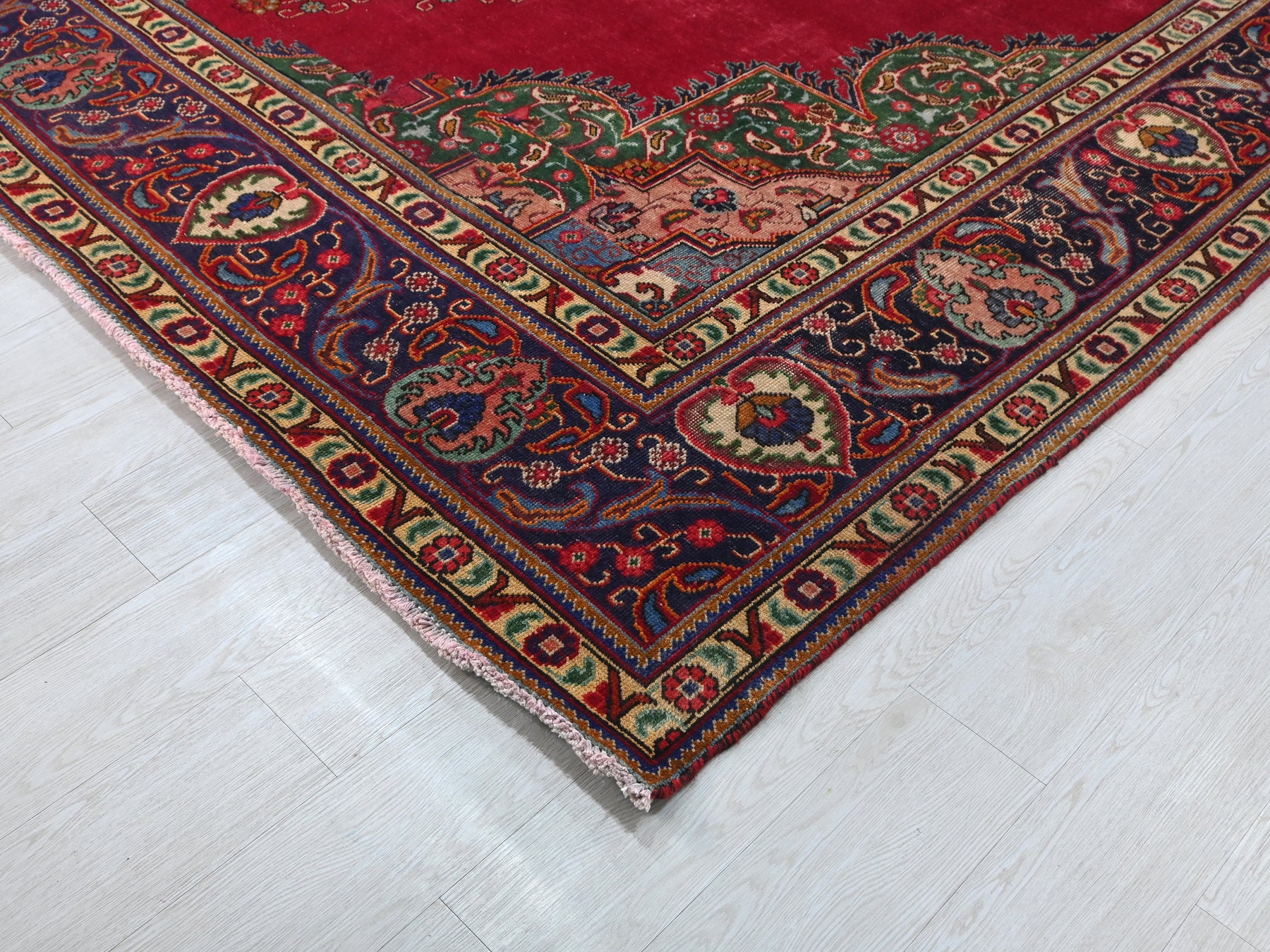 This is a hand-knotted, one-of-a-kind vintage rug. Due to the nature of this piece, there may be slight imperfections in its wear, shape, dimensions, and color. All of our rugs are professionally cleaned and repaired.