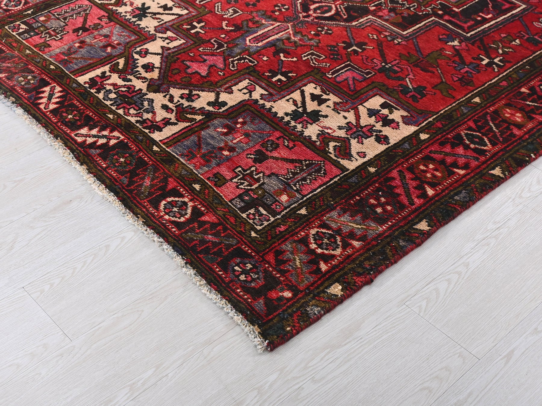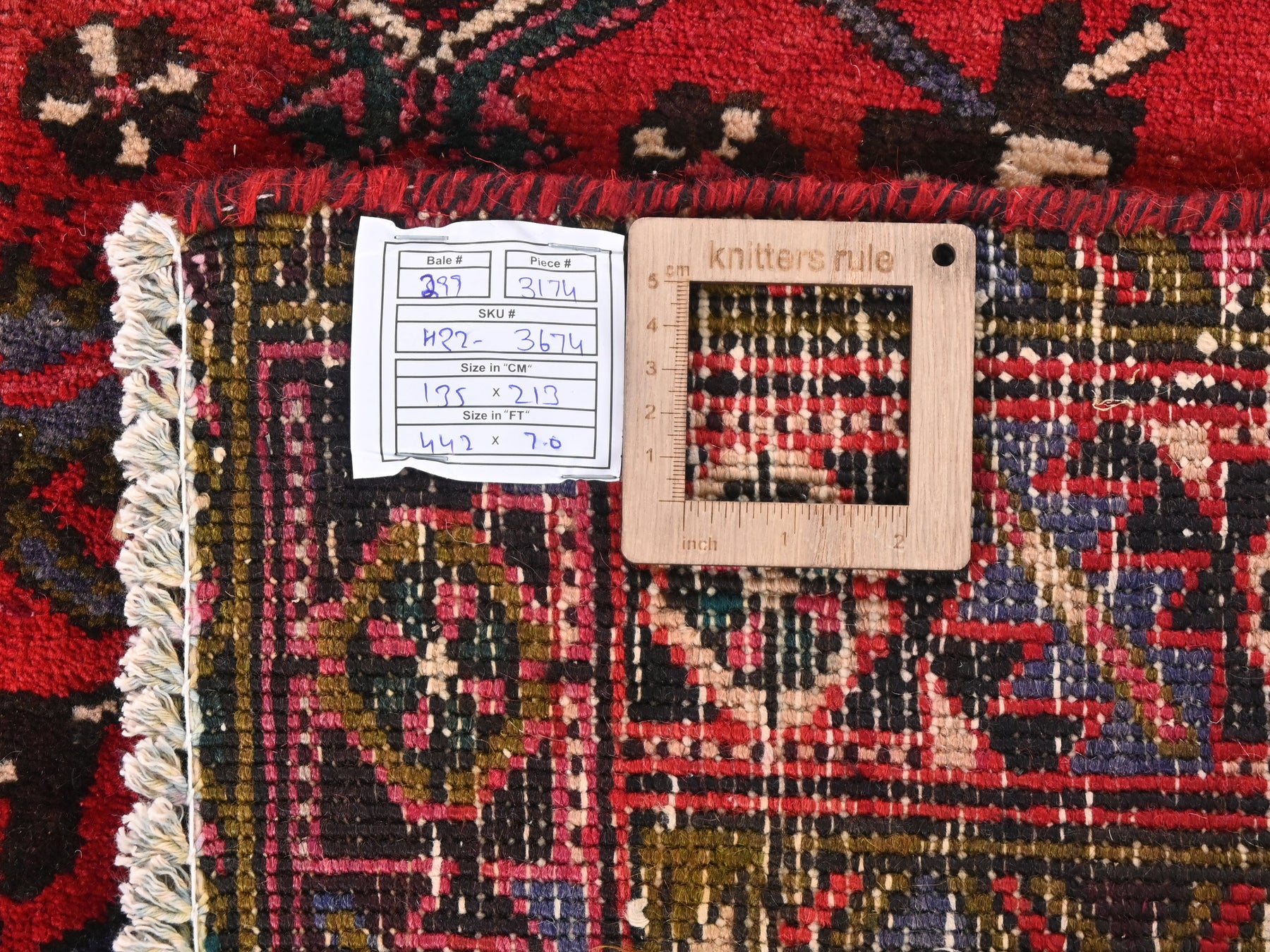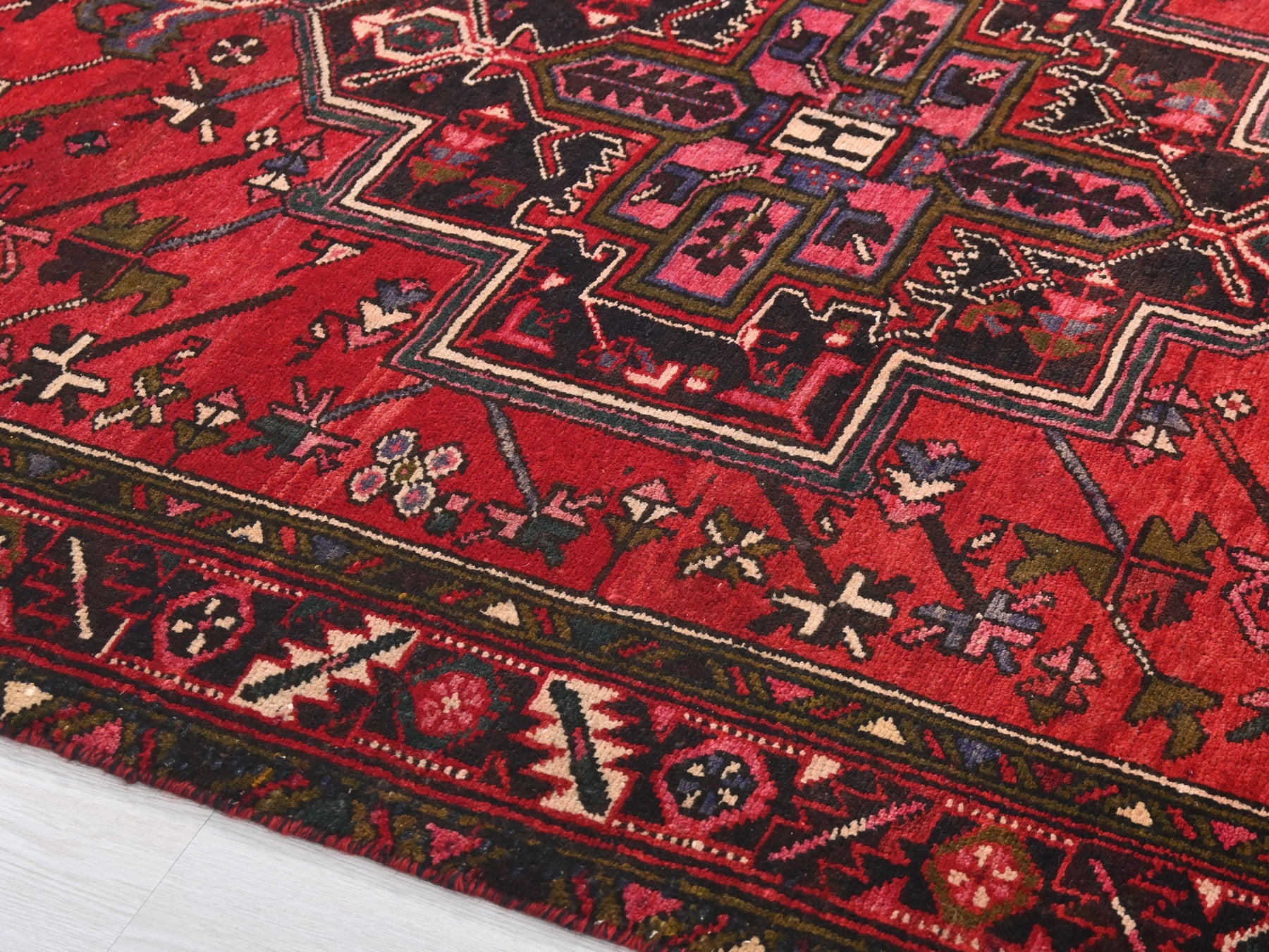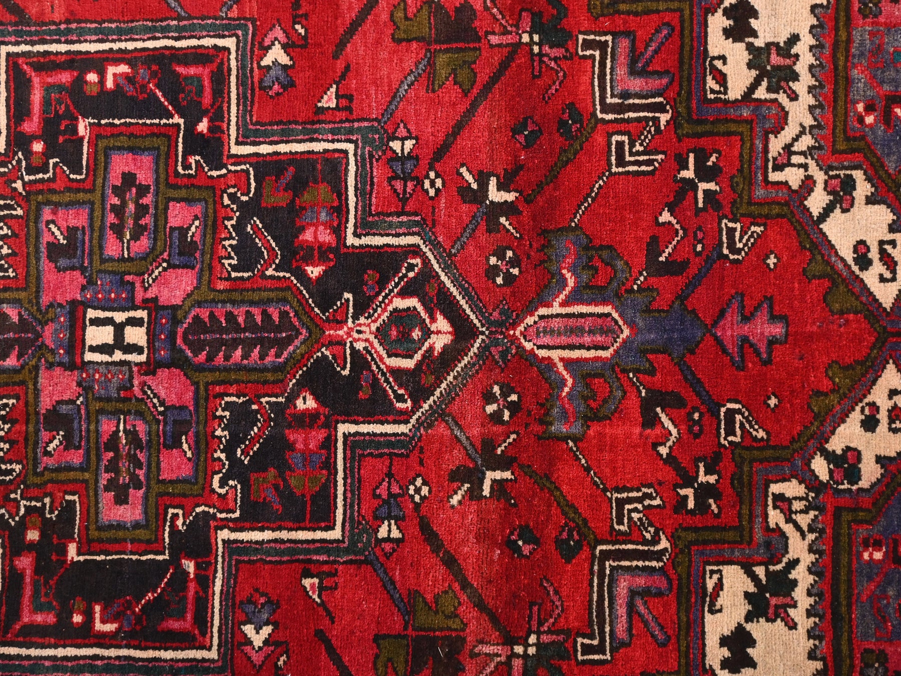 This is a hand-knotted, one-of-a-kind vintage rug. Due to the nature of this piece, there may be slight imperfections in its wear, shape, dimensions, and color. All of our rugs are professionally cleaned and repaired.