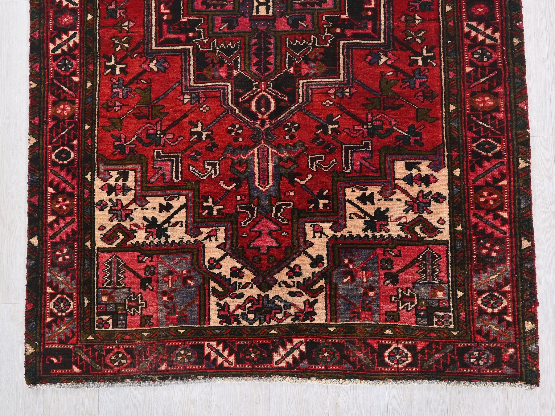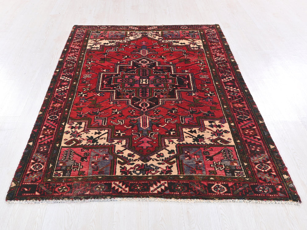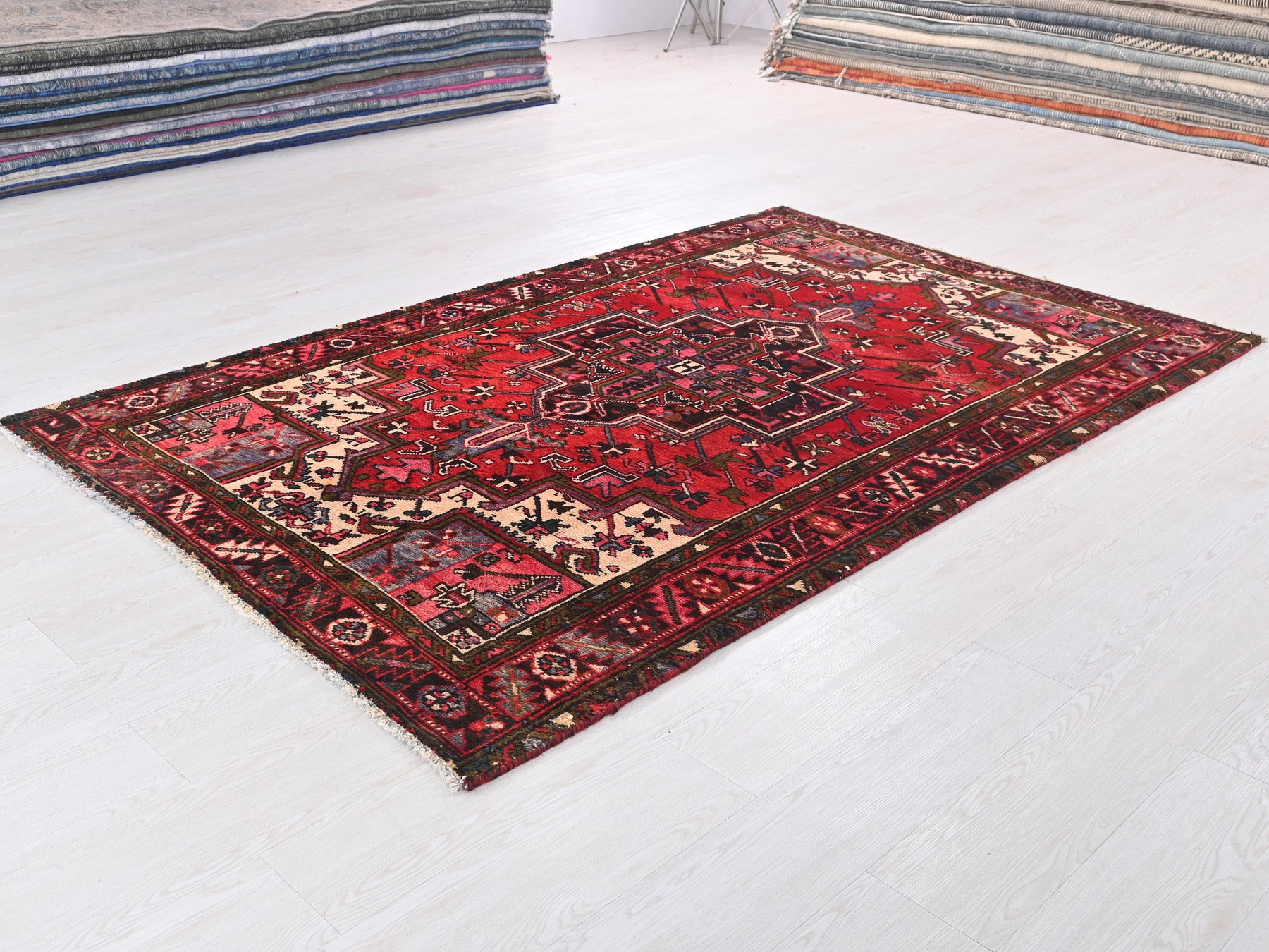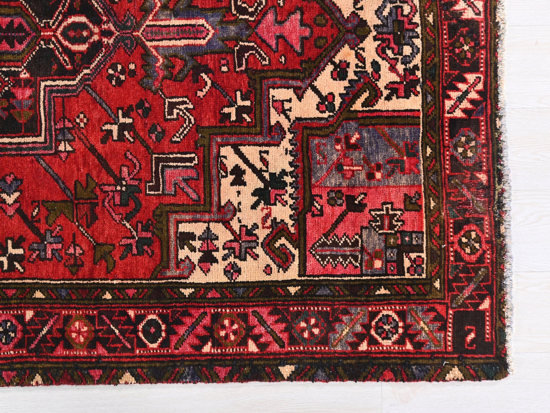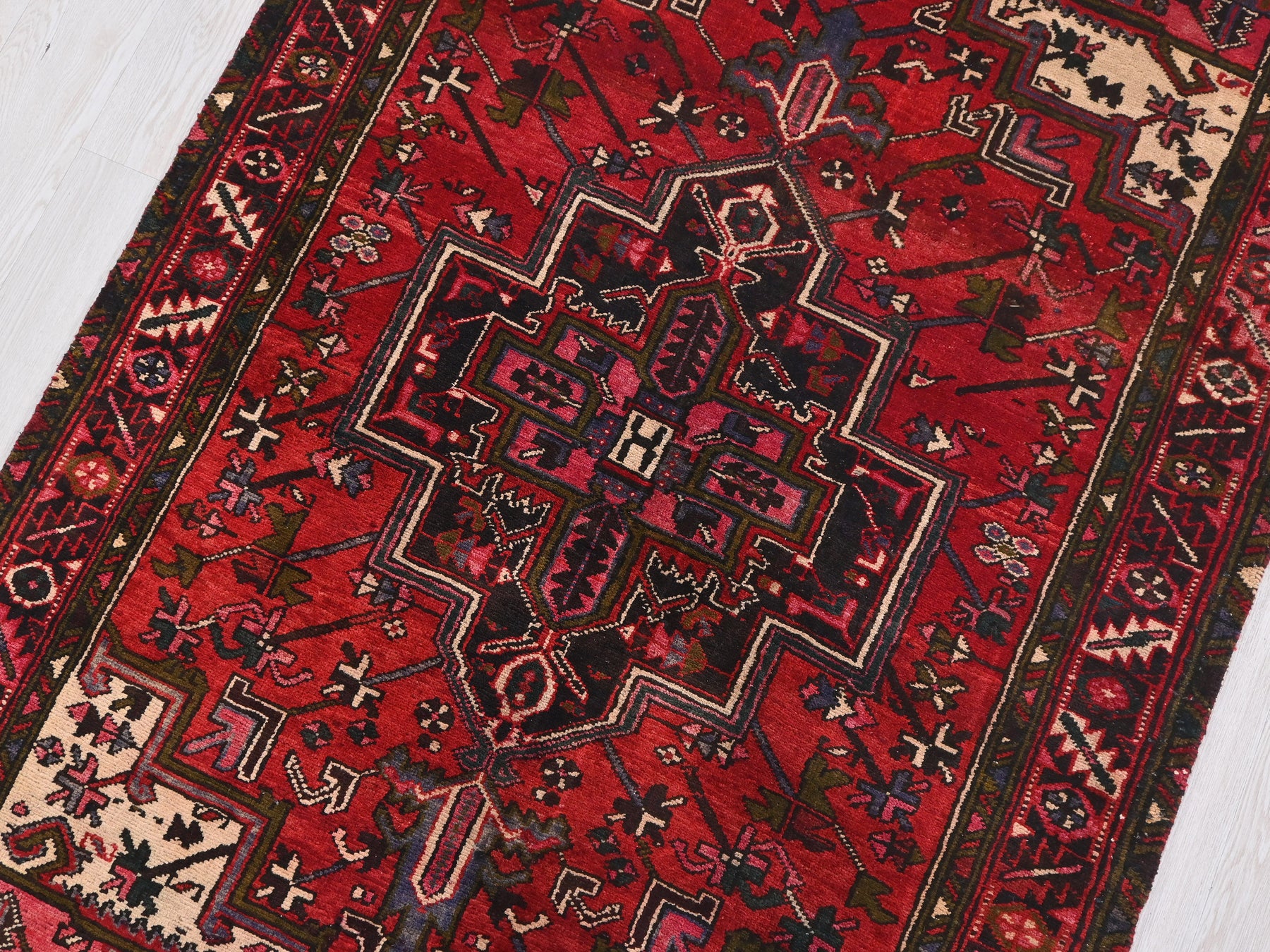 This is a hand-knotted, one-of-a-kind vintage rug. Due to the nature of this piece, there may be slight imperfections in its wear, shape, dimensions, and color. All of our rugs are professionally cleaned and repaired.