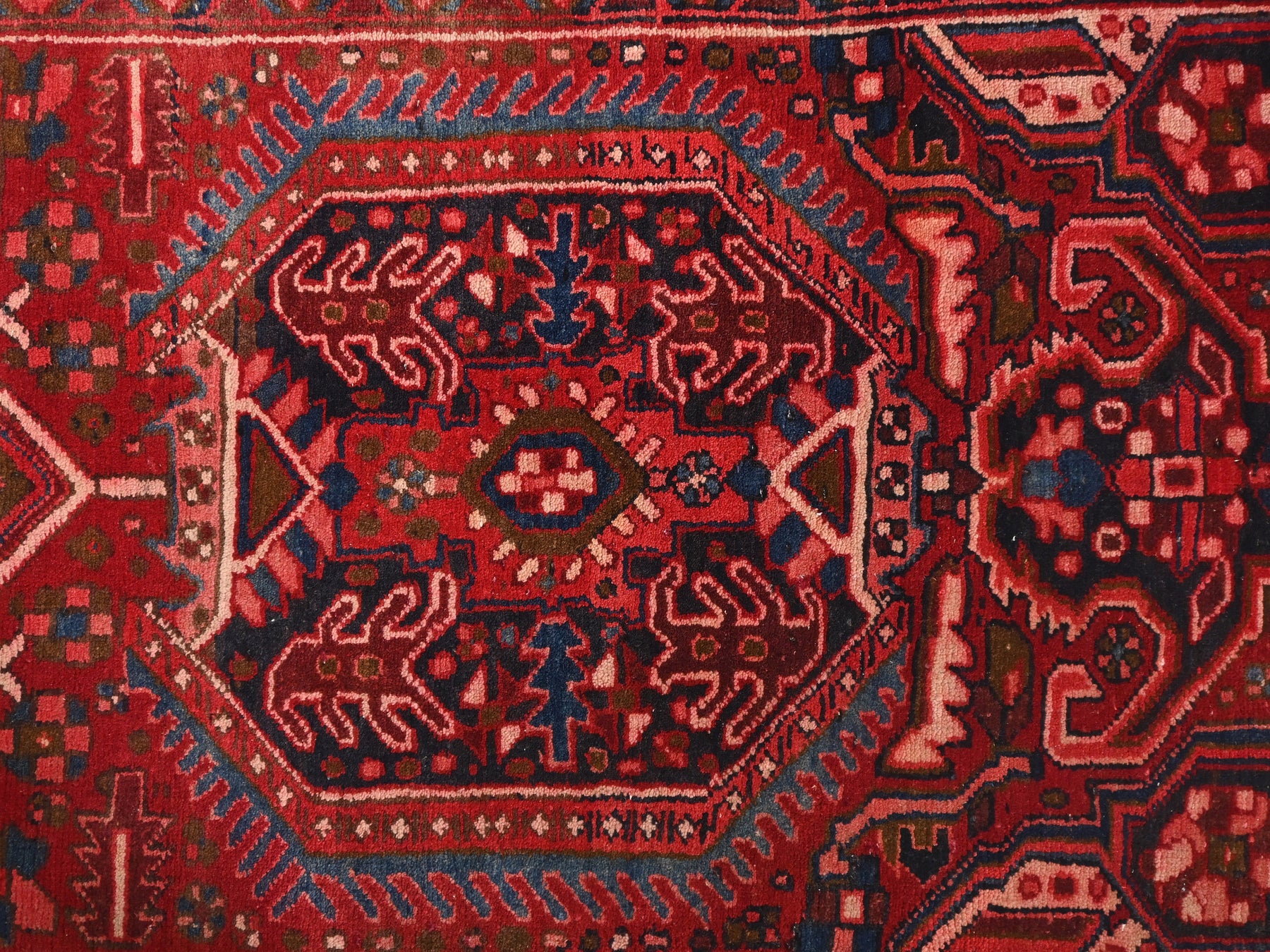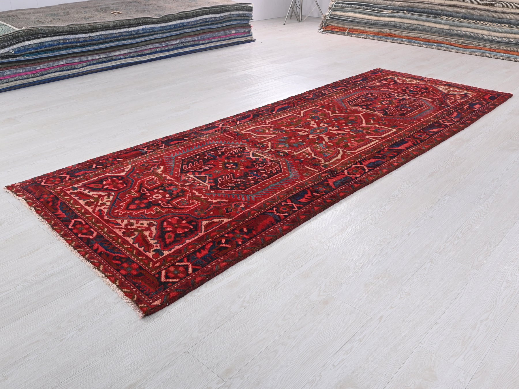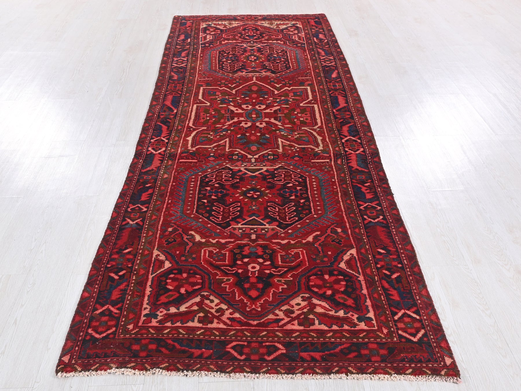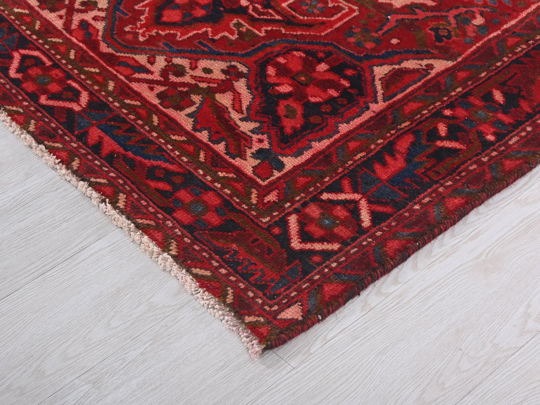 This is a hand-knotted, one-of-a-kind vintage rug. Due to the nature of this piece, there may be slight imperfections in its wear, shape, dimensions, and color. All of our rugs are professionally cleaned and repaired.