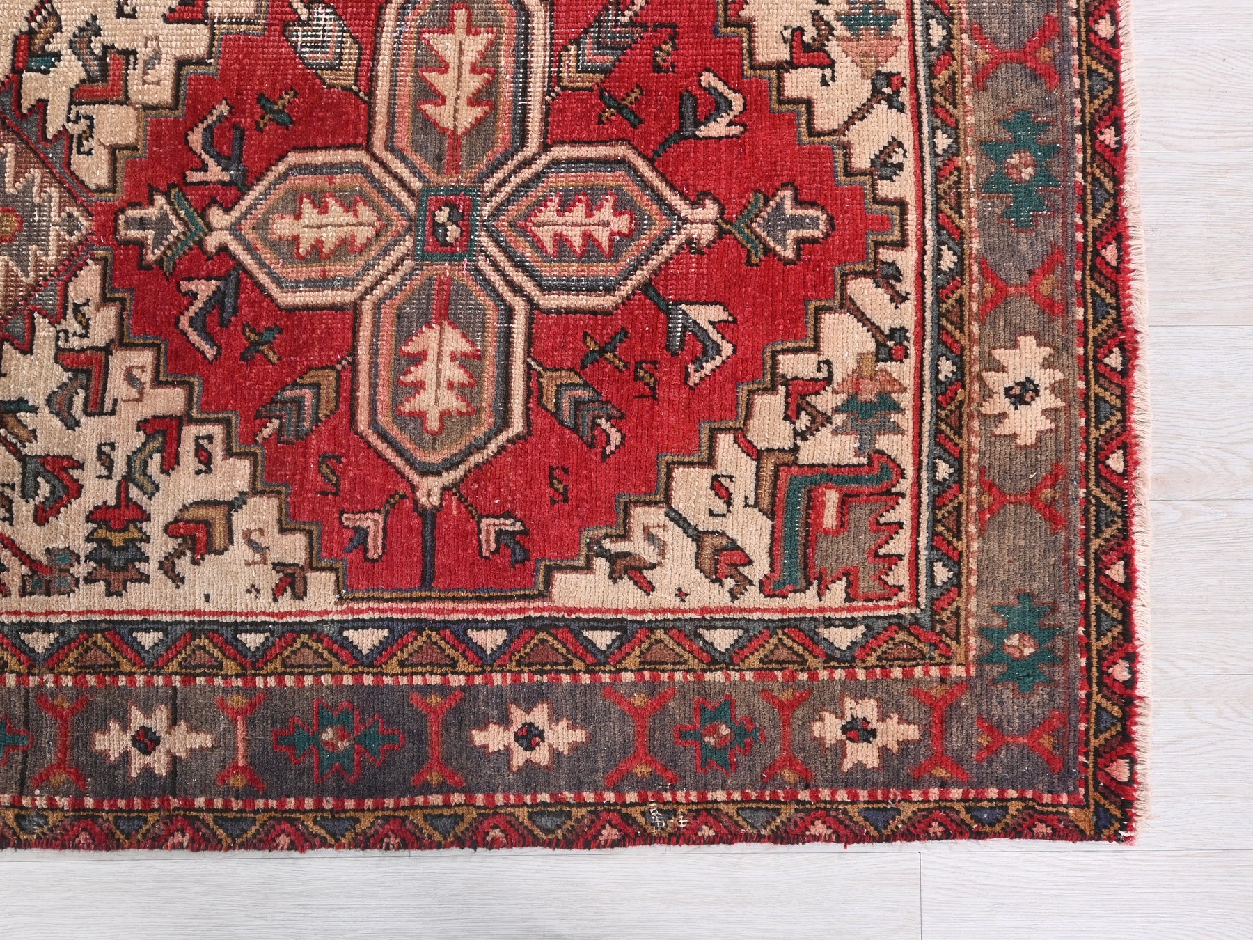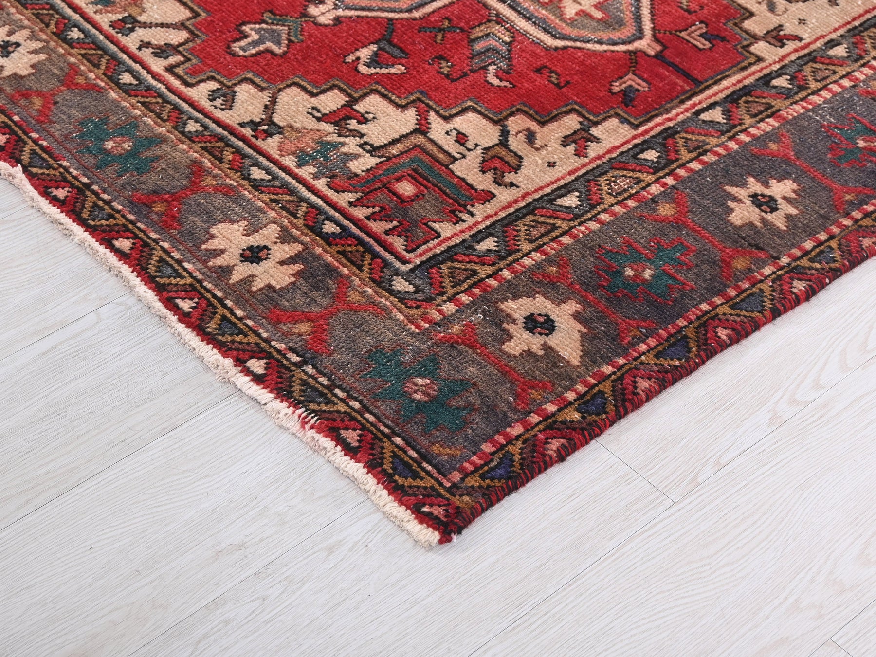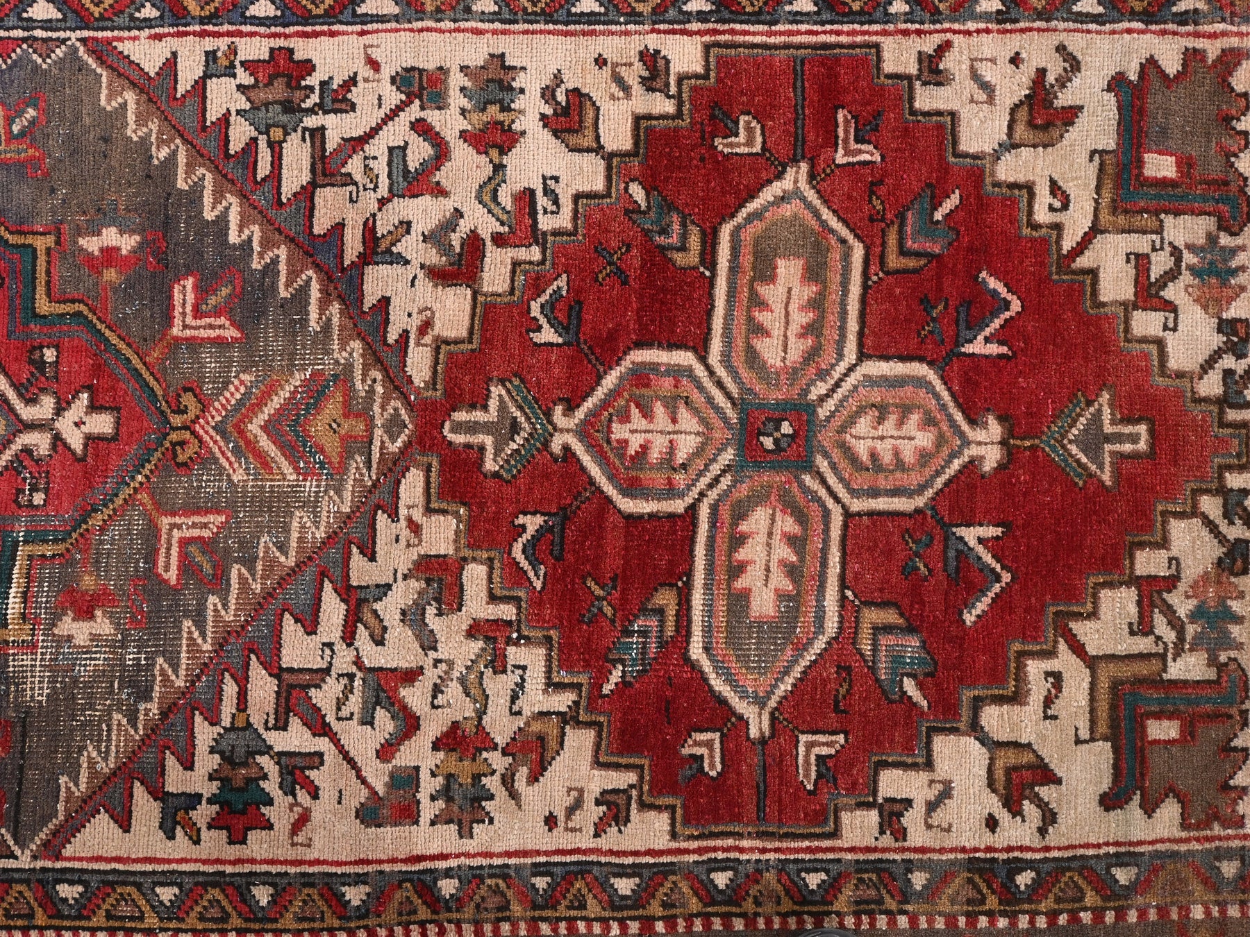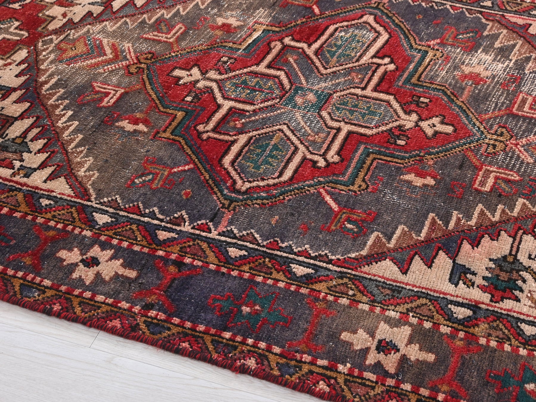 This is a hand-knotted, one-of-a-kind vintage rug. Due to the nature of this piece, there may be slight imperfections in its wear, shape, dimensions, and color. All of our rugs are professionally cleaned and repaired.