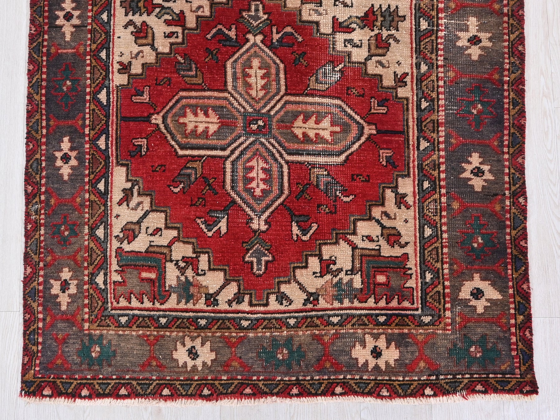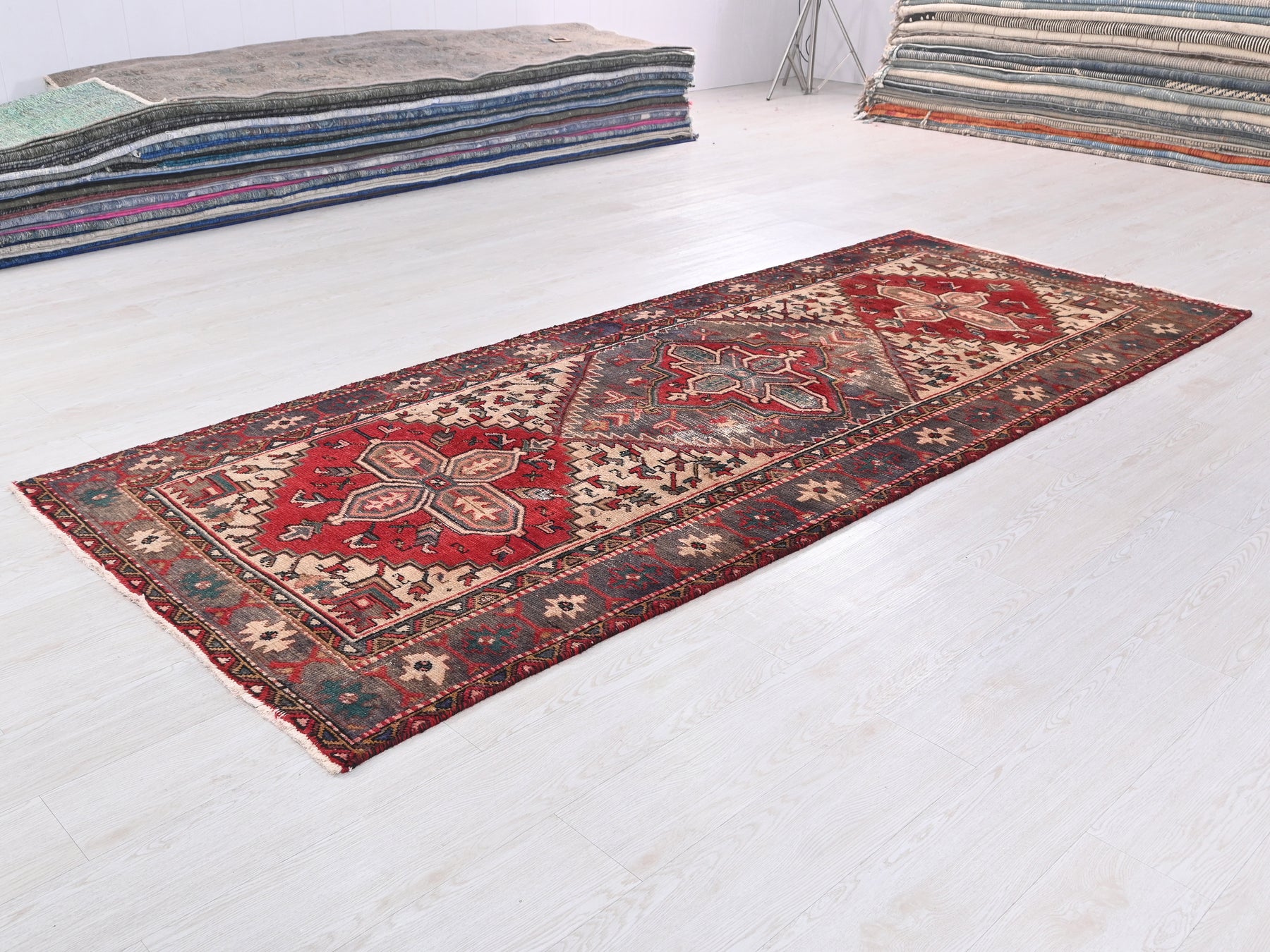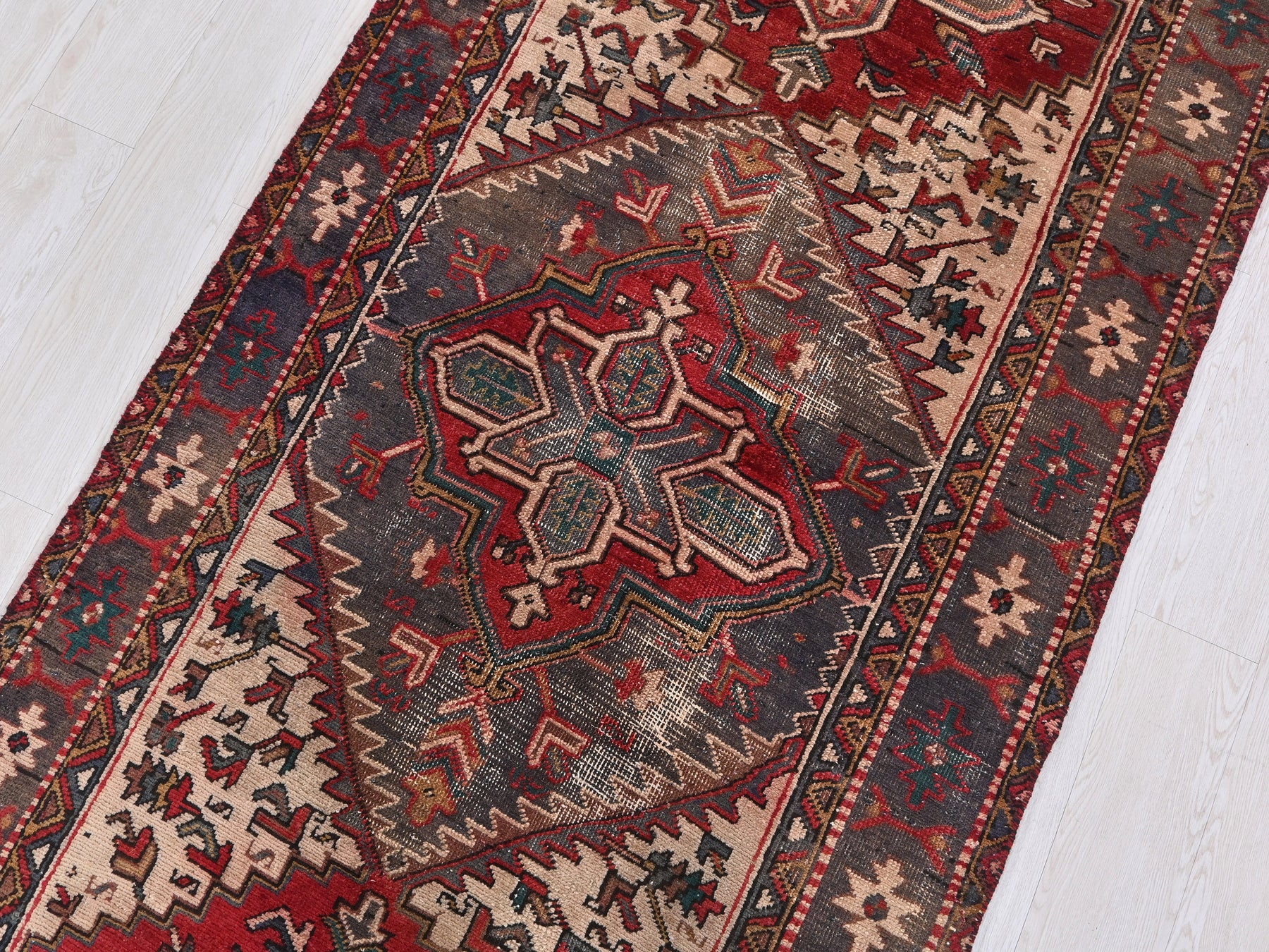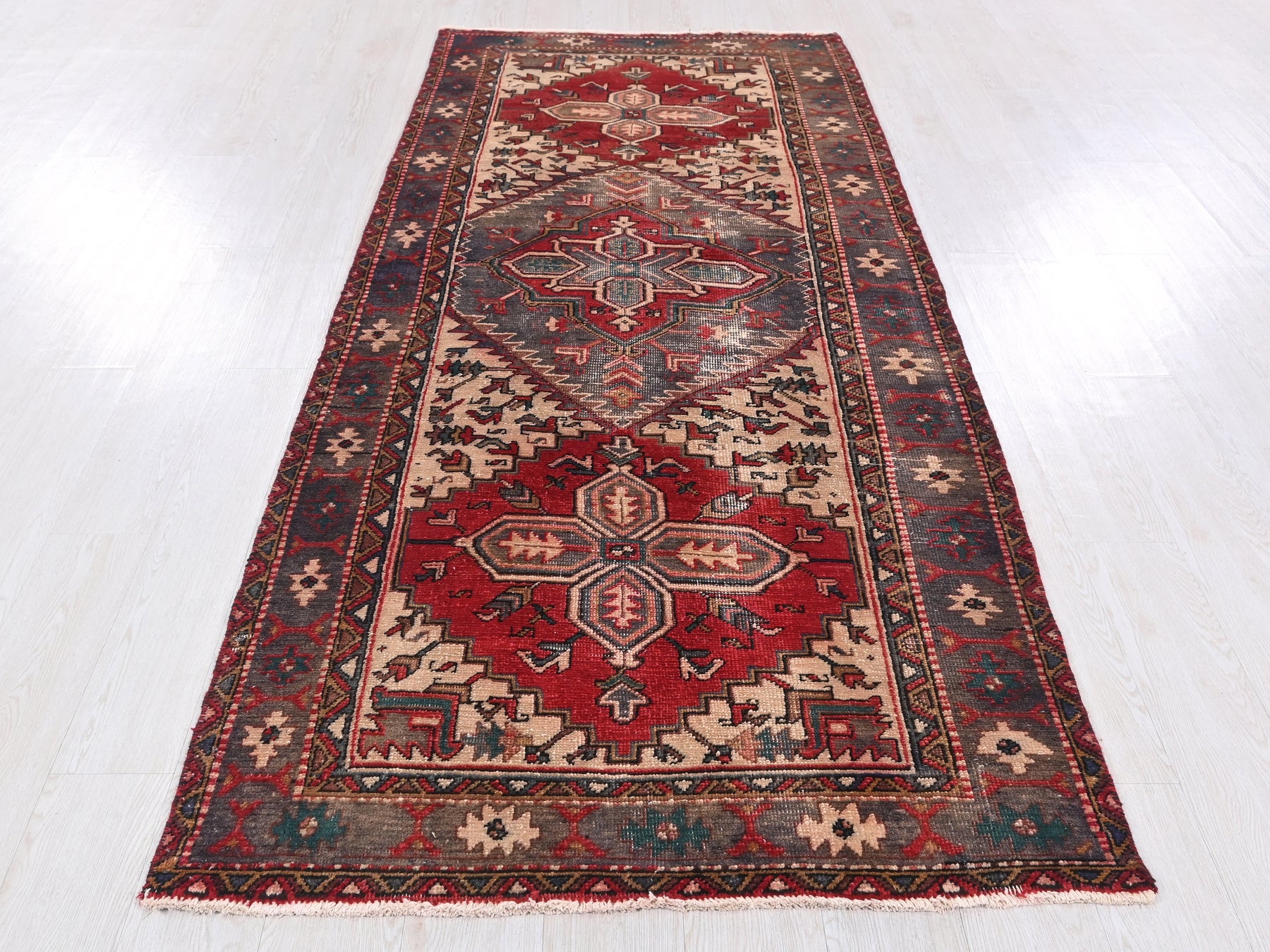 This is a hand-knotted, one-of-a-kind vintage rug. Due to the nature of this piece, there may be slight imperfections in its wear, shape, dimensions, and color. All of our rugs are professionally cleaned and repaired.