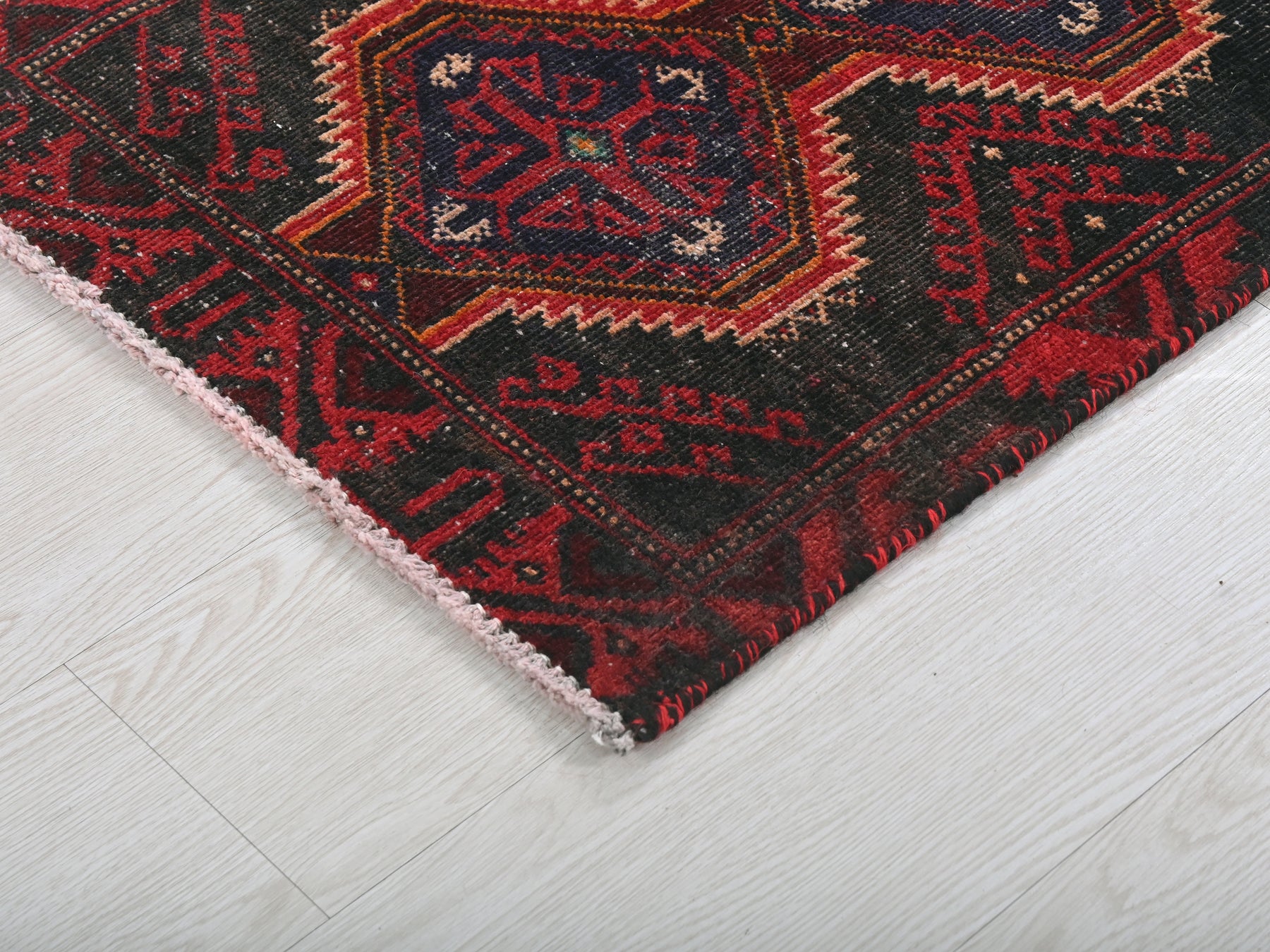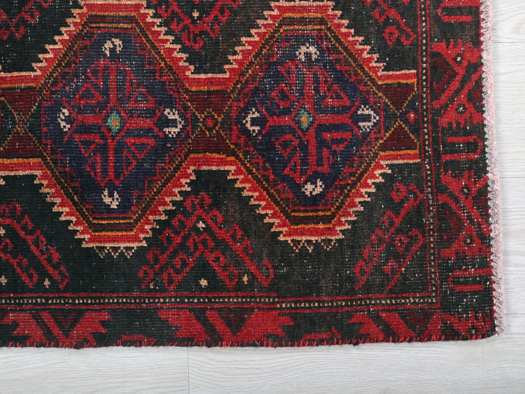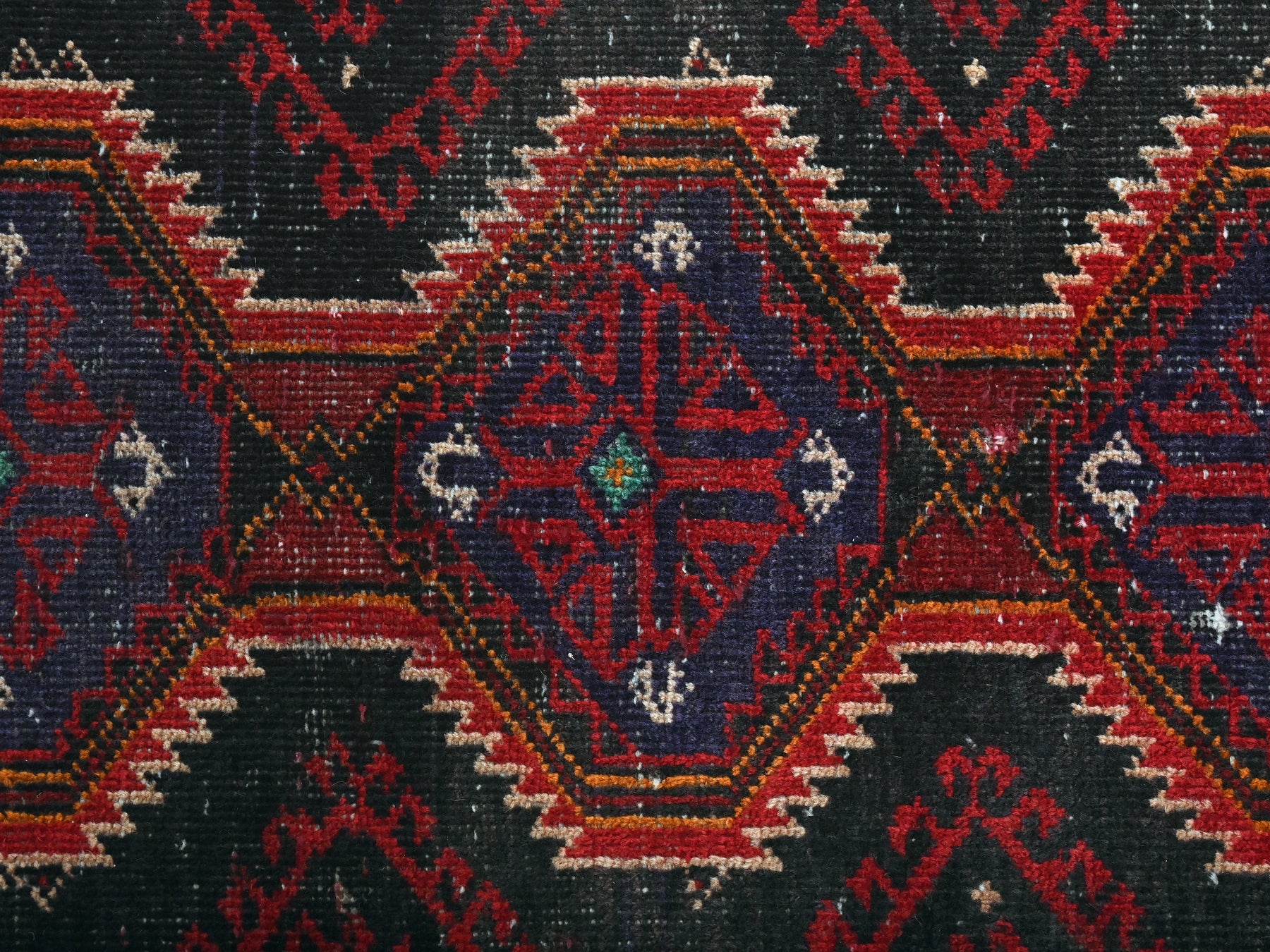 This is a hand-knotted, one-of-a-kind vintage rug. Due to the nature of this piece, there may be slight imperfections in its wear, shape, dimensions, and color. All of our rugs are professionally cleaned and repaired.