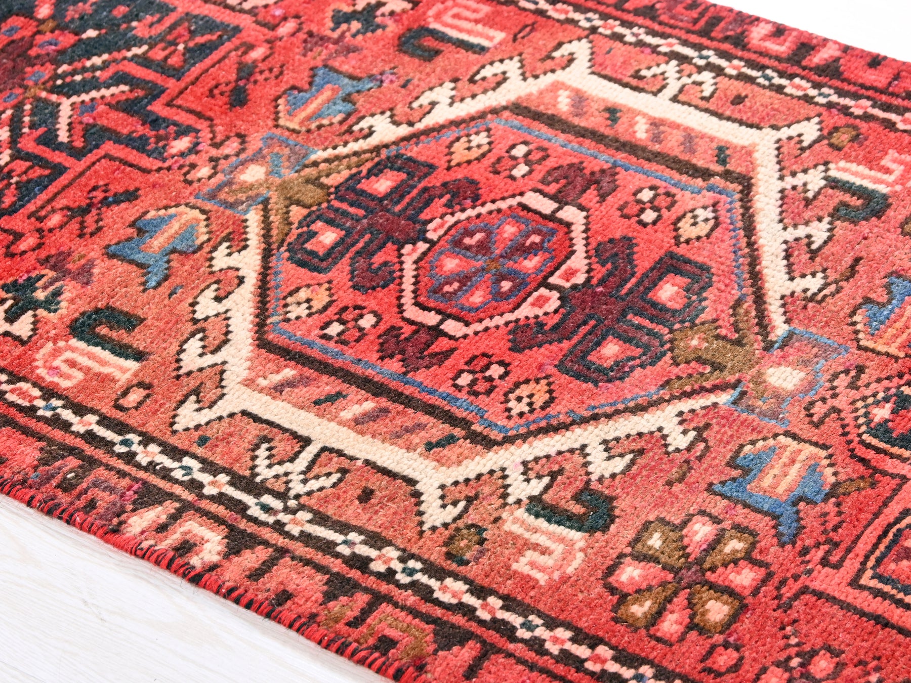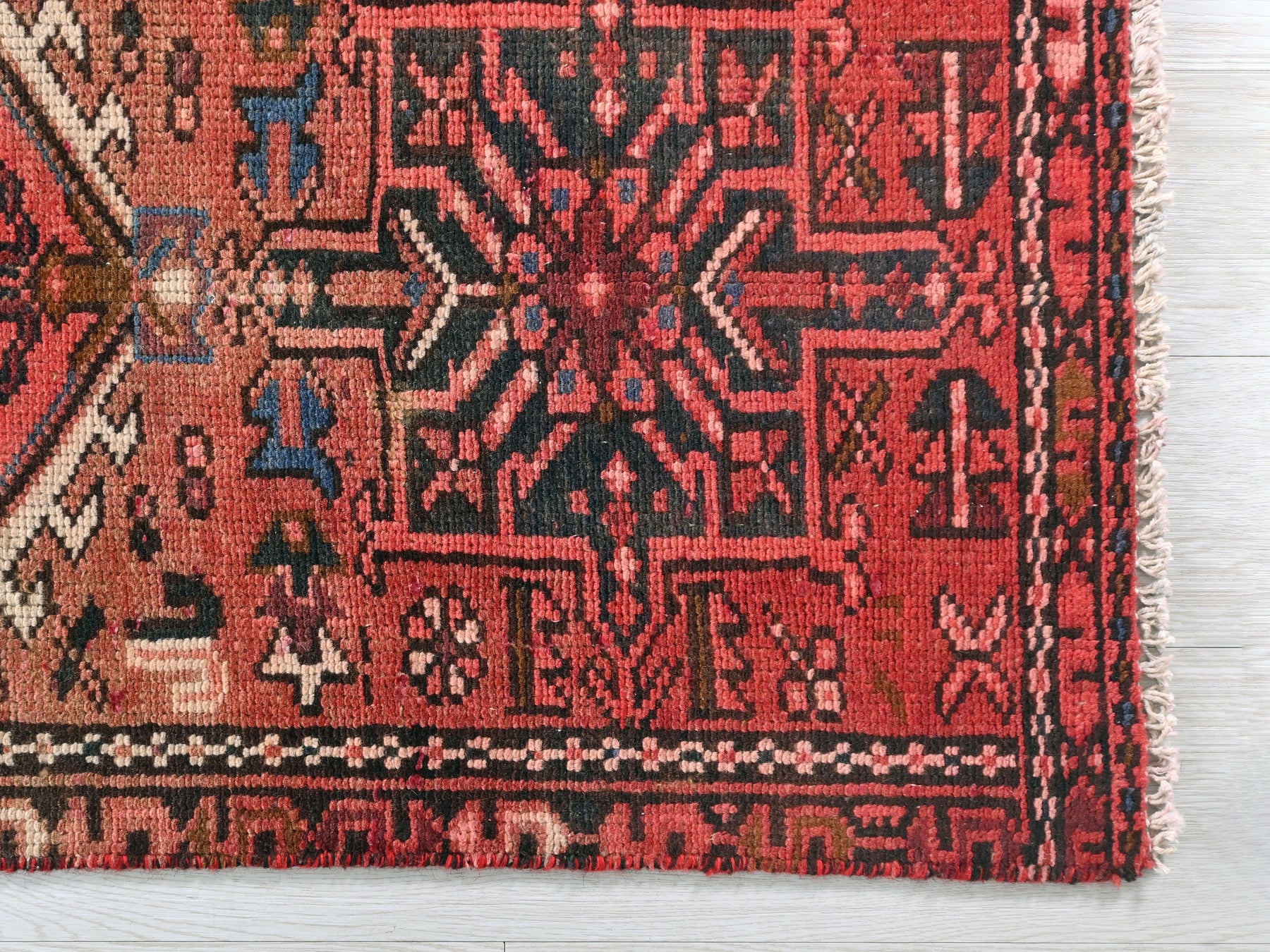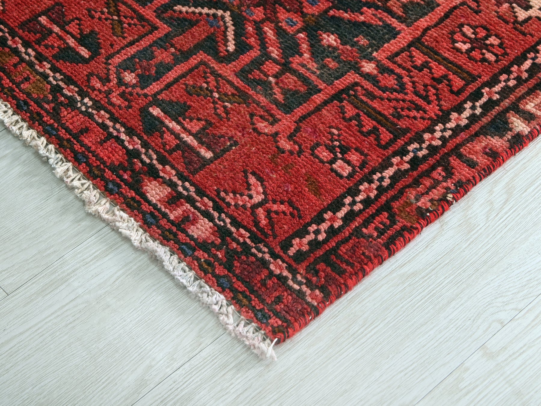 This is a hand-knotted, one-of-a-kind vintage rug. Due to the nature of this piece, there may be slight imperfections in its wear, shape, dimensions, and color. All of our rugs are professionally cleaned and repaired.