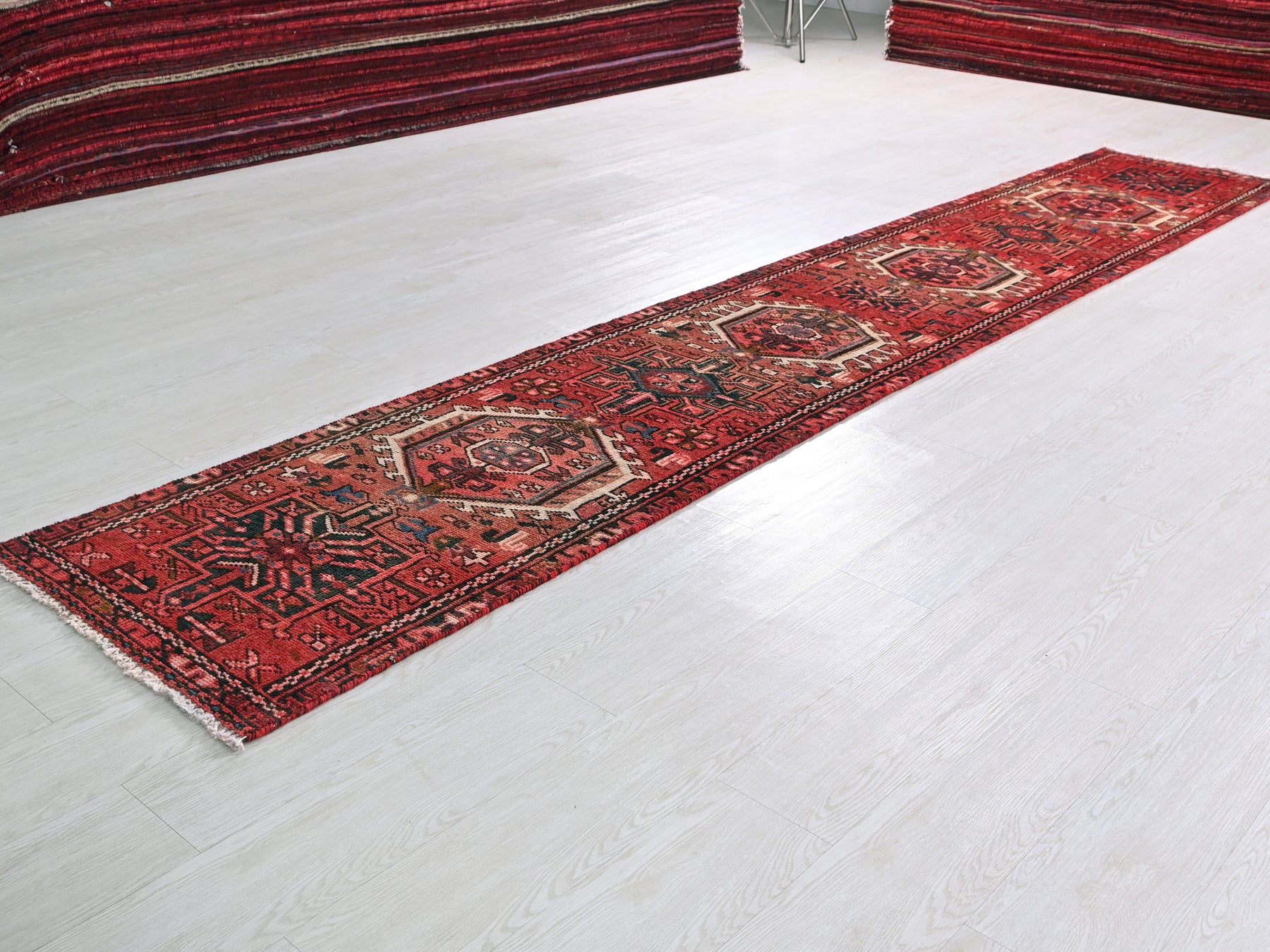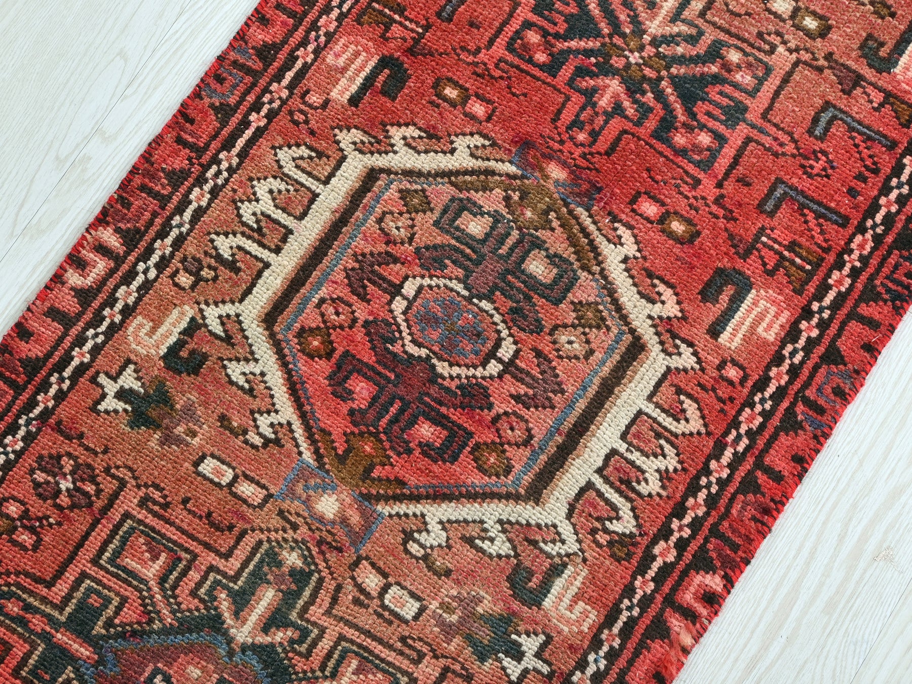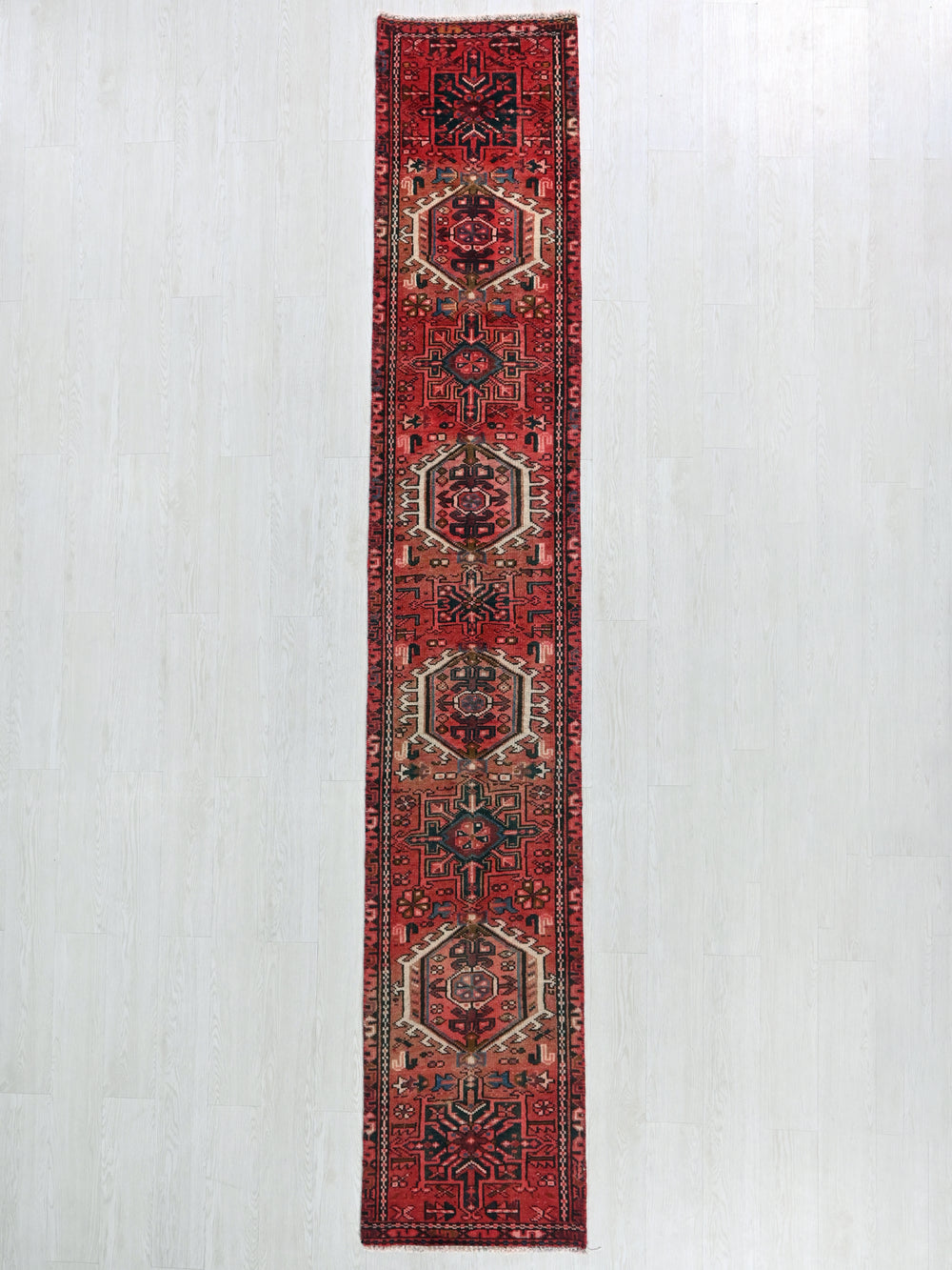 This is a hand-knotted, one-of-a-kind vintage rug. Due to the nature of this piece, there may be slight imperfections in its wear, shape, dimensions, and color. All of our rugs are professionally cleaned and repaired.