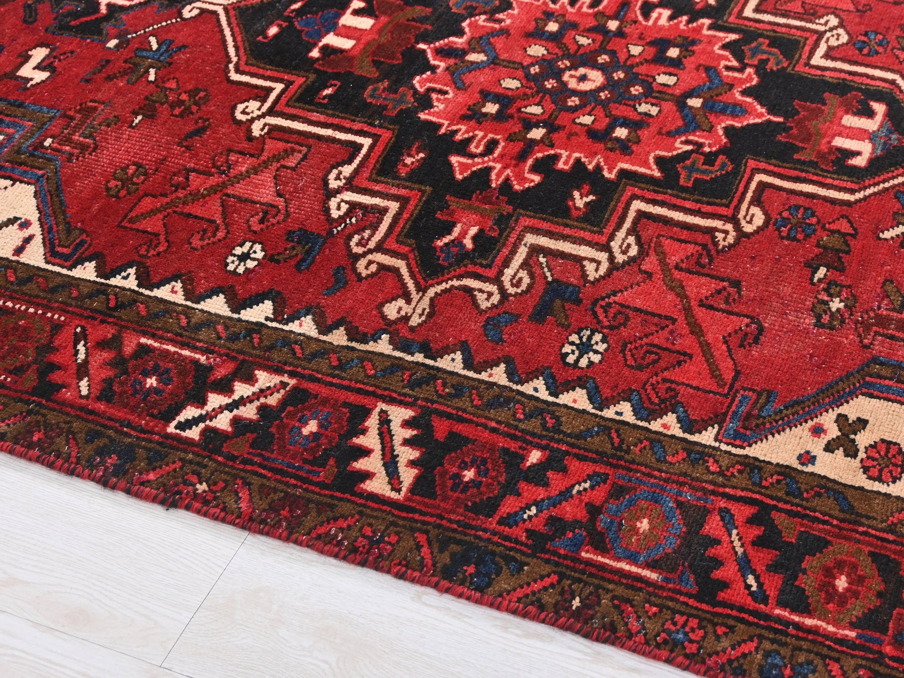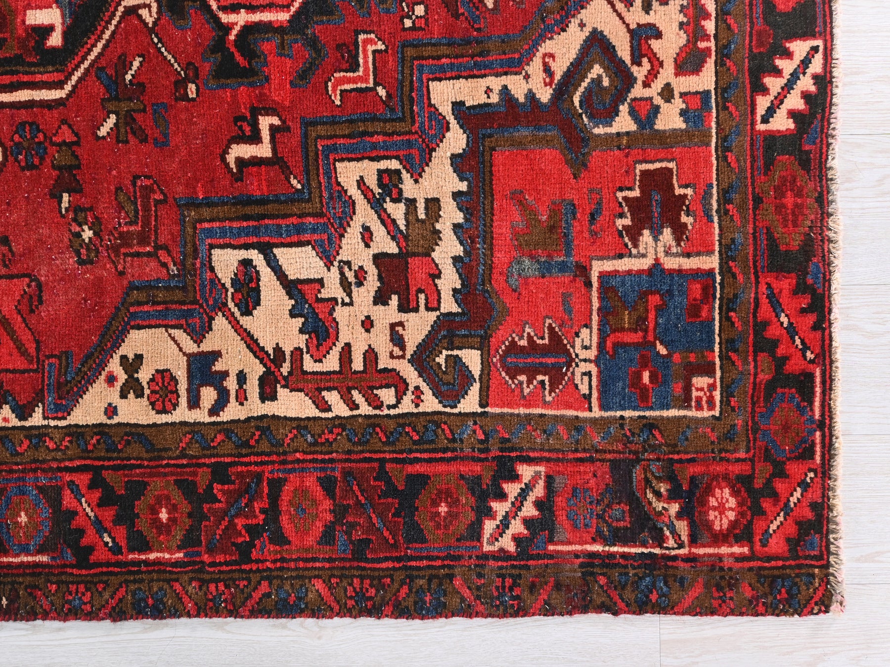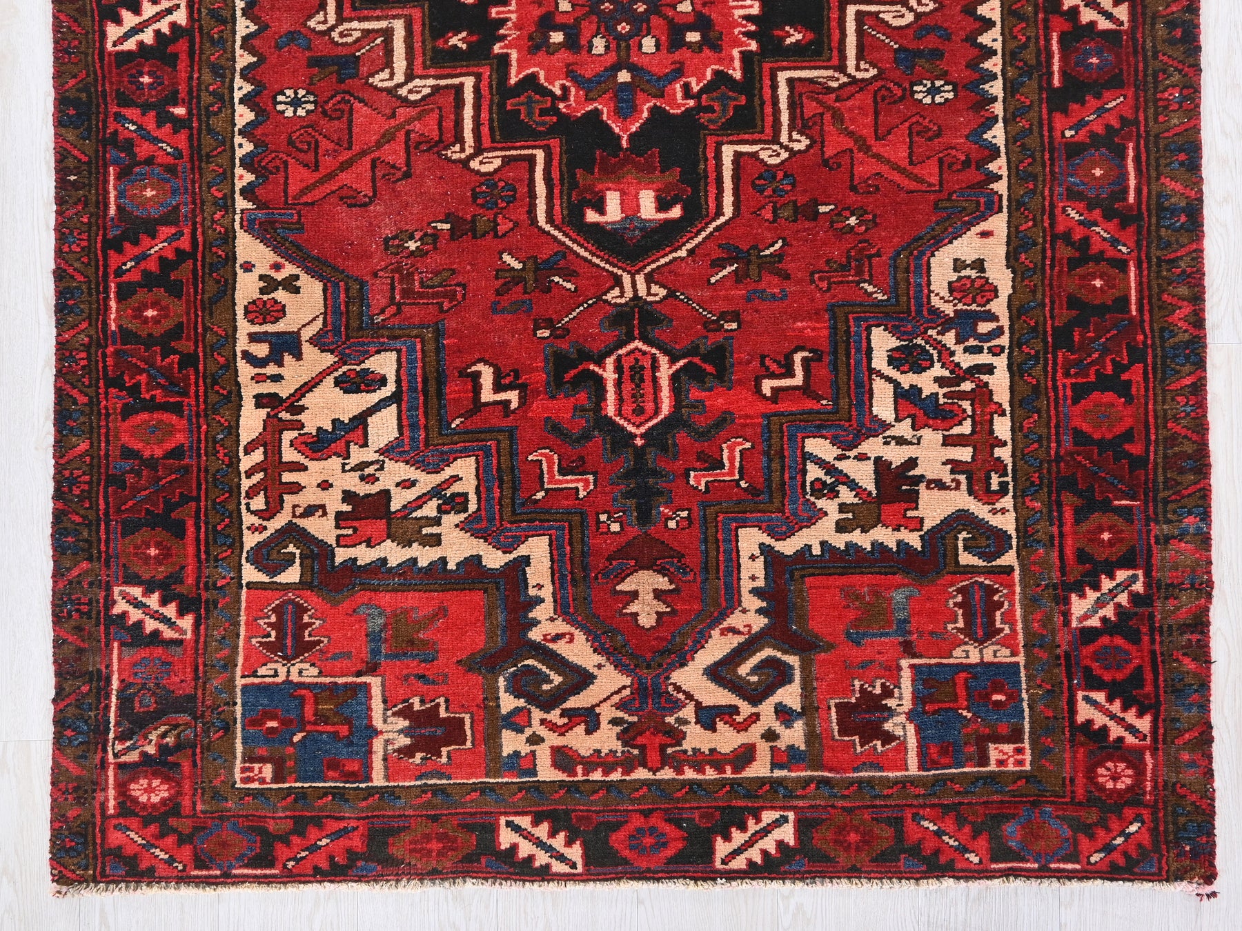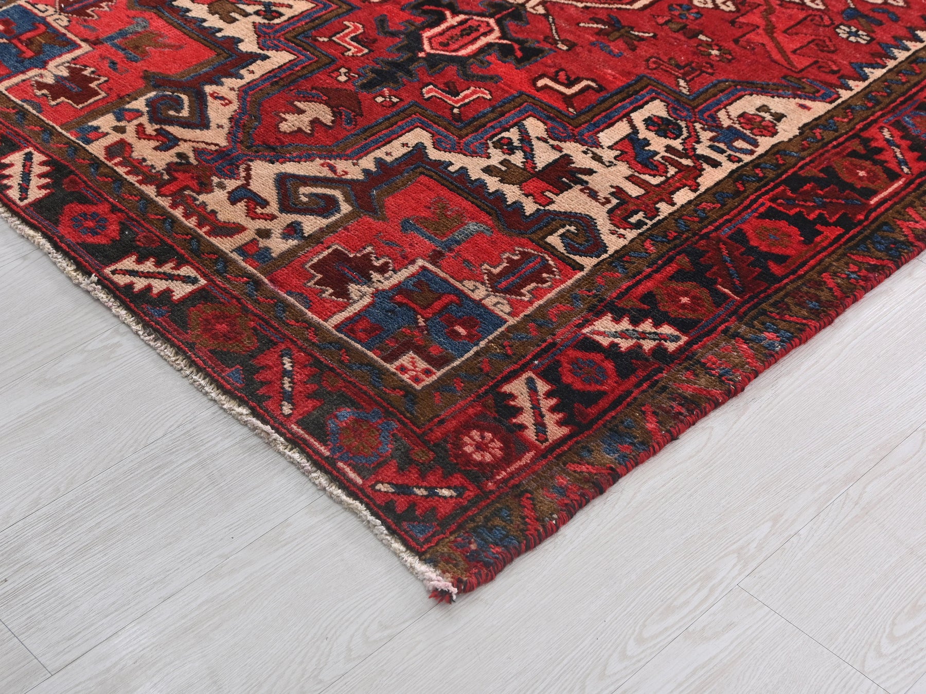 This is a hand-knotted, one-of-a-kind vintage rug. Due to the nature of this piece, there may be slight imperfections in its wear, shape, dimensions, and color. All of our rugs are professionally cleaned and repaired.