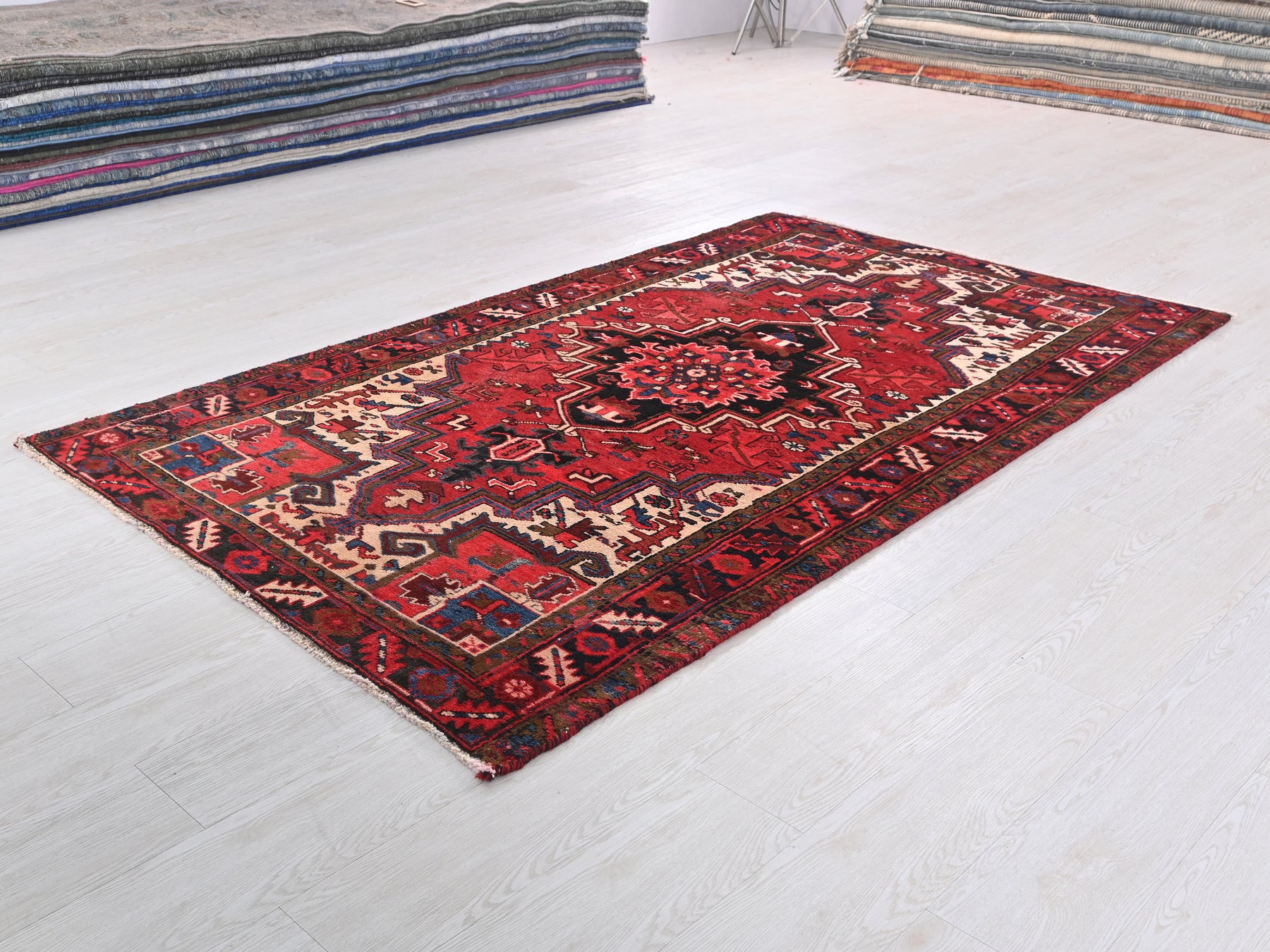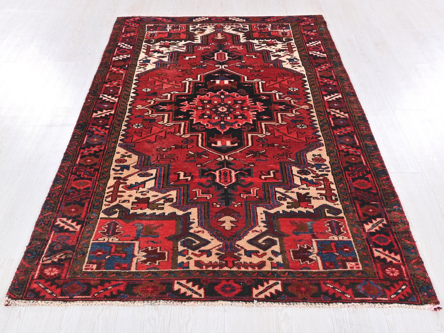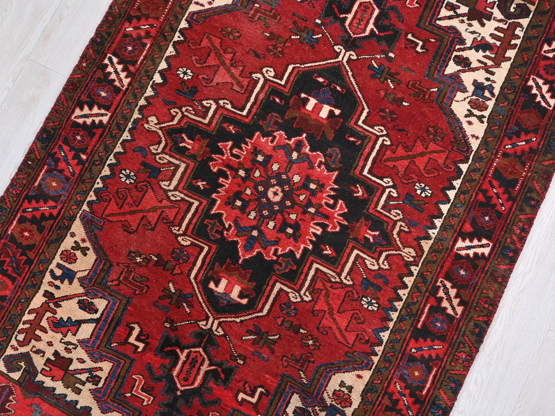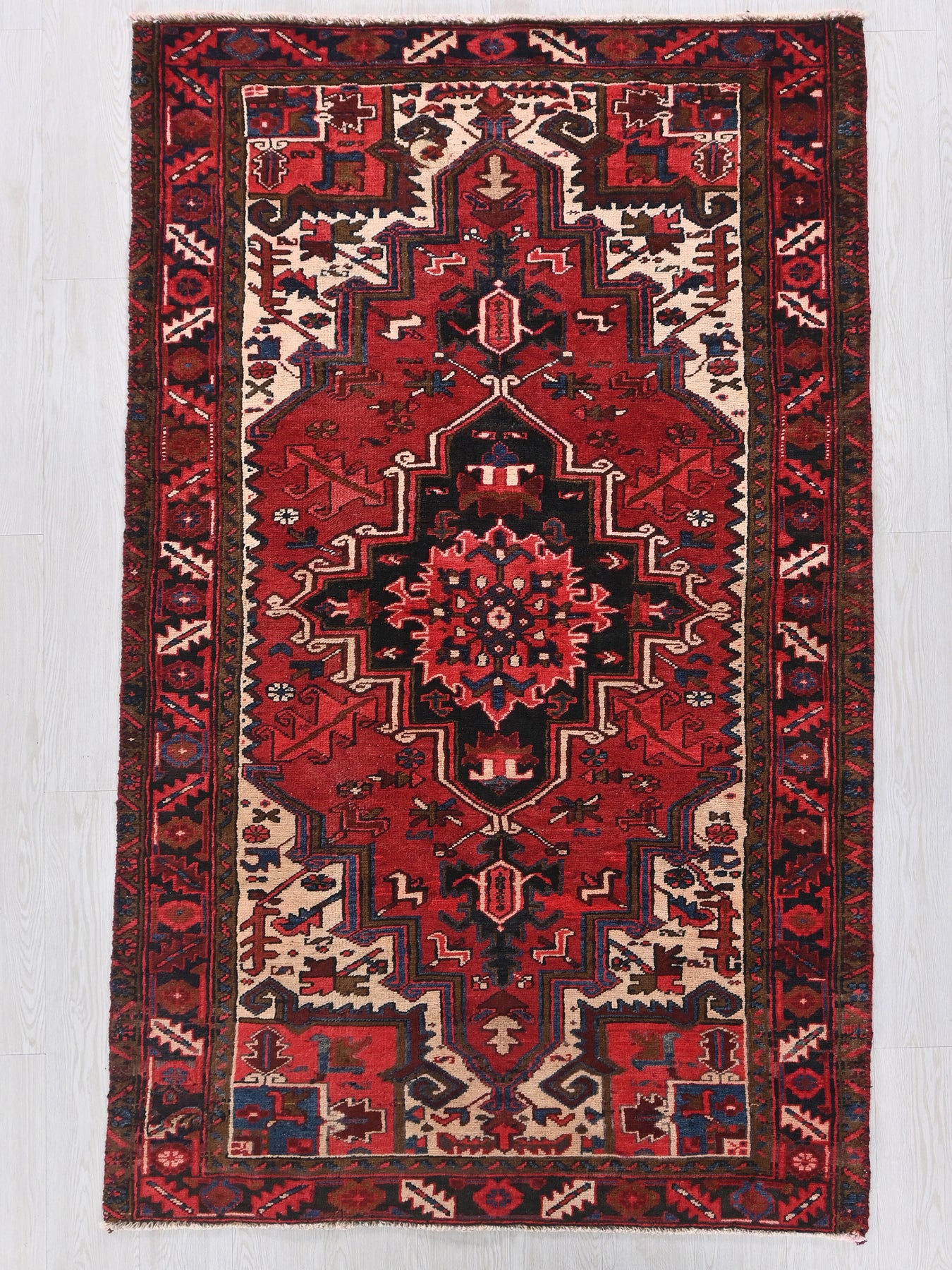 This is a hand-knotted, one-of-a-kind vintage rug. Due to the nature of this piece, there may be slight imperfections in its wear, shape, dimensions, and color. All of our rugs are professionally cleaned and repaired.